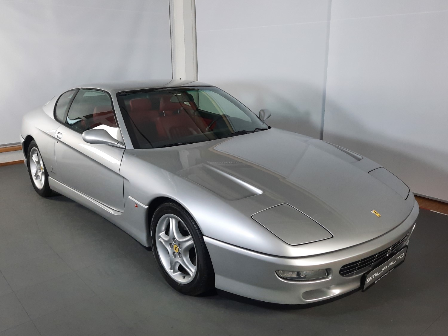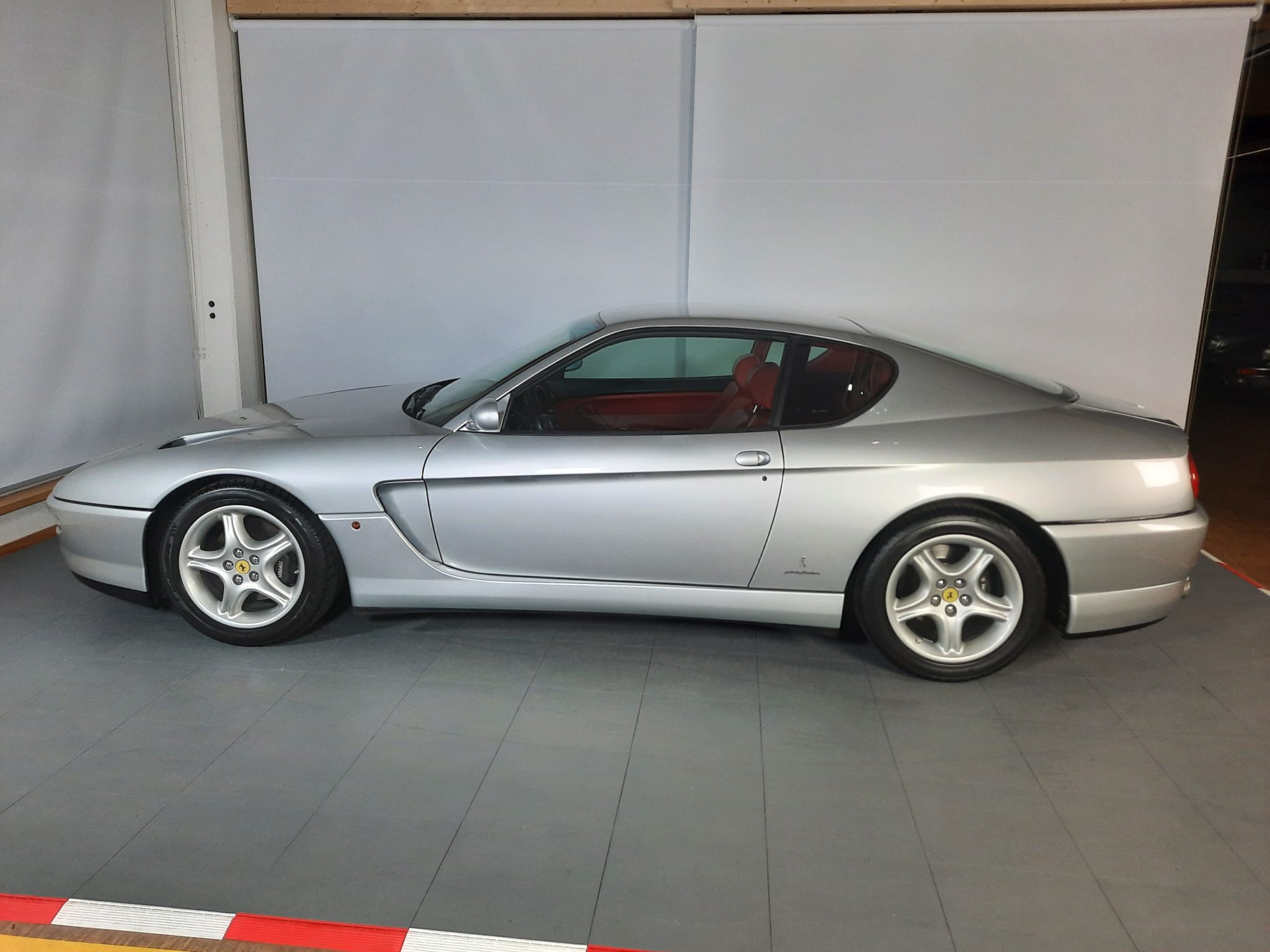 Silver-finished 17” wheels feature Prancing Horse center caps and wear older 255/45 Michelin Pilot SX front and 285/40 Bridgestone Expedia S.01 rear tires. Stopping power is provided by four-wheel disc brakes with black Ferrari-branded calipers.