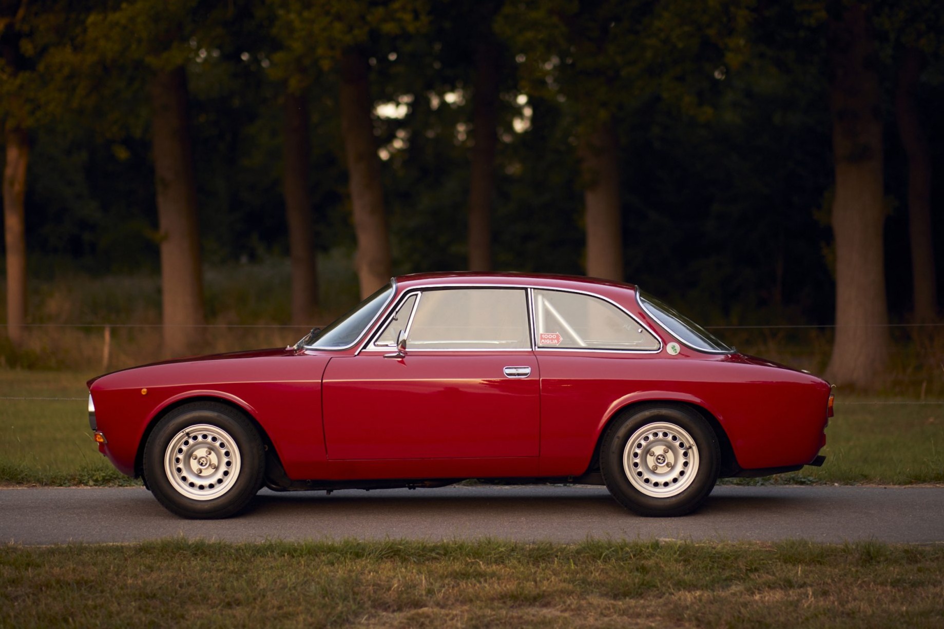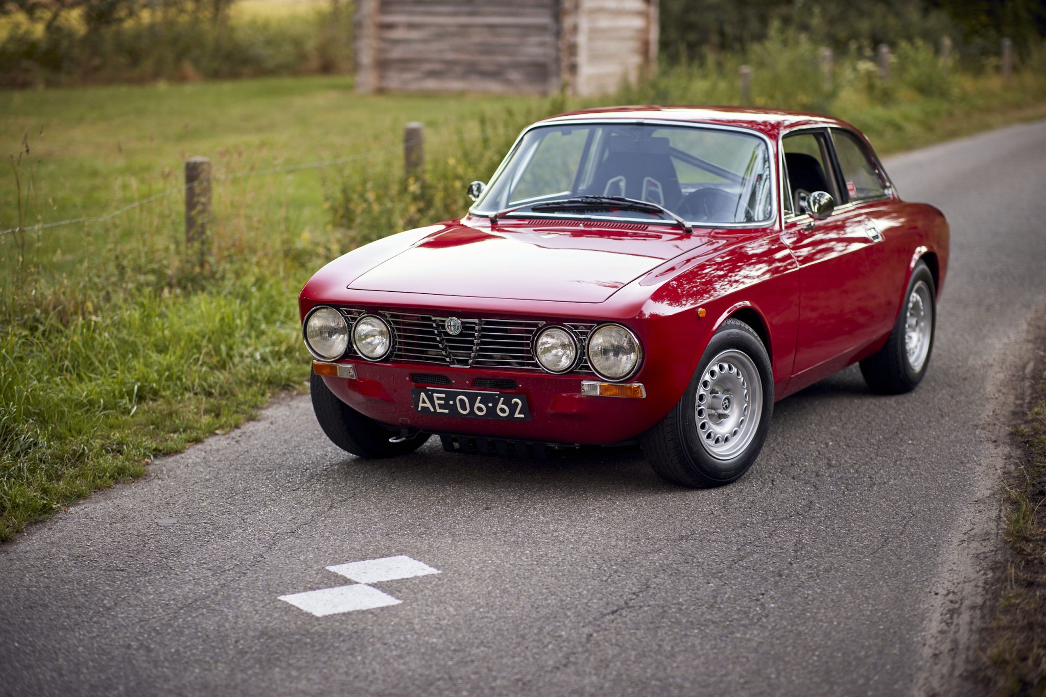 The 14” GTA-style wheels are mounted with 185/70 Avon CR6ZZ tires, and a matching spare is found in the trunk. Stopping power is provided by four-wheel discs reportedly fitted with upgraded rotors, Ferodo pads, Goodridge stainless-steel lines, and a Wilwood hydraulic hand brake. The car rides on Eibach springs and Koni Sport yellow shocks, and additional suspension modifications are said to include an Eibach 27mm stabilizer bar, modified S4 Spider-spec uniball drop links, an Alfaholics aluminum T-bar, and uprated trailing arm bushings.