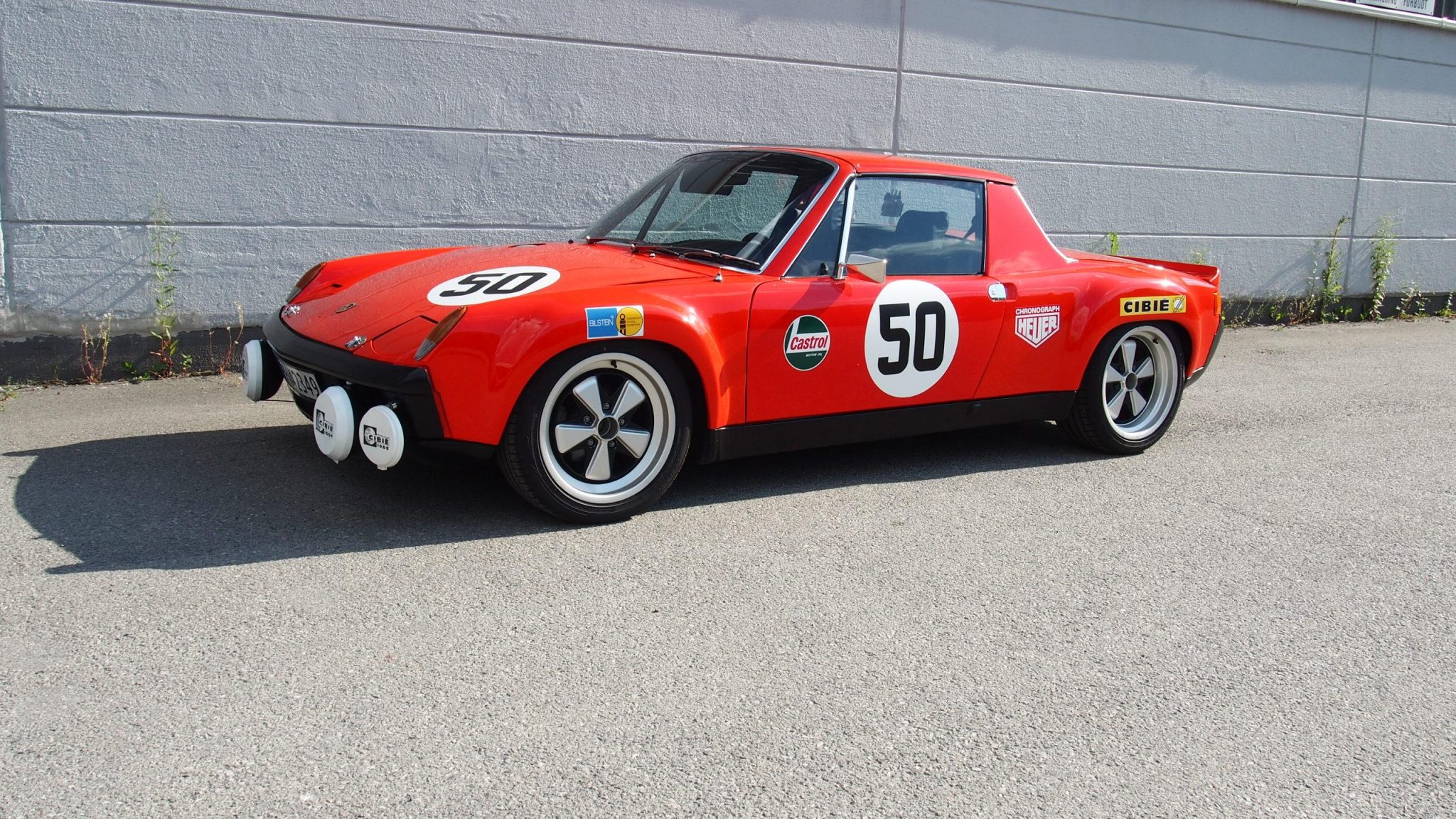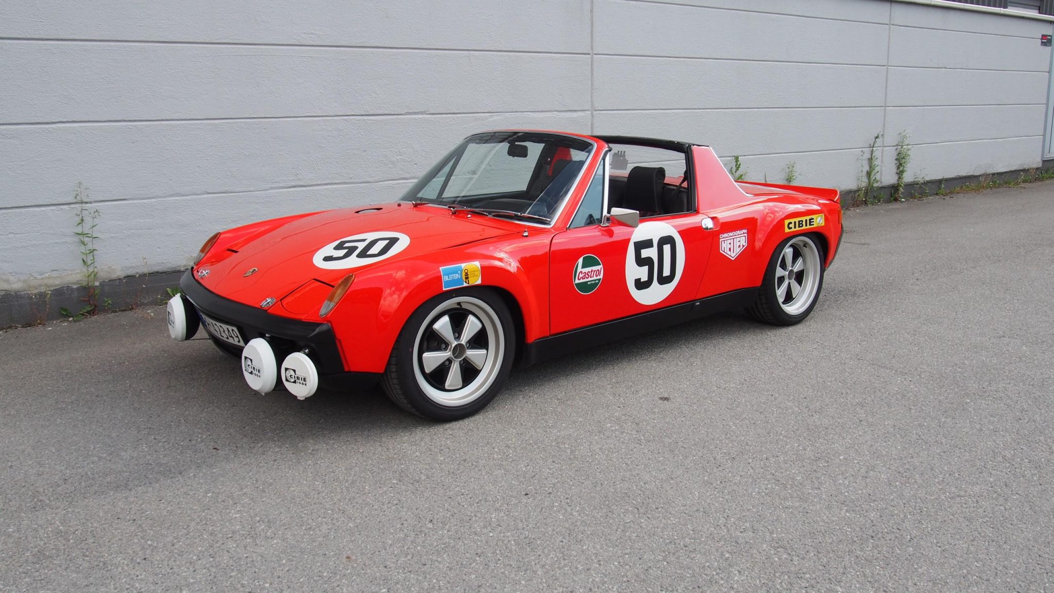 Staggered-width 17” Rota Fuchs-style wheels are mounted with 225/45 Falken Azenis tires. Braking is through four-wheel discs with a 930-spec master cylinder, ventilated rotors, 911S-spec aluminum front calipers, and 914-6-spec aluminum rear calipers. Suspension modifications are said to include Koni red front shocks, Bilstein rear shocks, reinforced rear trailing arms, Weltmeister front and rear sway bars, and Elephant Racing polybronze bushings and front camber plates.