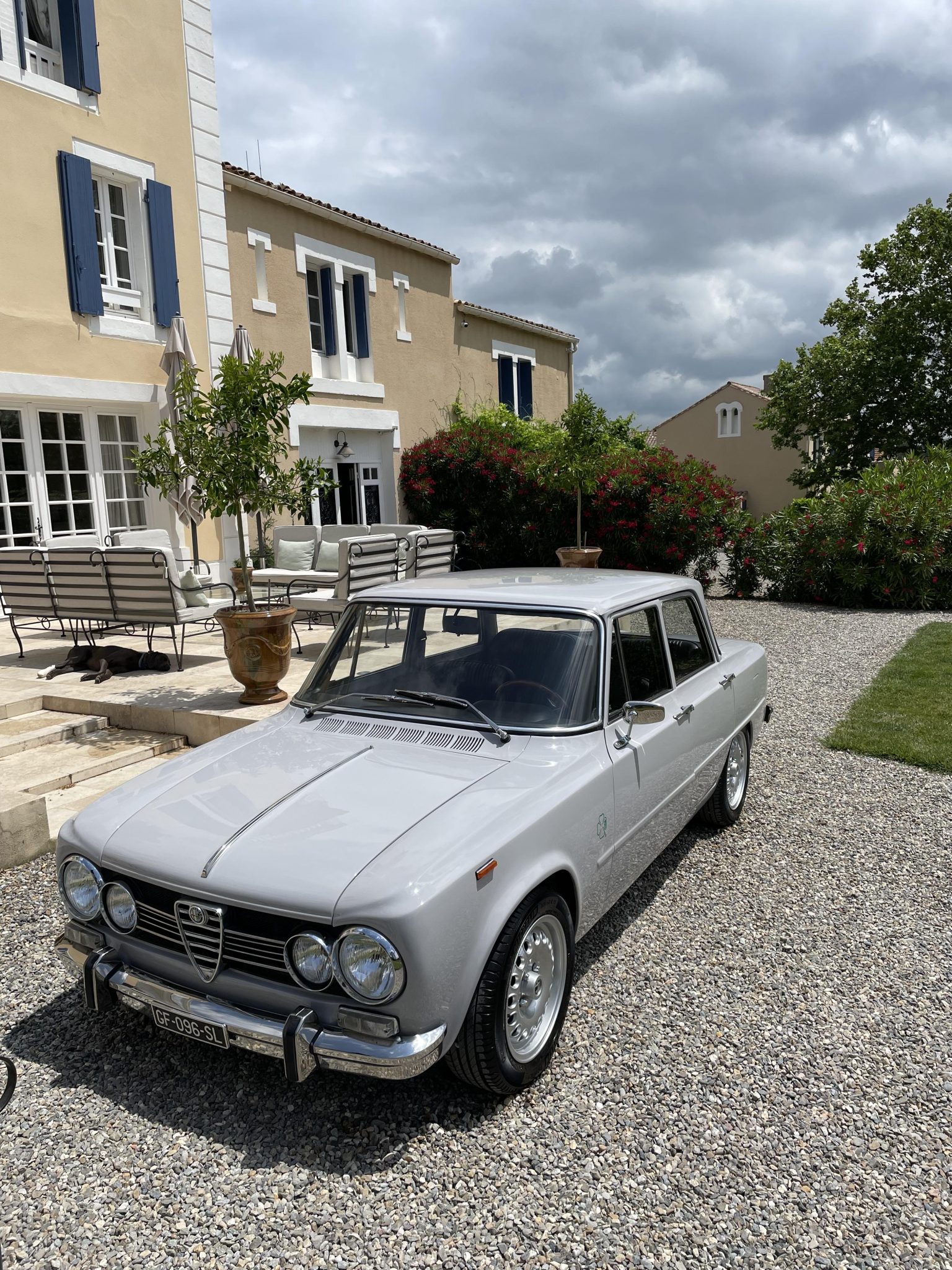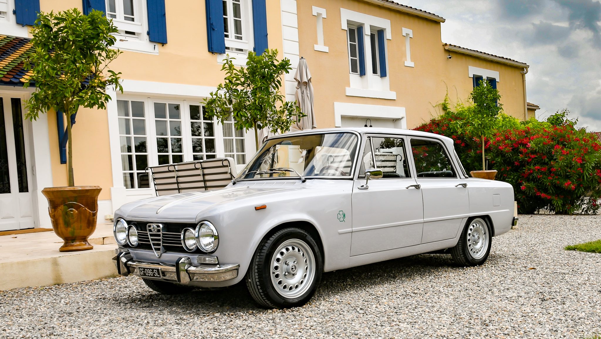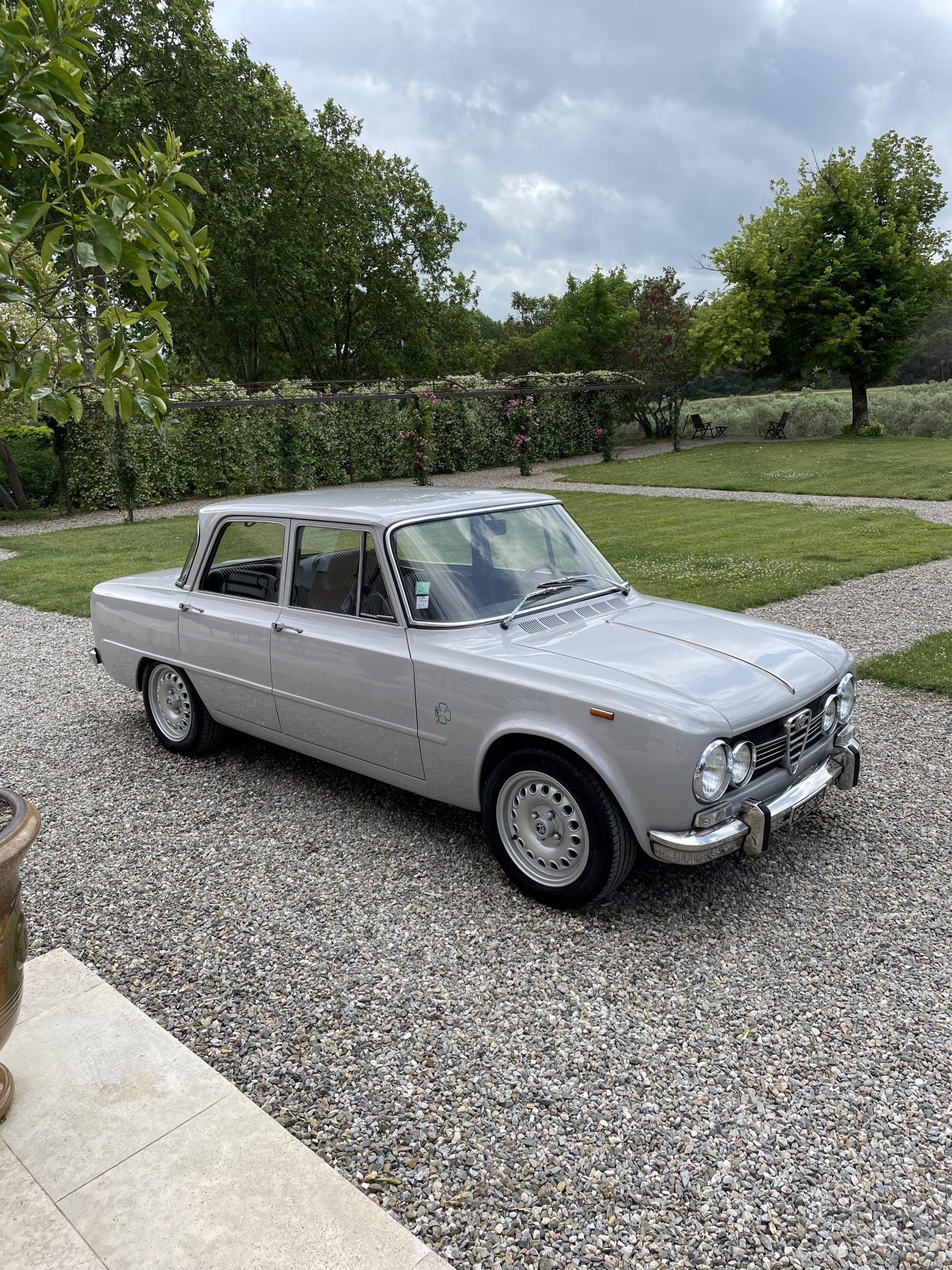 Alfaholics 15″ GTA-style alloy wheels are mounted with 185/60 Michelin Primacy tires, and a 14″ spare with an older 165-series tire is stored under the trunk floor. Stopping power is provided by four-wheel disc brakes. An Alfaholics Fast Road Stage-1 suspension kit was installed and the front and rear suspension bushings were replaced under current ownership. A spare set of 14″ steel wheels with polished hubcaps are included in the sale along with the removed springs.