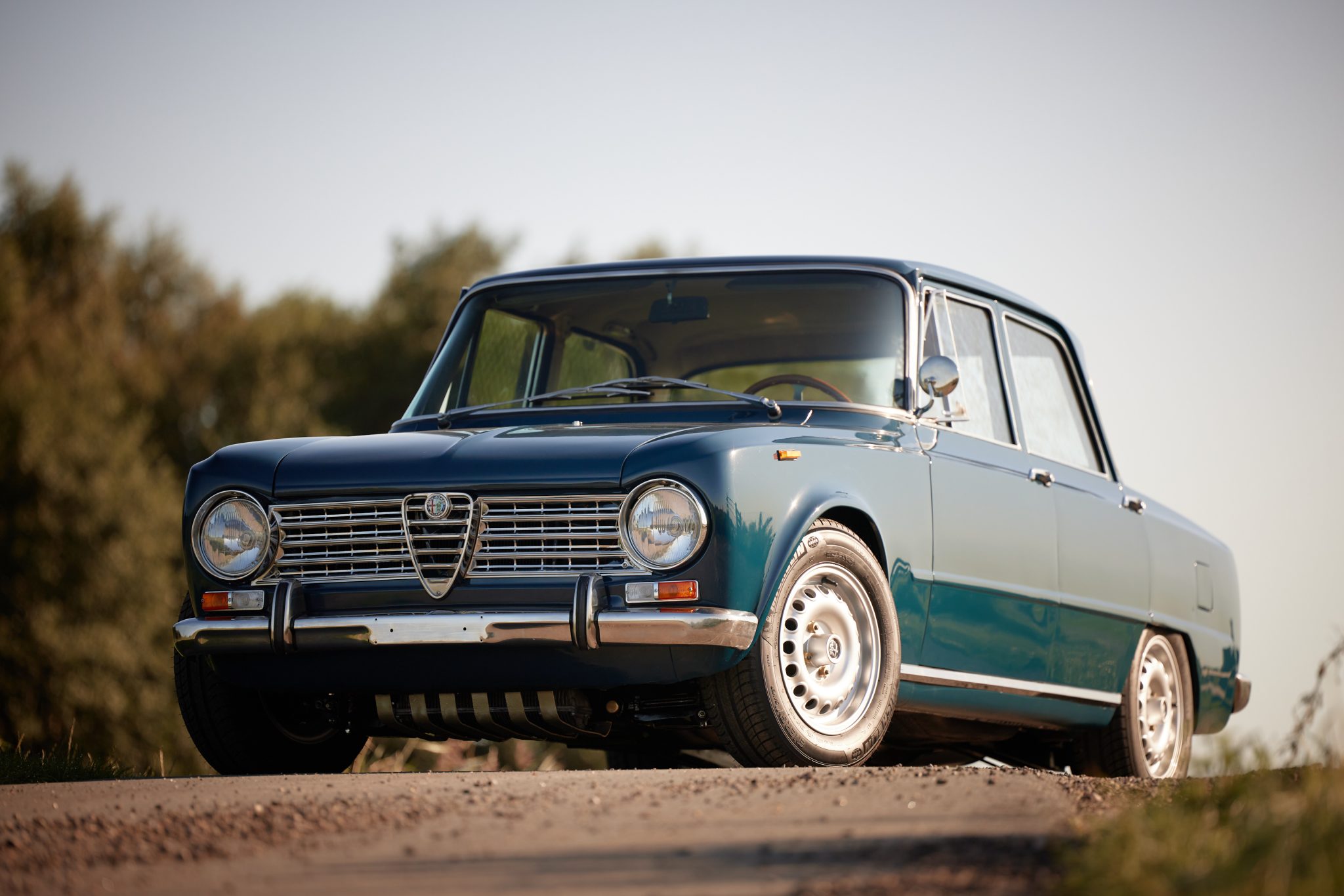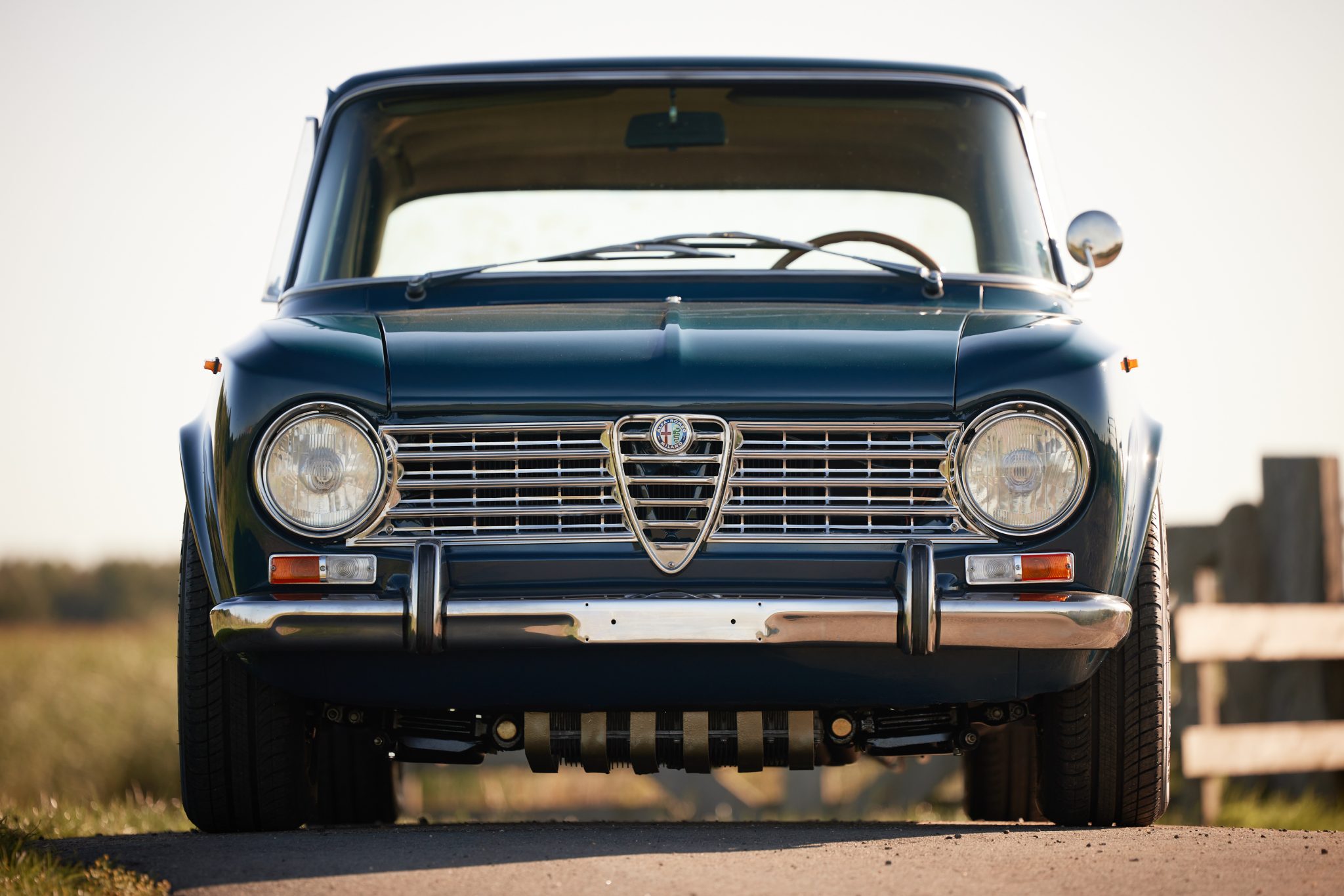 Silver 14” GTA-style wheels feature Alfa Romeo-branded center caps and are mounted with 185/70 Michelin Energy Saver tires, while a full-size steel spare is stored in the trunk compartment. The suspension was reportedly overhauled during the build and features a front sway bar as well as Koni shocks and Arese lowering springs at each corner. The four-wheel disc brake system has been updated with later-model ATE components as well as refreshed with a replacement master cylinder and booster.
