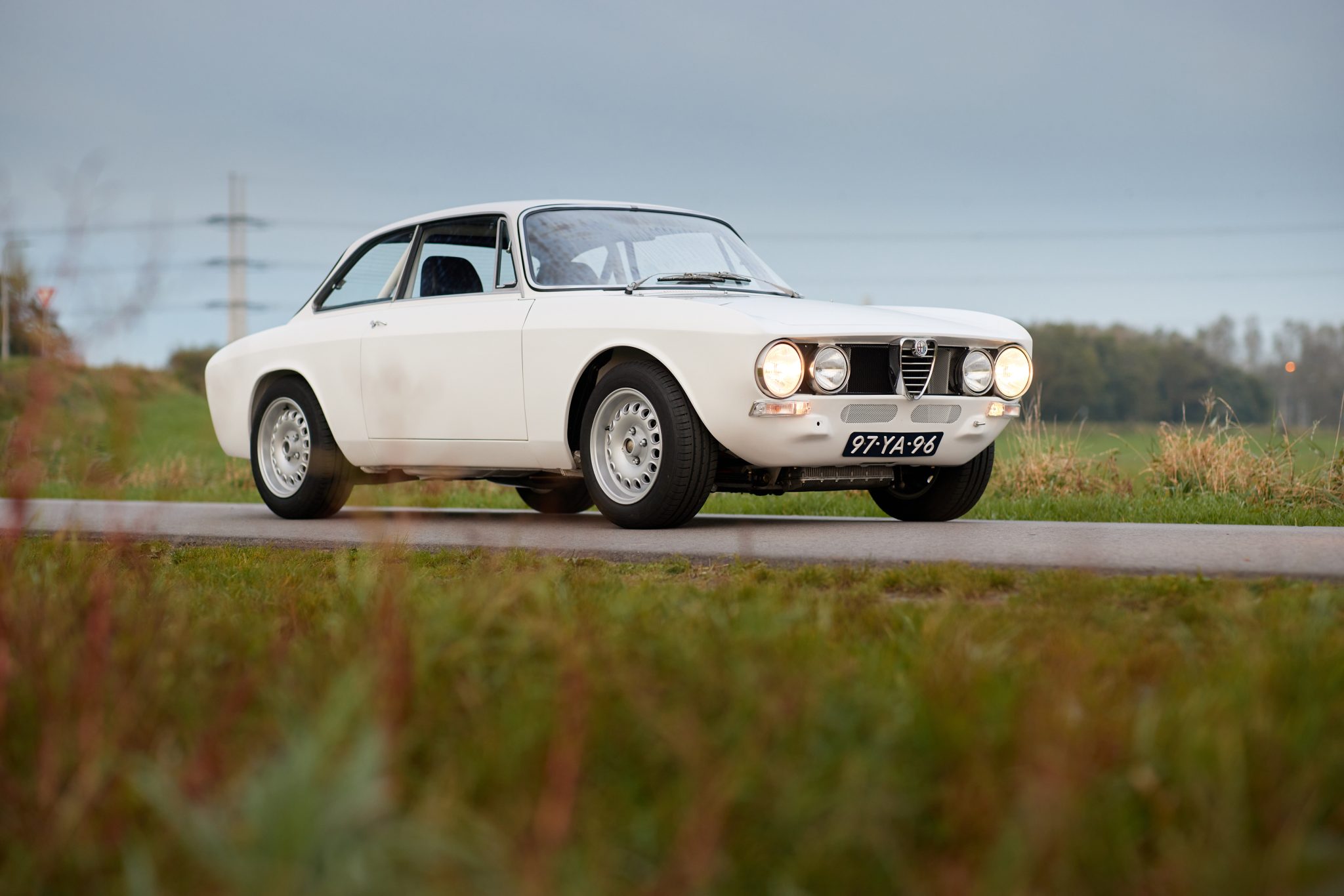 Silver 15″ GTA-style wheels are mounted with 195/60 Dunlop Sport tires, while a full-size spare is stored in the trunk compartment. Various suspension components have been powdercoated black, and Bilstein shocks are installed at each corner. The brake system is said to have been overhauled during the build and features ATE calipers over four-wheel disc brakes.