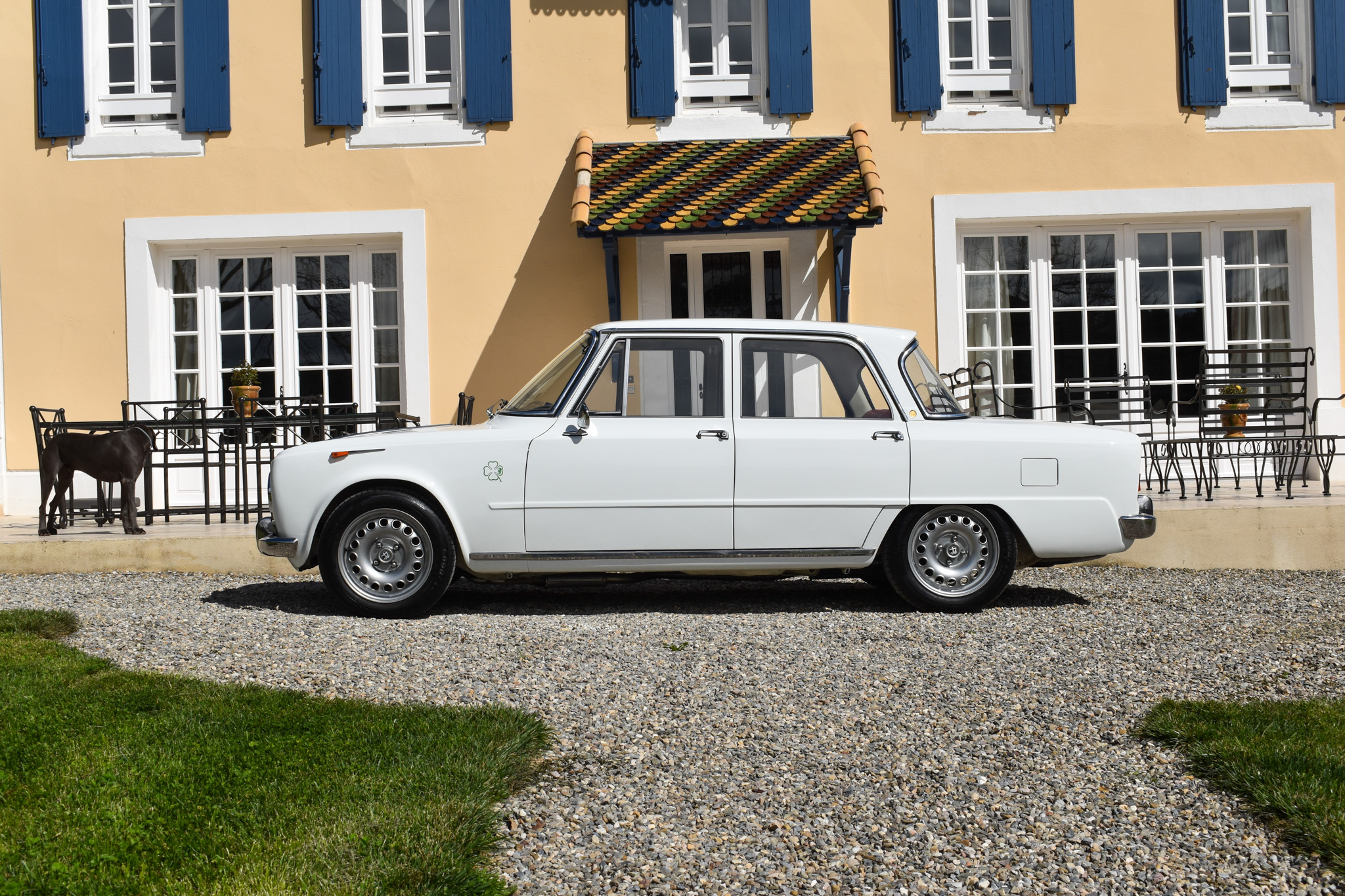 GTA-style 15″ alloy wheels were sourced from Alfaholics and mounted with 185/60 Goodyear Efficient Grip tires under current ownership. A non-matching spare wheel and tire are stored in the trunk compartment. The suspension has fitted with an Alfaholics Fast Road suspension kit that includes Koni shocks and lowering springs at each corner along with a larger front sway bar and polyurethane bushings. Stopping power is provided by four-wheel disc brakes with ATE calipers.