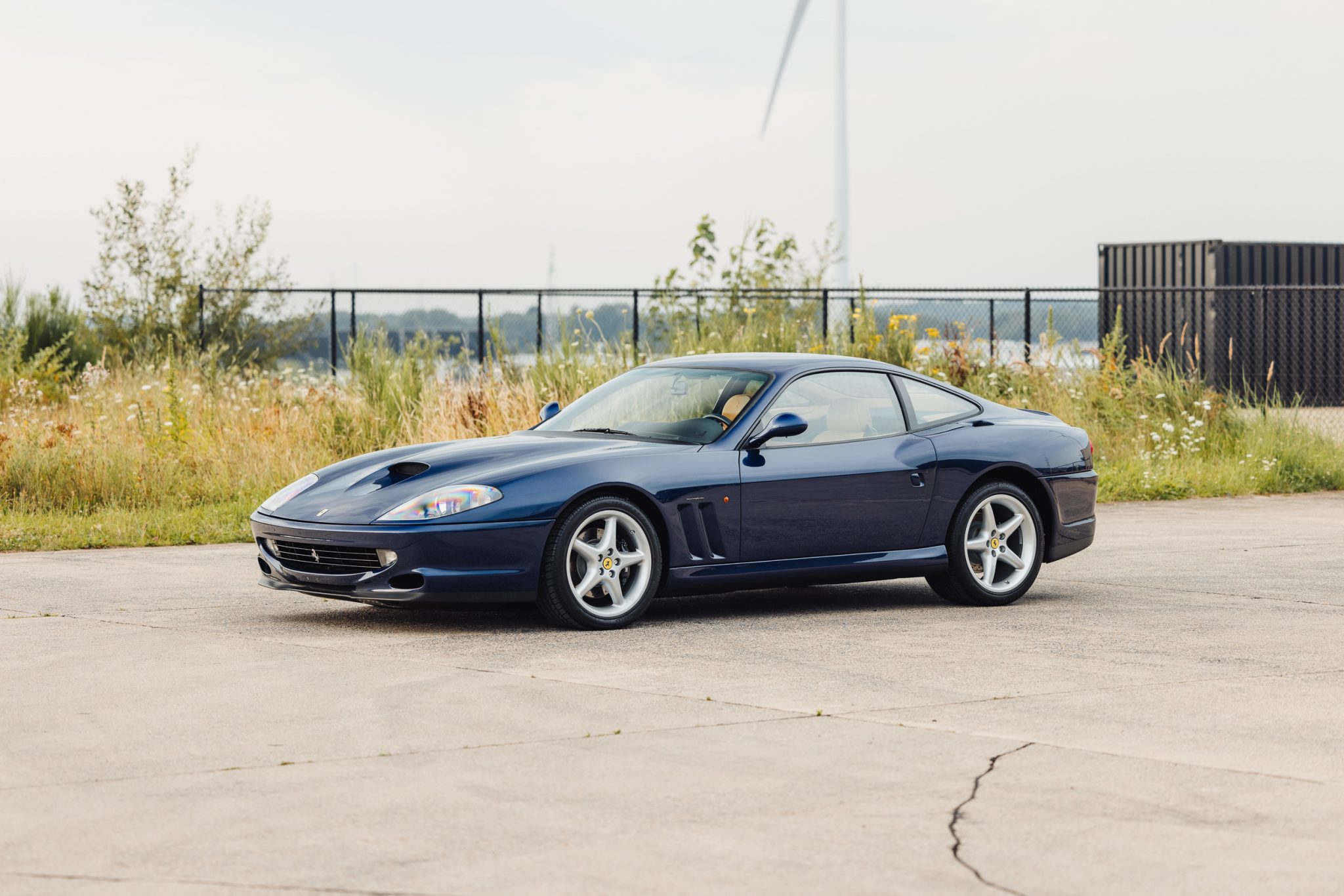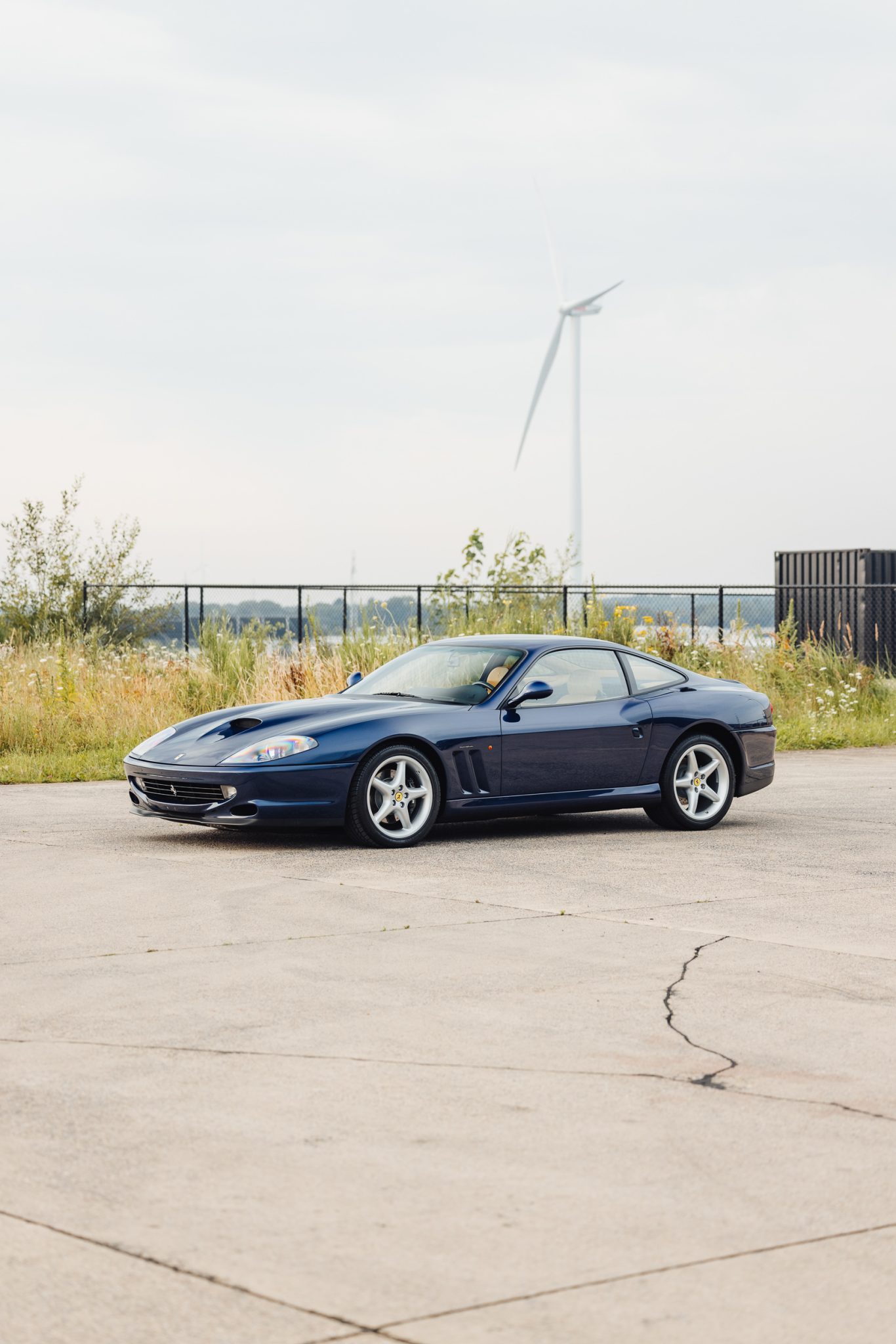 The 18″ five-spoke alloy wheels were mounted with 255/40 front and 295/35 rear Pirelli P-Zero Rosso tires in 2022. Braking is handled by black-finished Ferrari-branded calipers over a cross-drilled and ventilated rotor at each corner. The front brake hoses were replaced in May 2023.