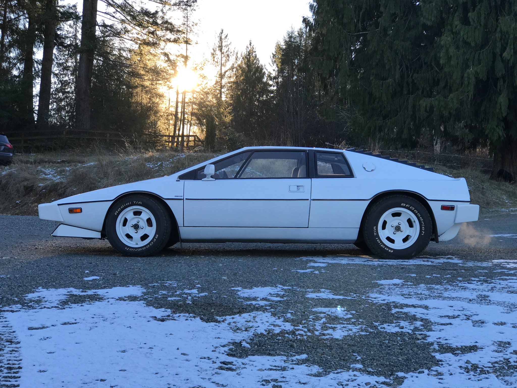 In these photos, the body panels all look to be straight and free of major flaws, while the 20-year-old repaint looks to be in driver-level condition with some fiberglass settling in the finish noted by the seller and detailed in photos. The seller lists major exterior flaws consisting of a small crack in the passenger-side mirror, some rock chips in the nose and hood, and scratches in the rear windshield which are covered by the added louvres. Many of these flaws are further detailed in the photo gallery below.