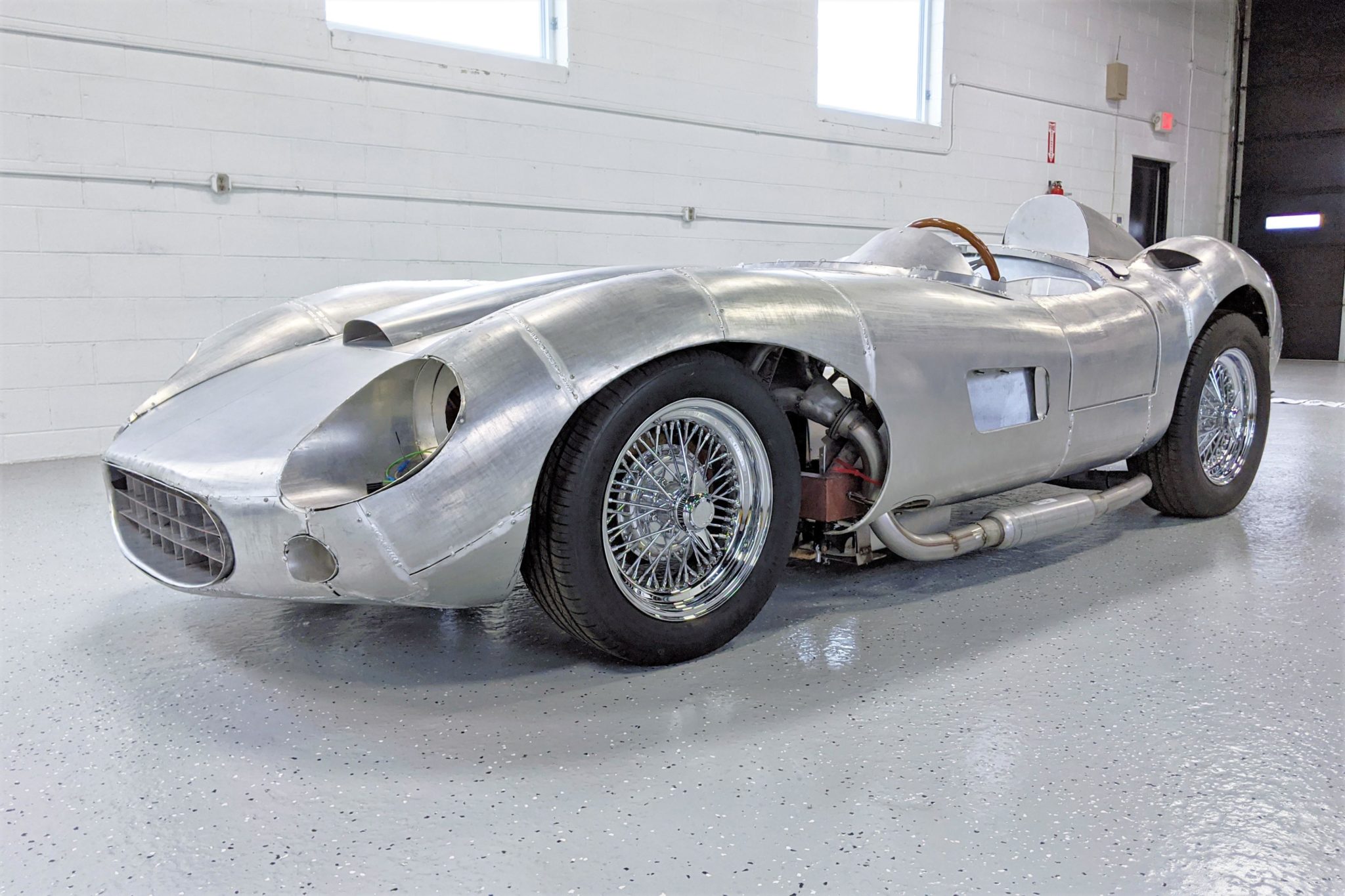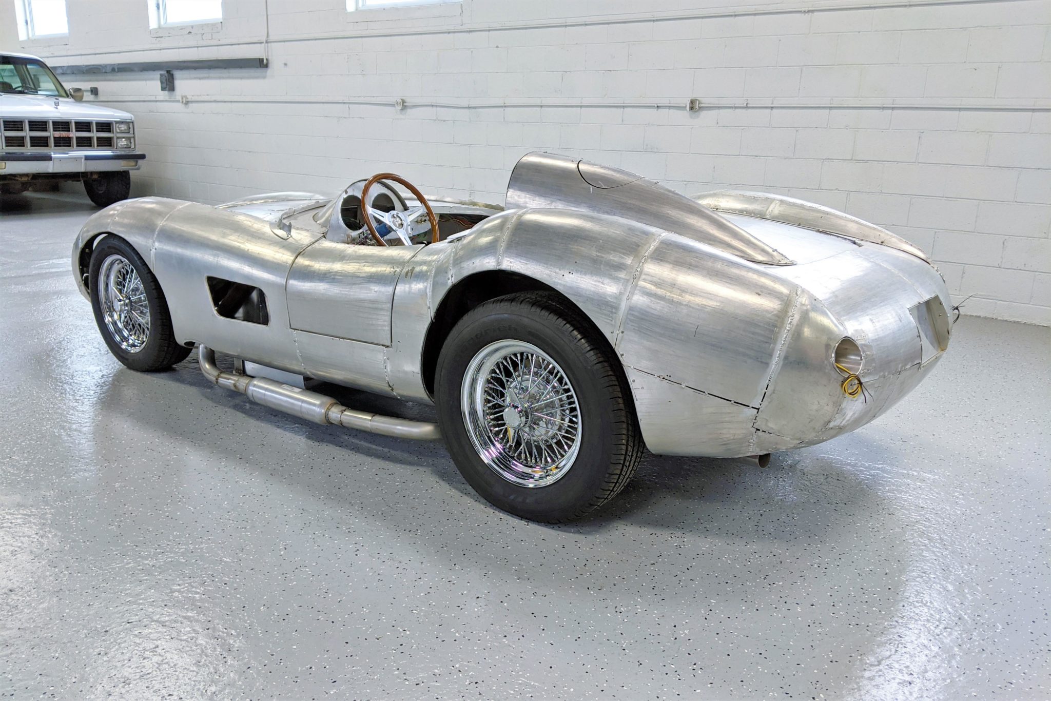The body remains unpainted, and finishing work has not been completed on the panel seams. Details of the bodywork include a hood scoop, a headrest fairing with an integrated fuel filler cap, vents on the side of the front fenders and top of the rear fenders, lighting buckets, and a windshield bracket. A template for the windshield is included.