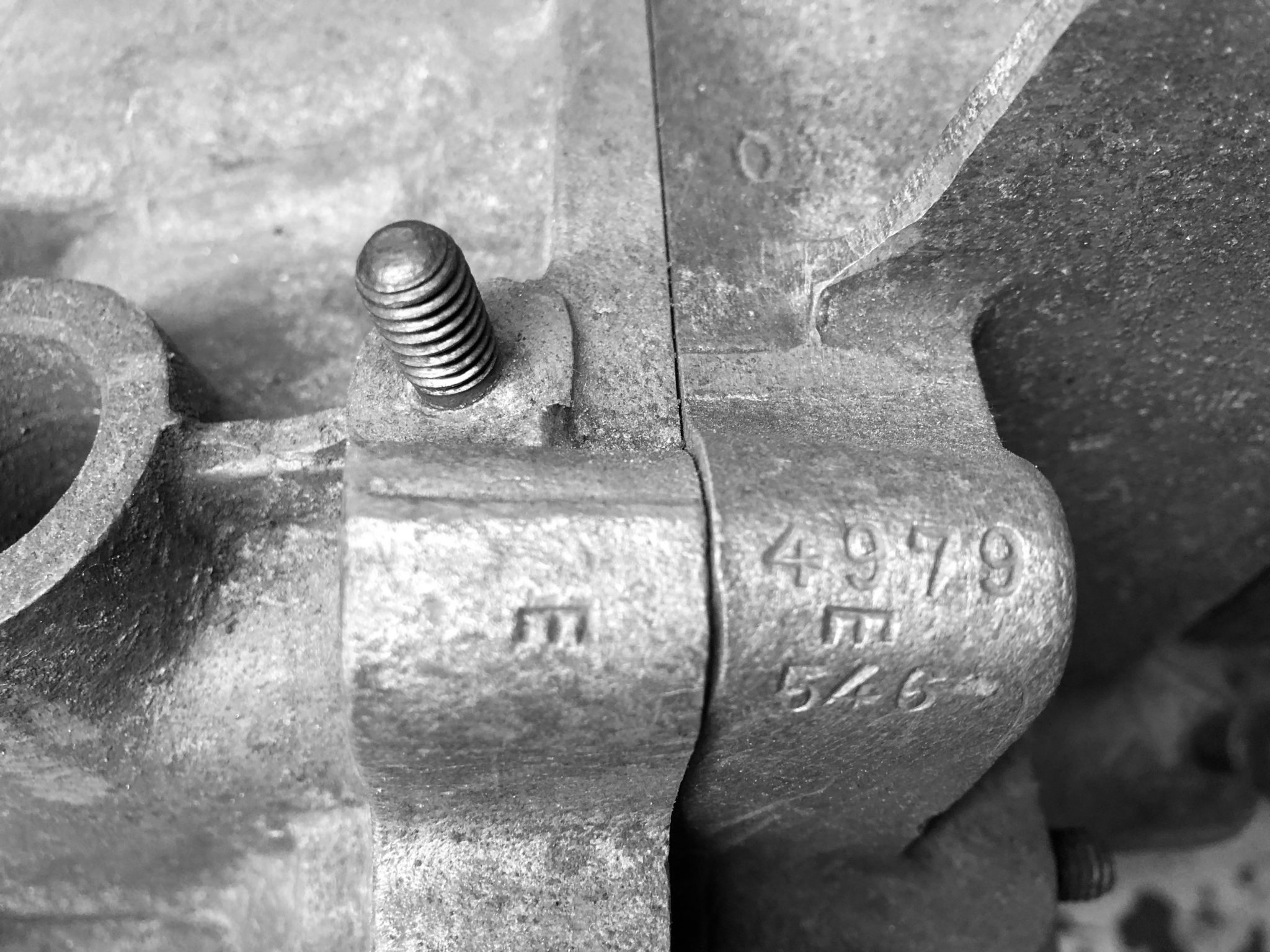 Casting marks include engine number P-32156, which indicates that this 1500 engine was produced in 1953 for a “Pre-A” 356. The firing order is also shown.