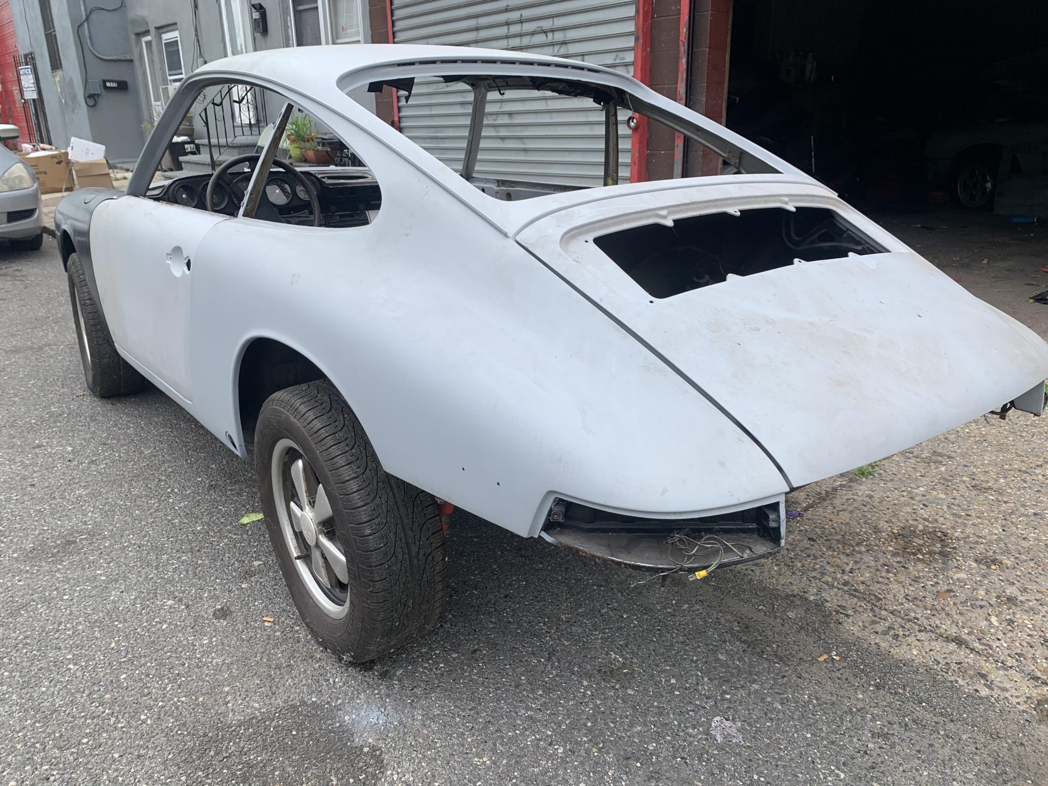 Removed trim and other spare parts are included, and the seller notes that some of the spares are from the current owner’s previous 356 project. Layout photos showing the lighting, exterior trim, window frames, and more are provided in the gallery. The seller notes that the removed glass is also included, though it is not pictured.