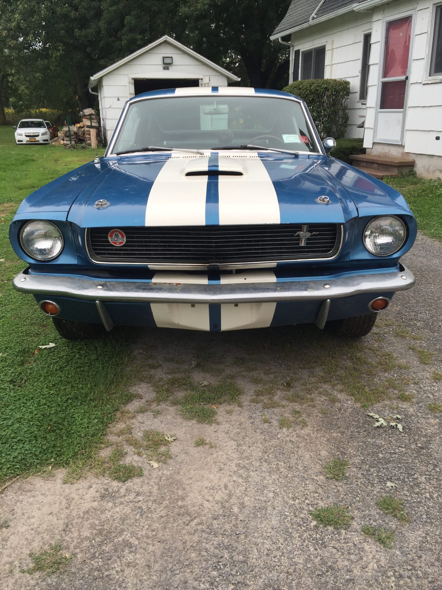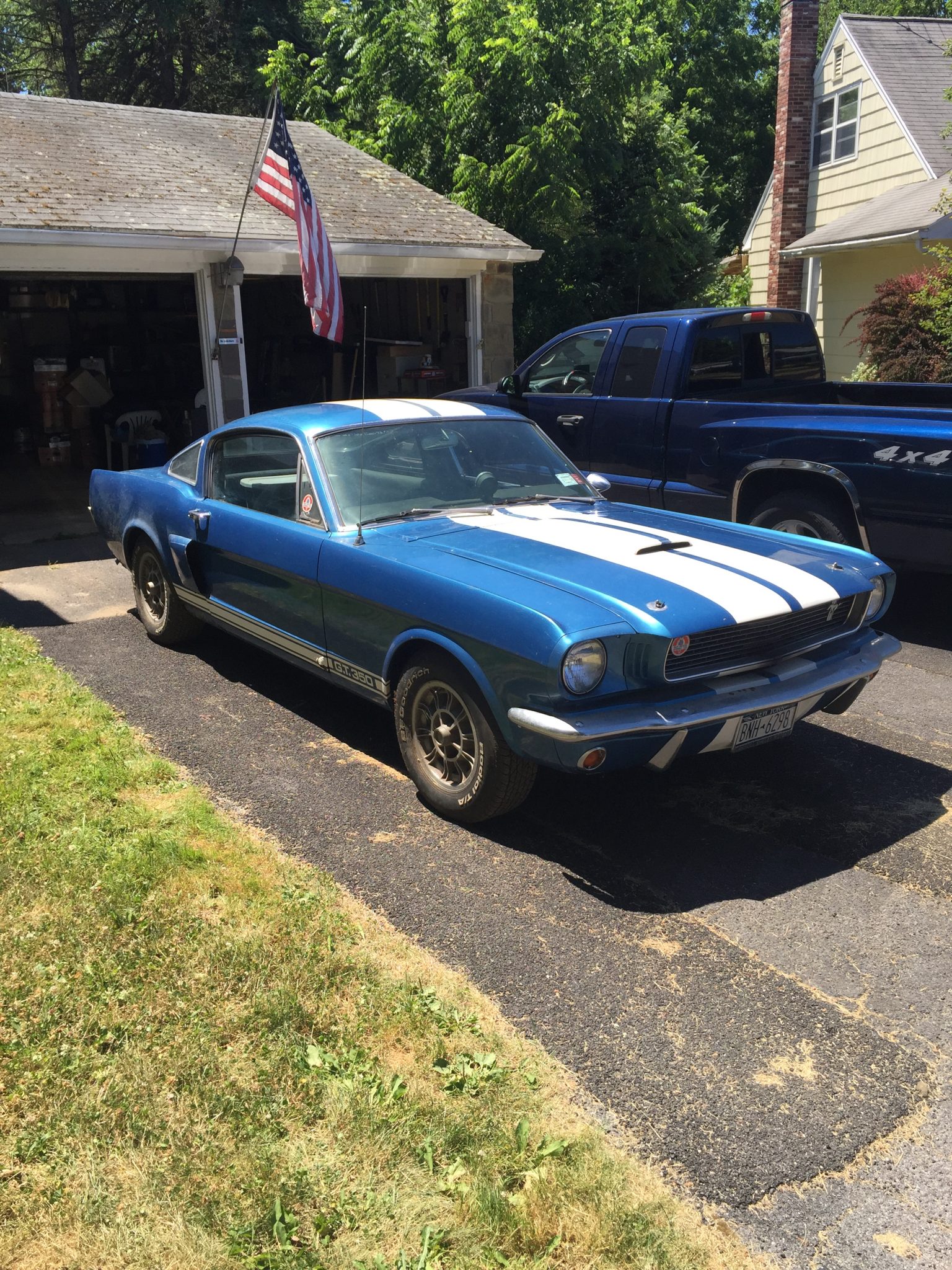 Aluminum 14″ wheels were optional for 1966 Shelby Mustangs and here wear older BFGoodrich Radial T/A tires. A matching spare is retained in the trunk and wears a Goodyear Blue Streak tire. The GT350’s braking system incorporates Kelsey-Hayes discs up front, along with larger rear drums than standard Mustang models. The seller notes that the brake pedal is frozen.