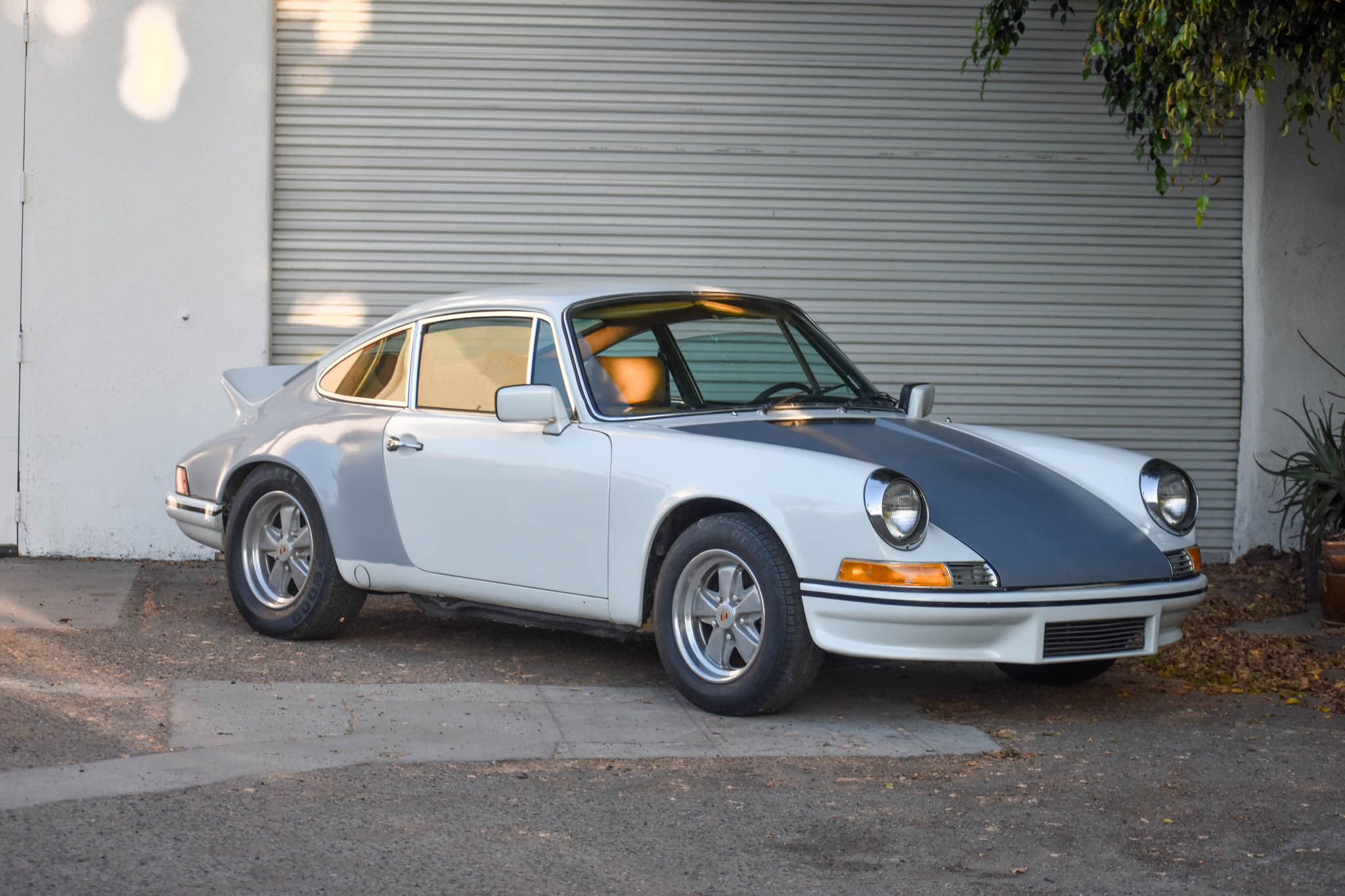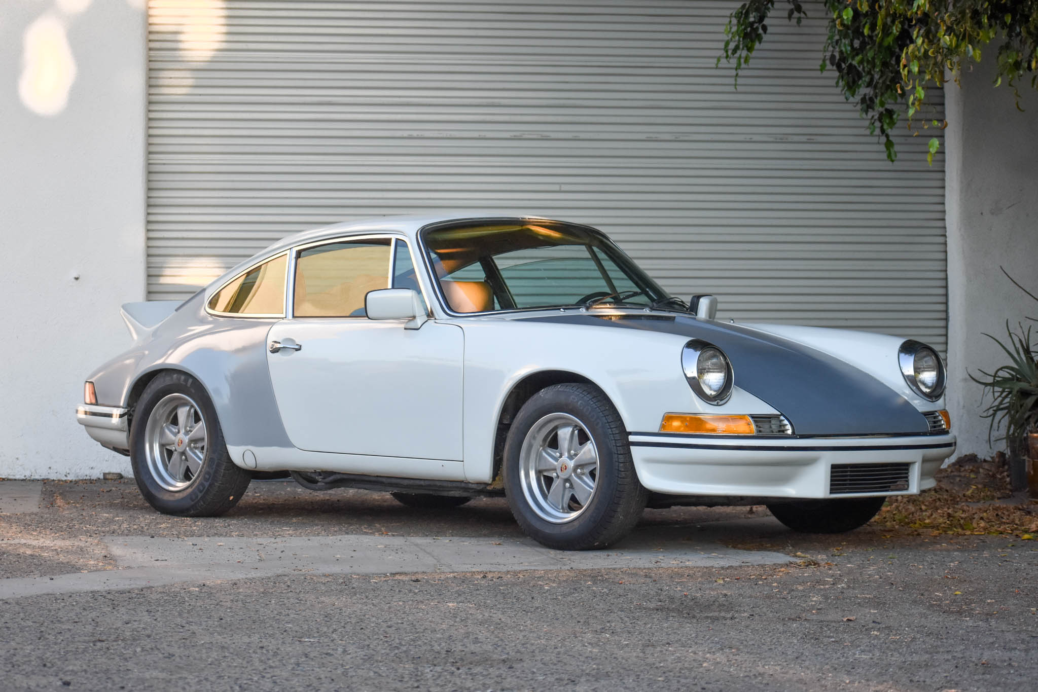 15″ Fuchs-style wheels feature a polished finish as well as colored Porsche-crest center caps and are mounted with Pirelli P6000 tires. Braking is handled by four-wheel discs.