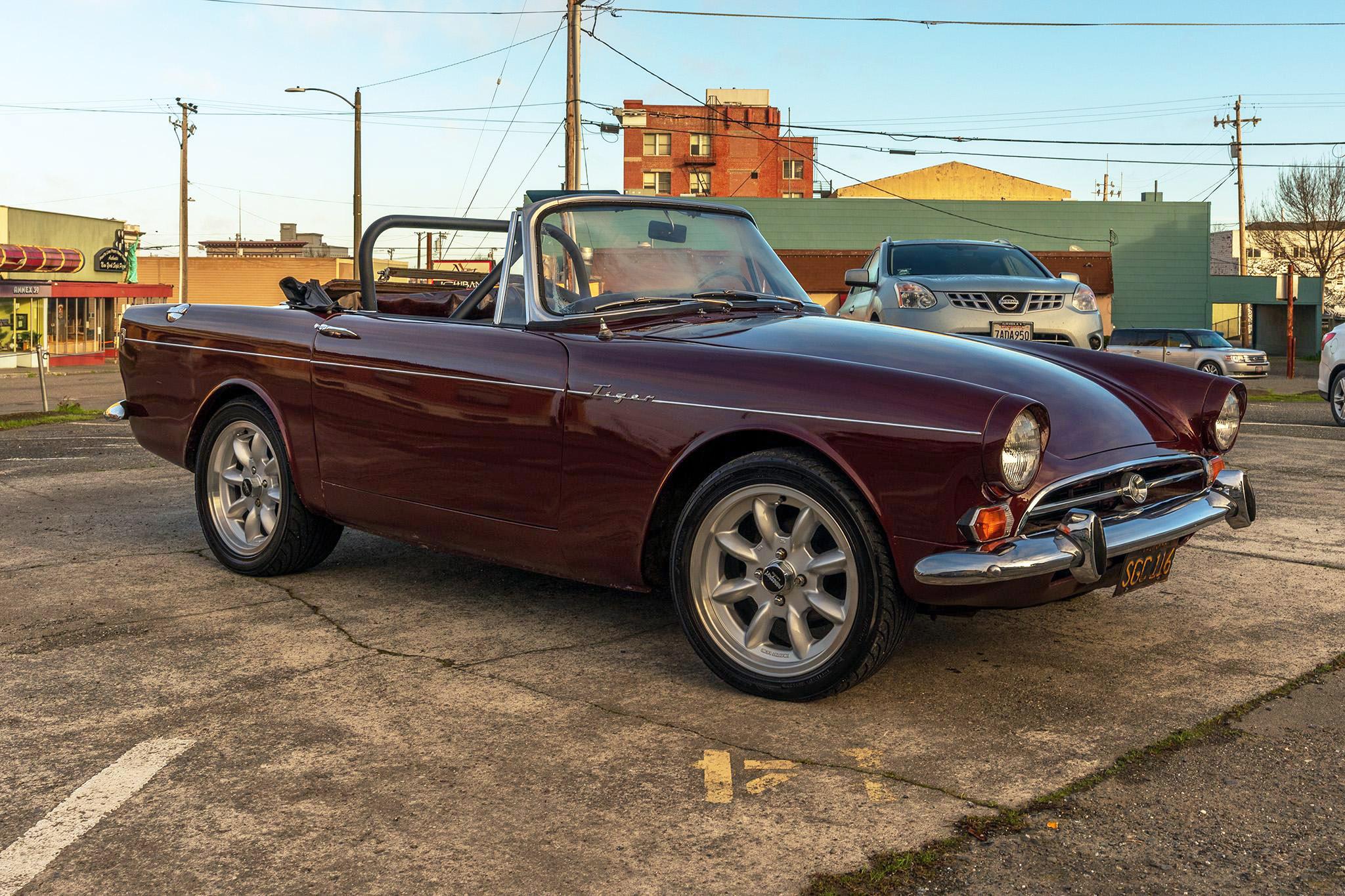 Silver-finished 16″ Panasport wheels wear 225/45 Yokohama tires. The car has front disc brakes and rear drums.