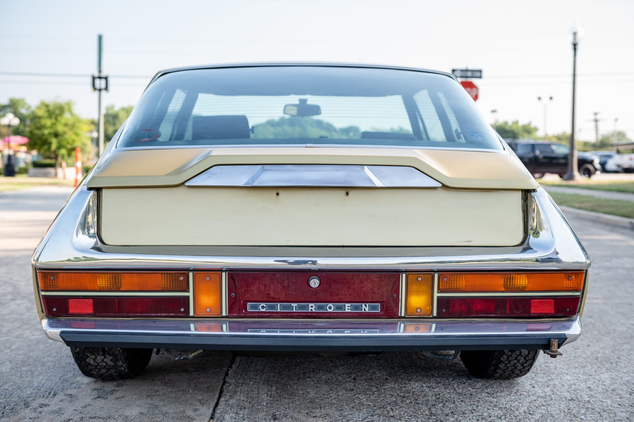 The 15” steel wheels feature polished covers and are mounted with older Michelin tires that show cracking in the sidewalls. The car is equipped with height-adjustable hydro-pneumatic suspension, and a full-size spare is found in the trunk.