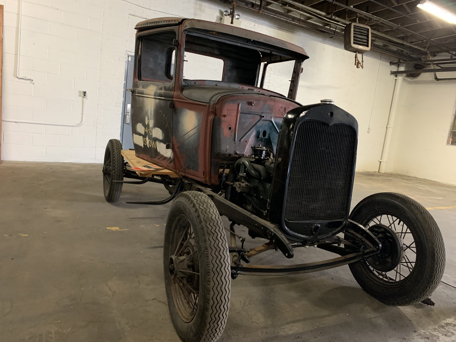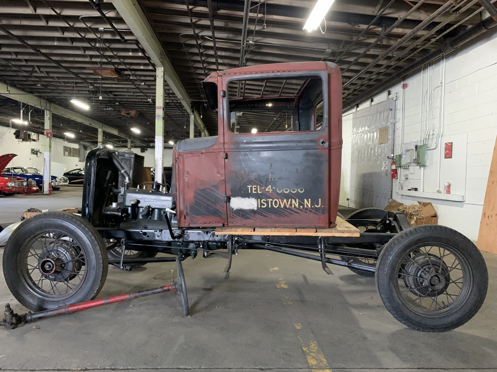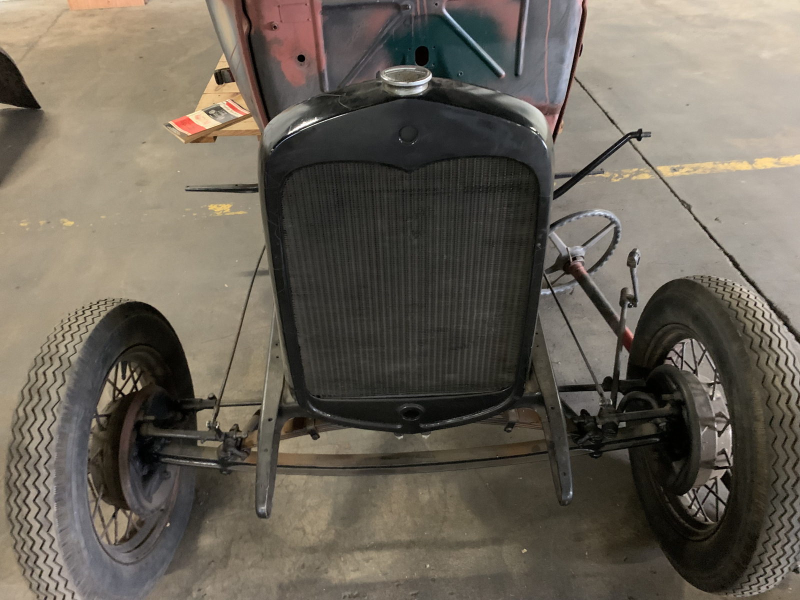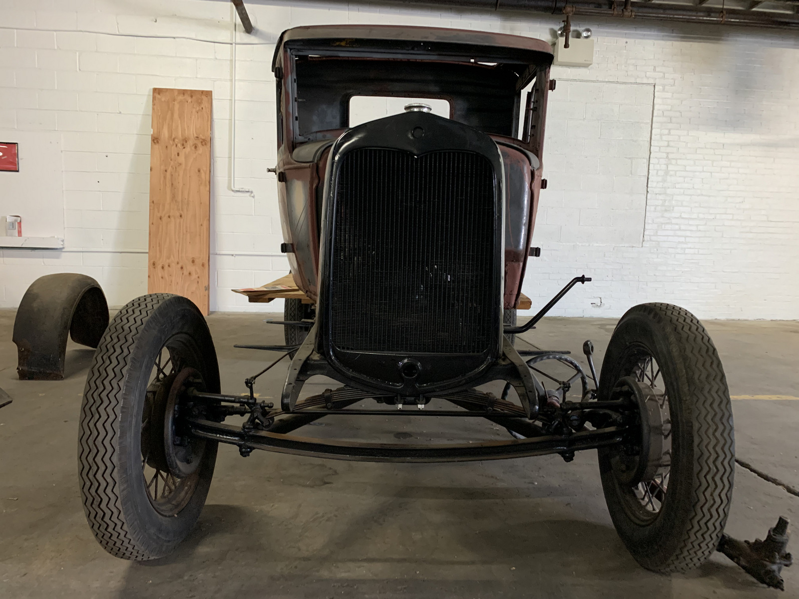 Black-painted 19” wire wheels are mounted to the chassis, which features a leaf spring suspension. A spare wheel is included.