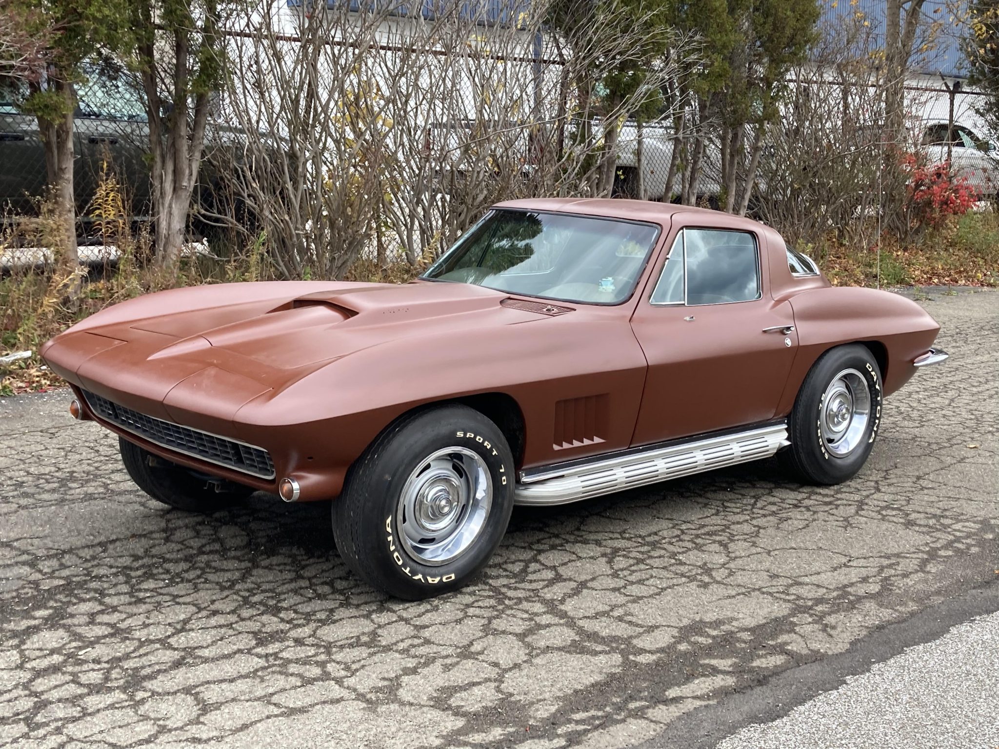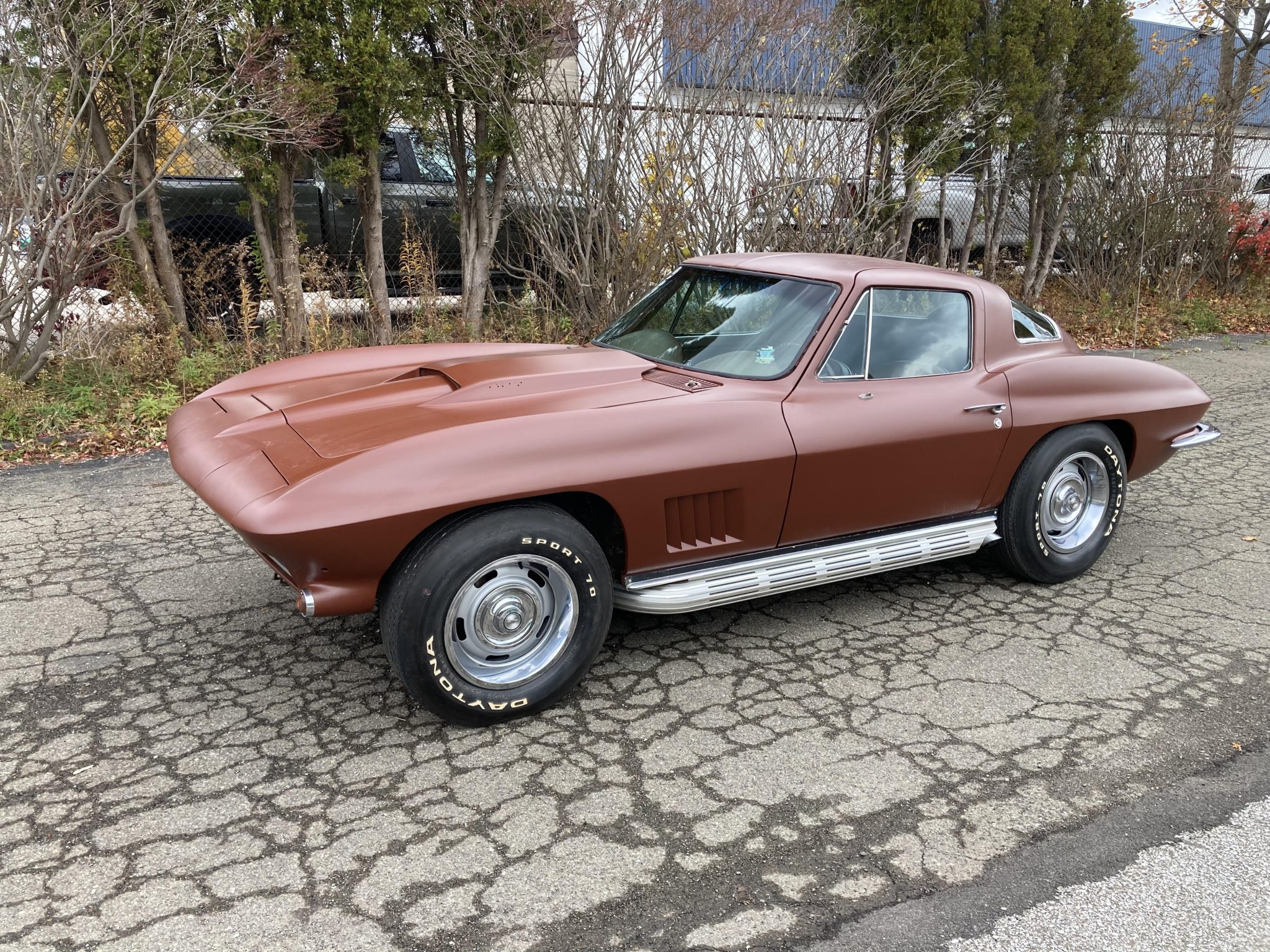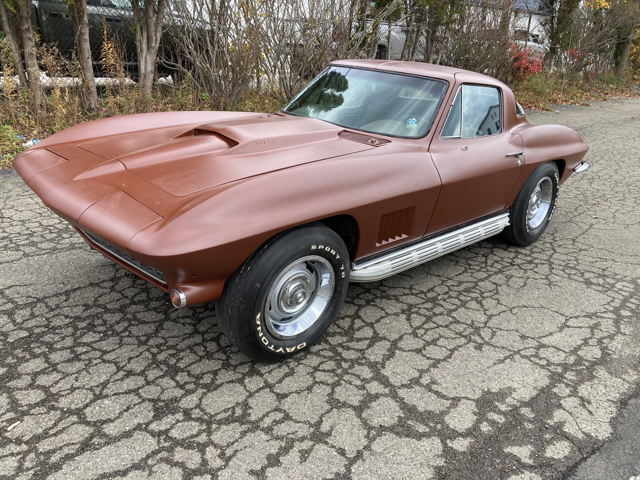 Rally-style wheels wear hubcaps and trim rings and are mounted with older Daytona Sport 70 tires. The brake calipers and master cylinder were reportedly replaced by the selling dealer.