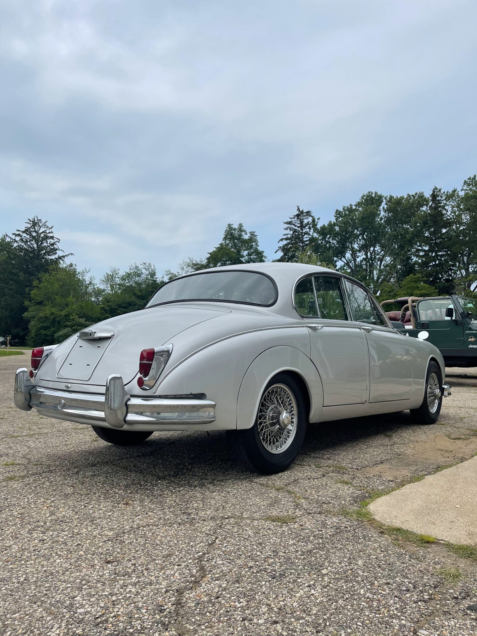 Chrome-finished 15” wire wheels wear two-eared knock-off spinners and are mounted with Vredestein tires. Stopping power is provided by four-wheel disc brakes.