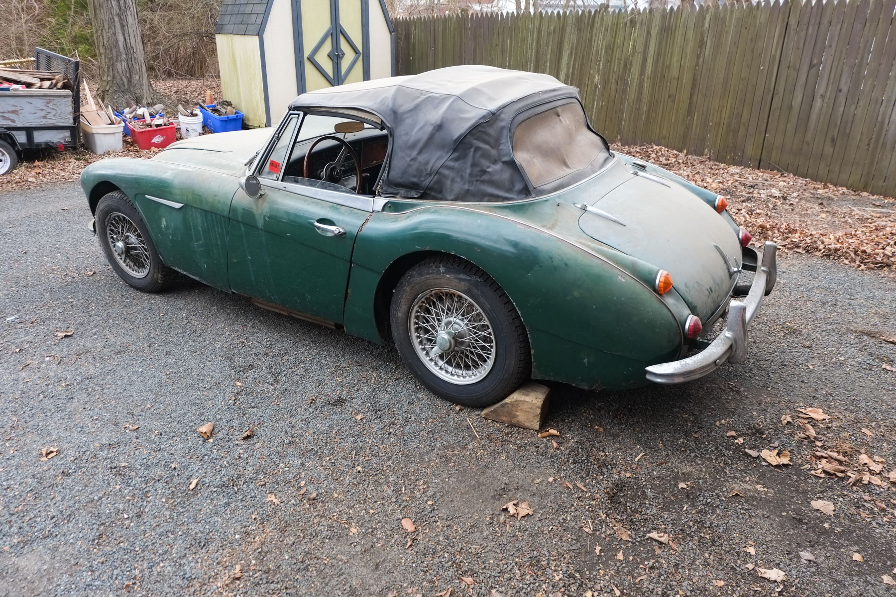 Silver-painted 15” wire wheels wear two-eared knock-off spinners and are mounted with older 165-width Michelin XZX tires.