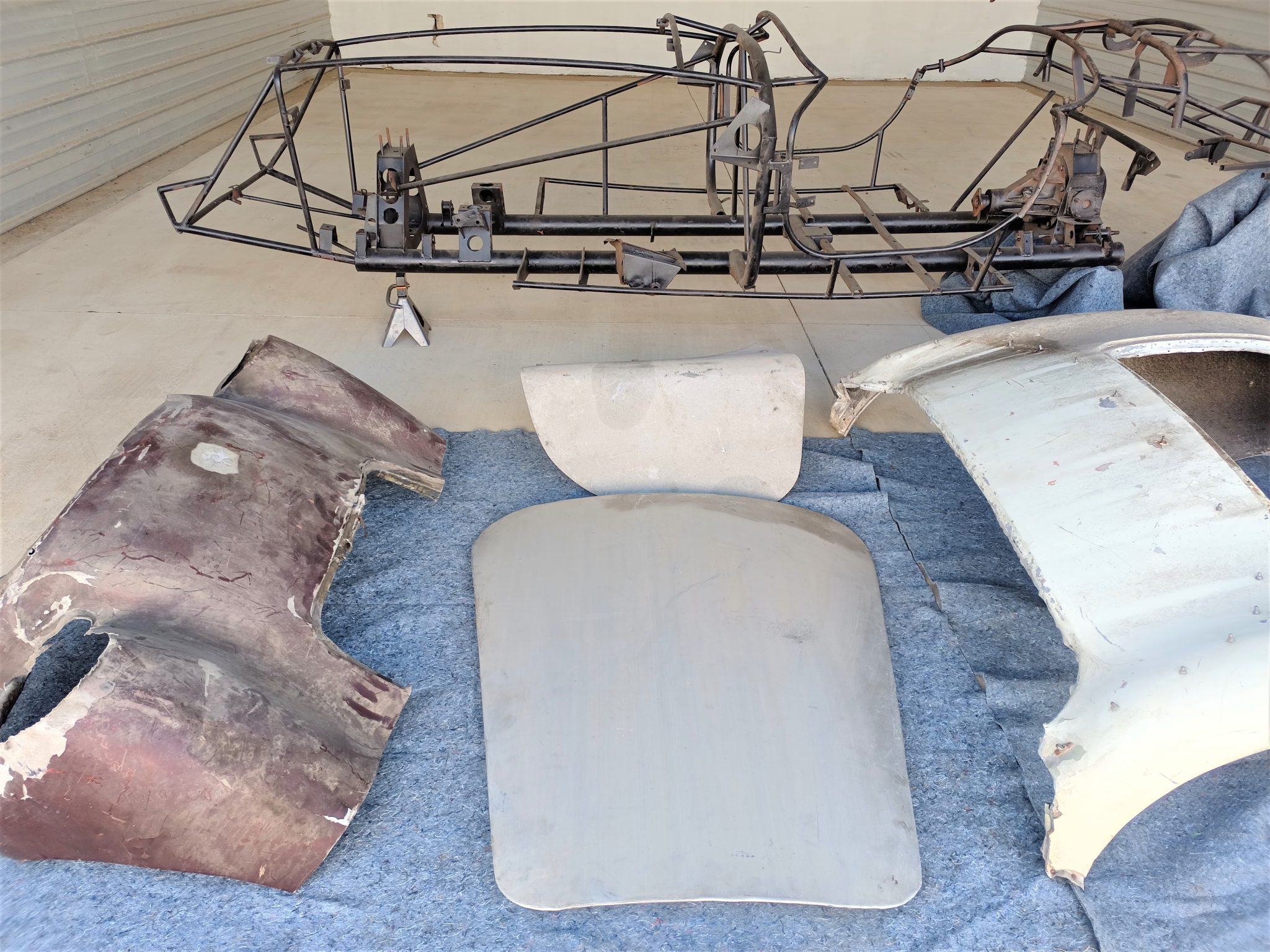 The removed bodywork is incomplete, and the included pieces are shown up close in the photo gallery below. The hood panel was reskinned under previous ownership.