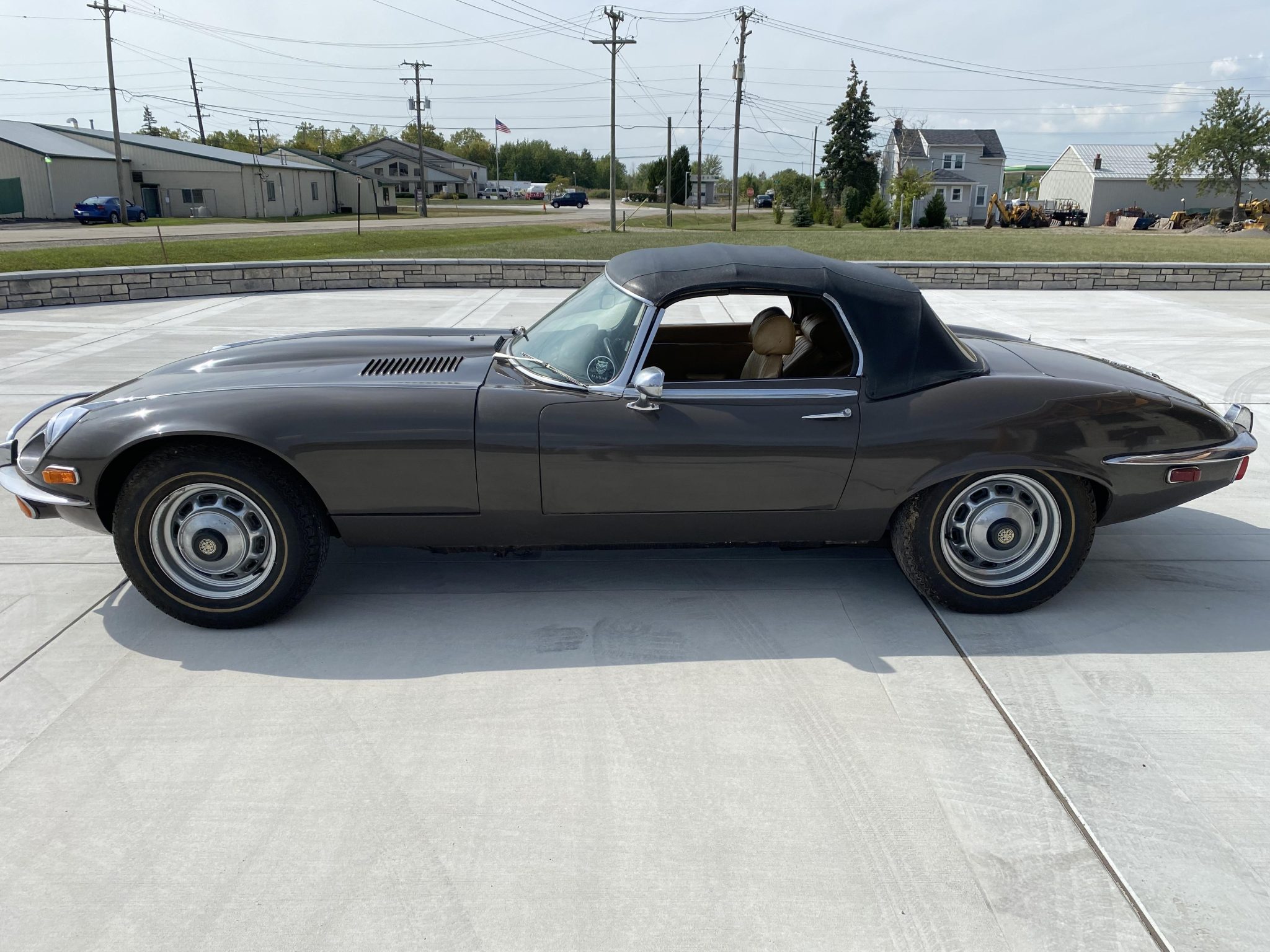 Chrome 15” wheels with Jaguar hubcaps are mounted with older Dunlop whitewall tires. A full-size spare is found in the trunk. Braking is through four-wheel discs with inboard-mounted rears.