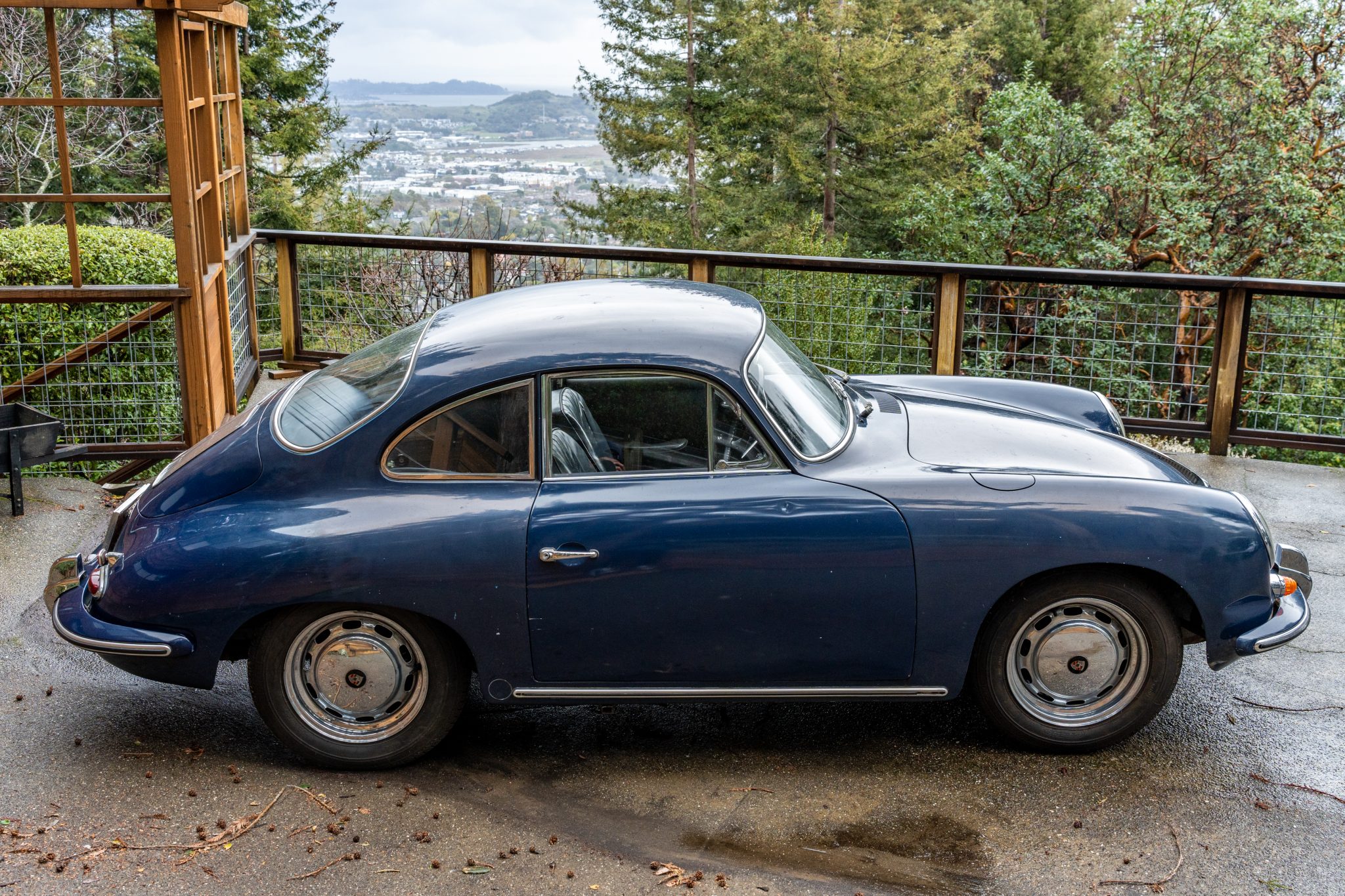 Chrome 15″ steel wheels wear Porsche-branded hubcaps and are mounted with older Michelin XZX tires that were said to be installed in 1984. The seller notes that the four-wheel disc brakes require service.