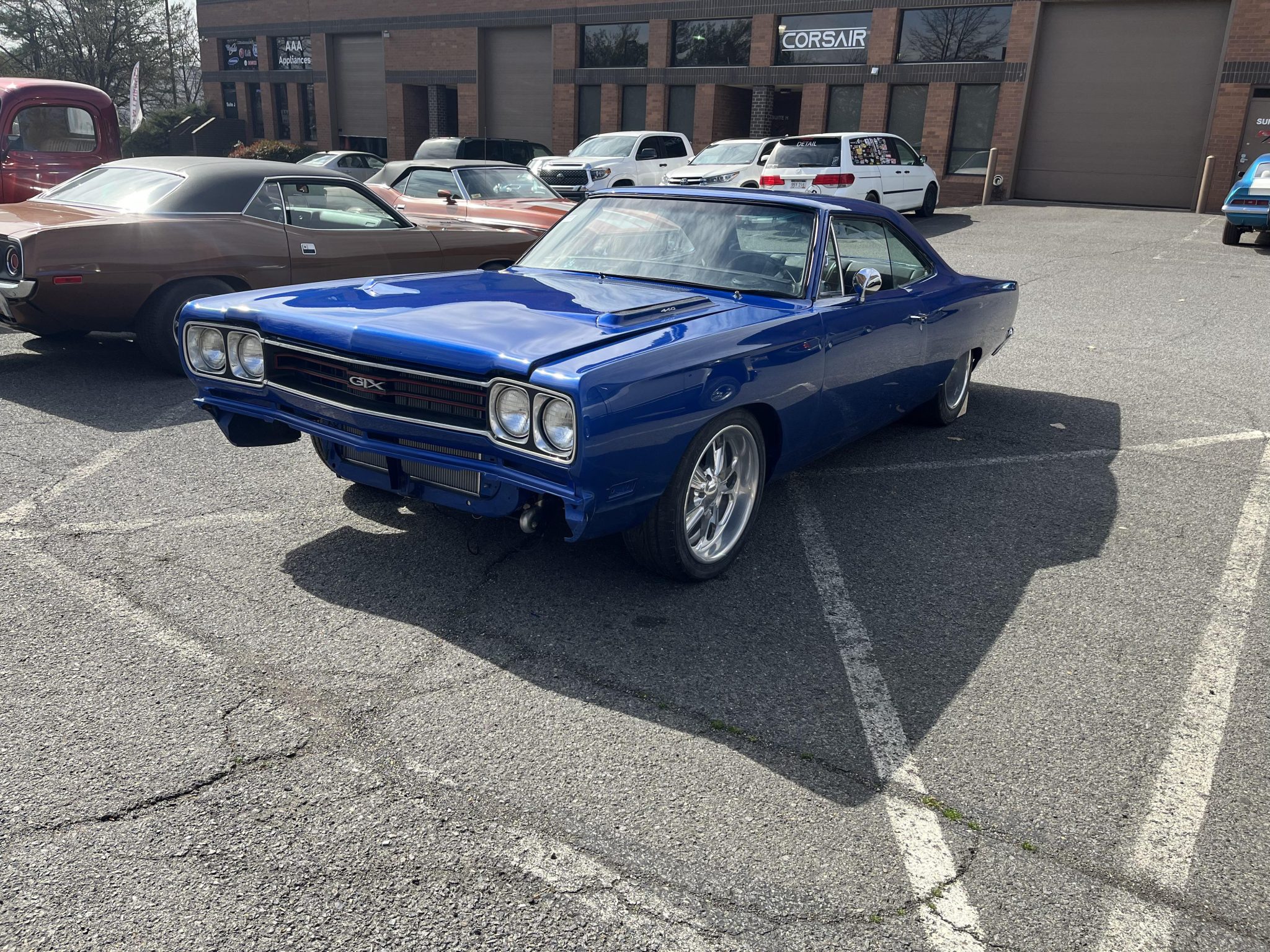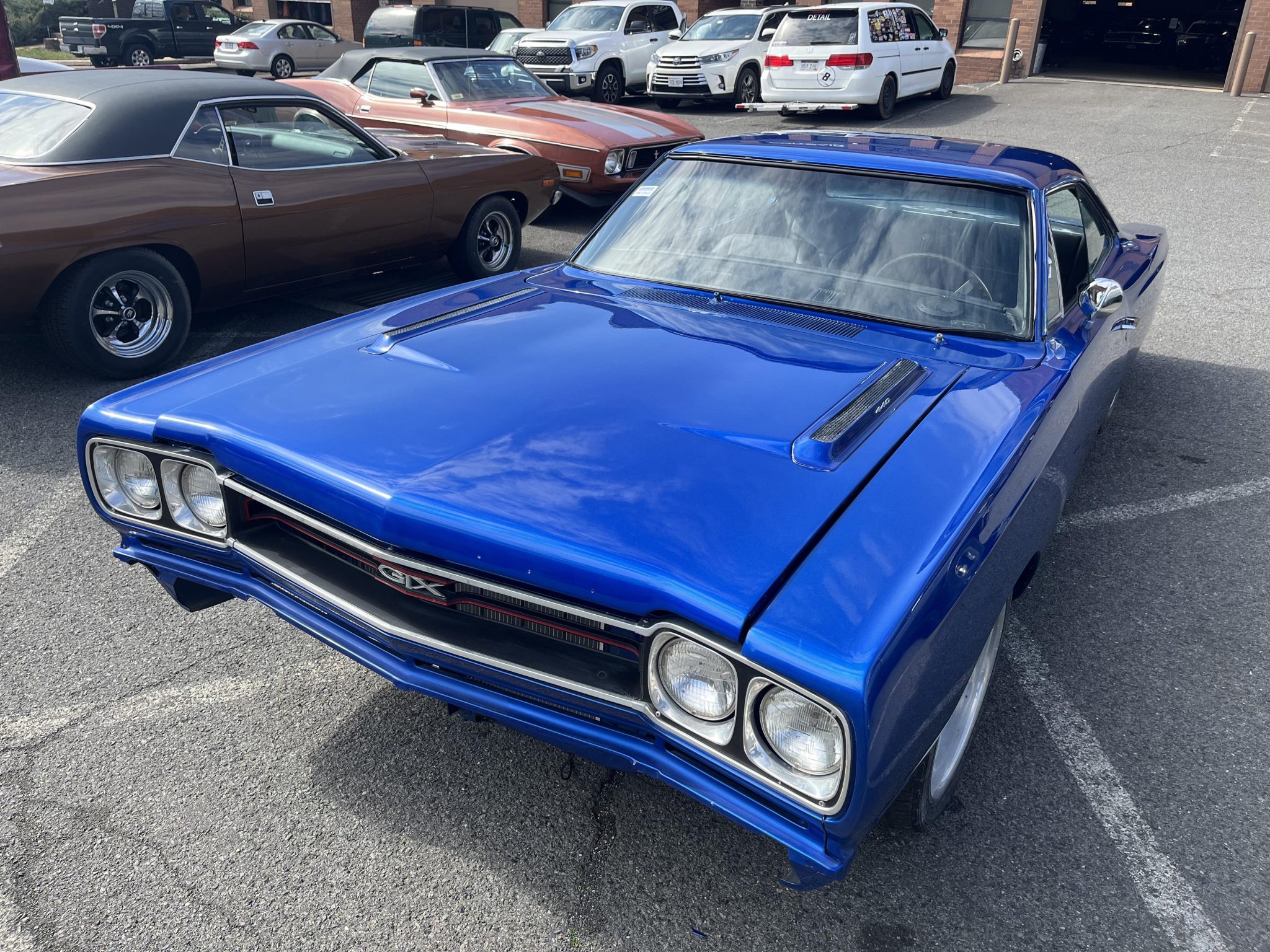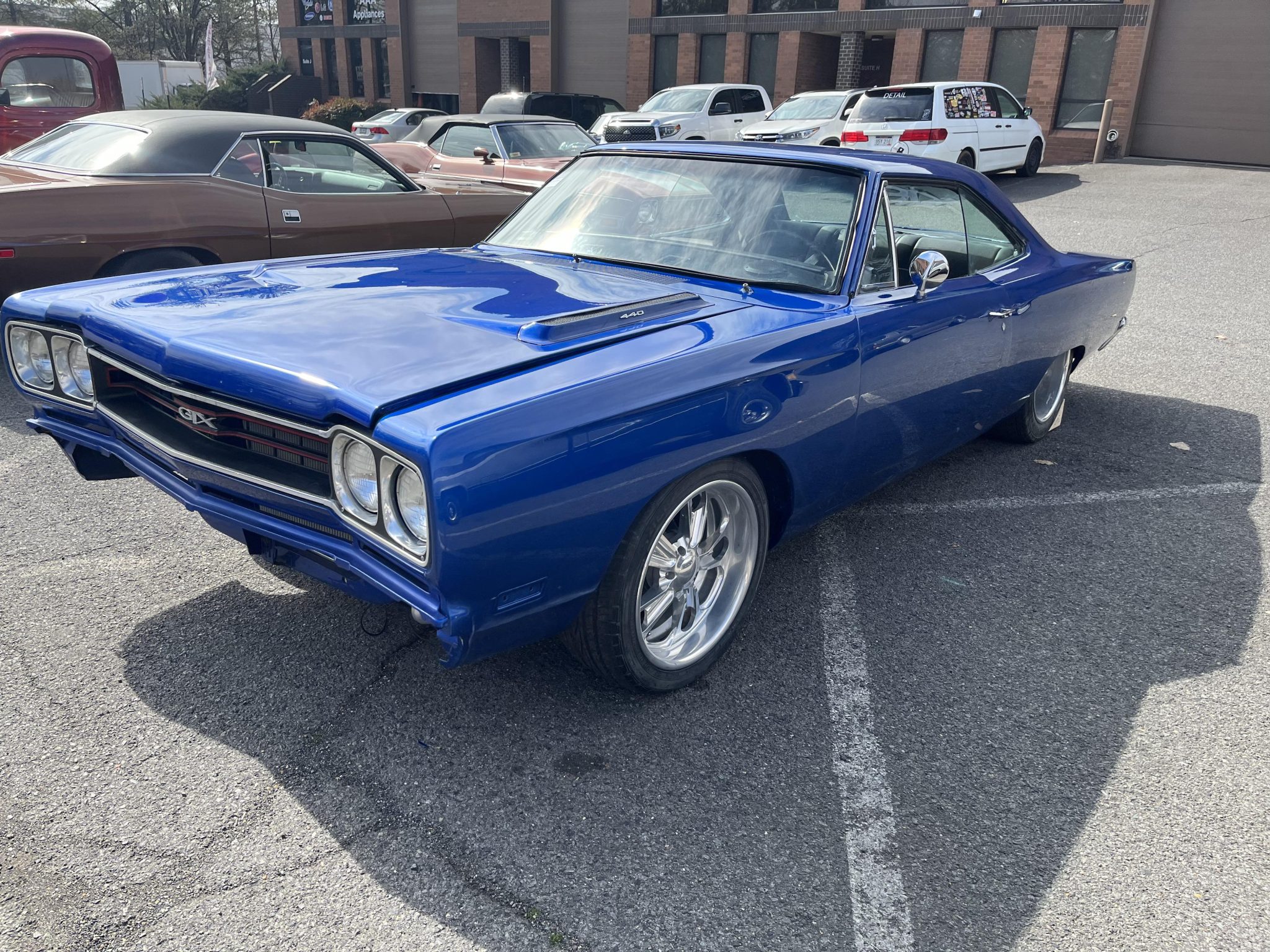 Five-spoke 18″ Budnik wheels are mounted with 245/40 Falken Ziex ZE912 tires up front and 345/35 M&H Racemaster rubber out back. The seller reports that the suspension has been replaced and a four-link kit is installed at the rear. Wilwood six-piston front and four-piston rear brake calipers are fitted over cross-drilled discs at all four corners.