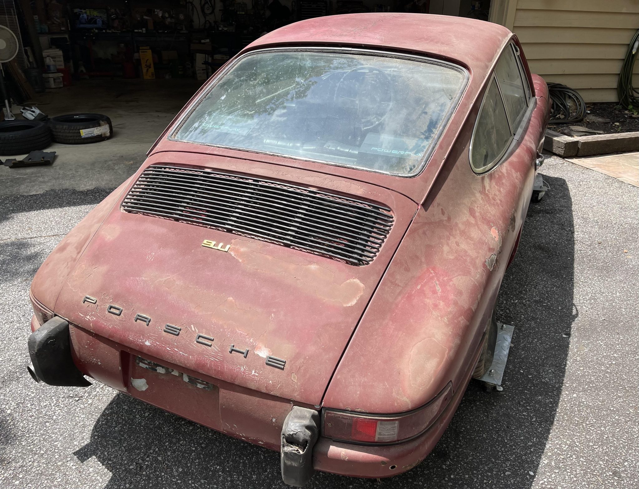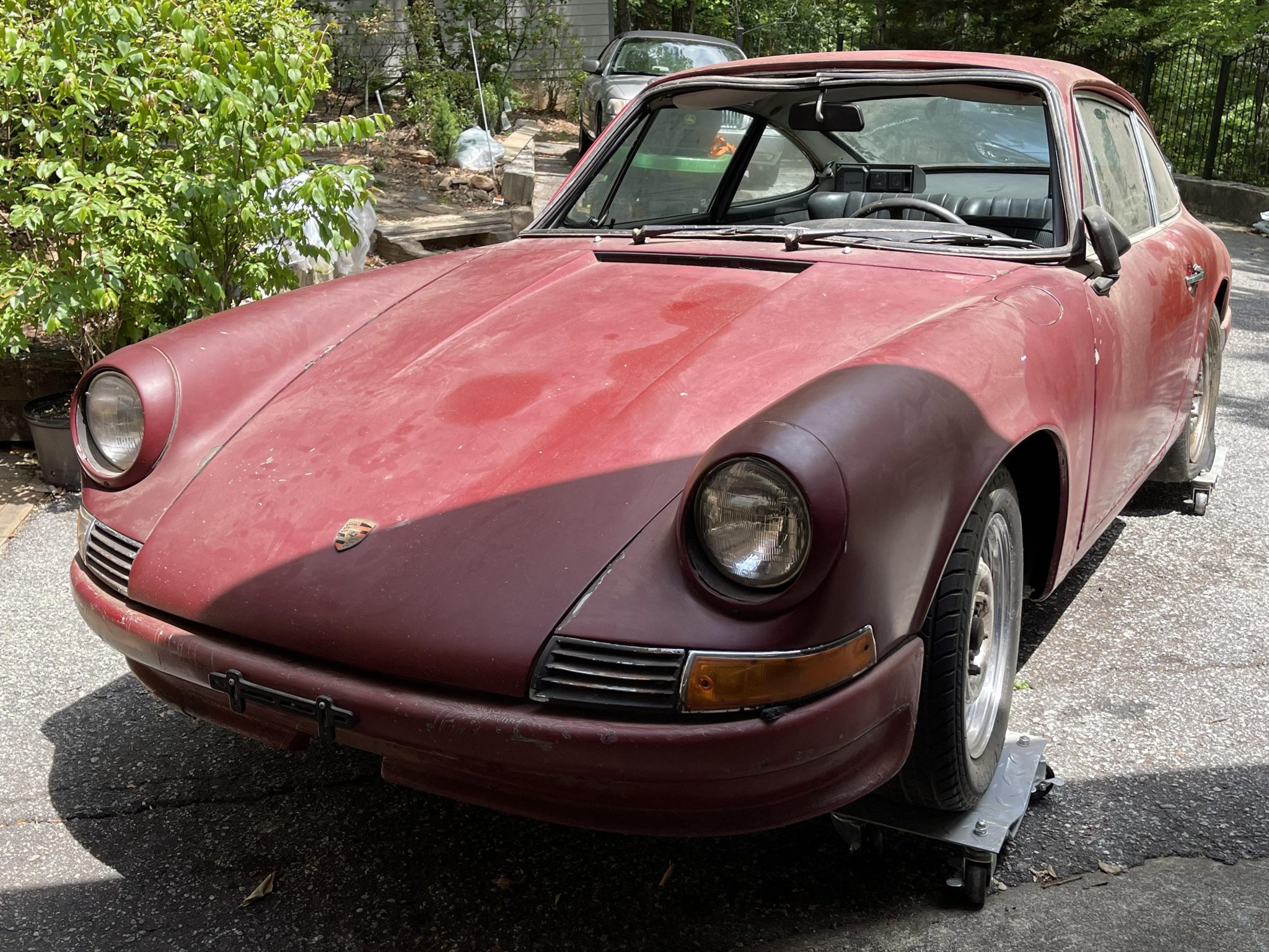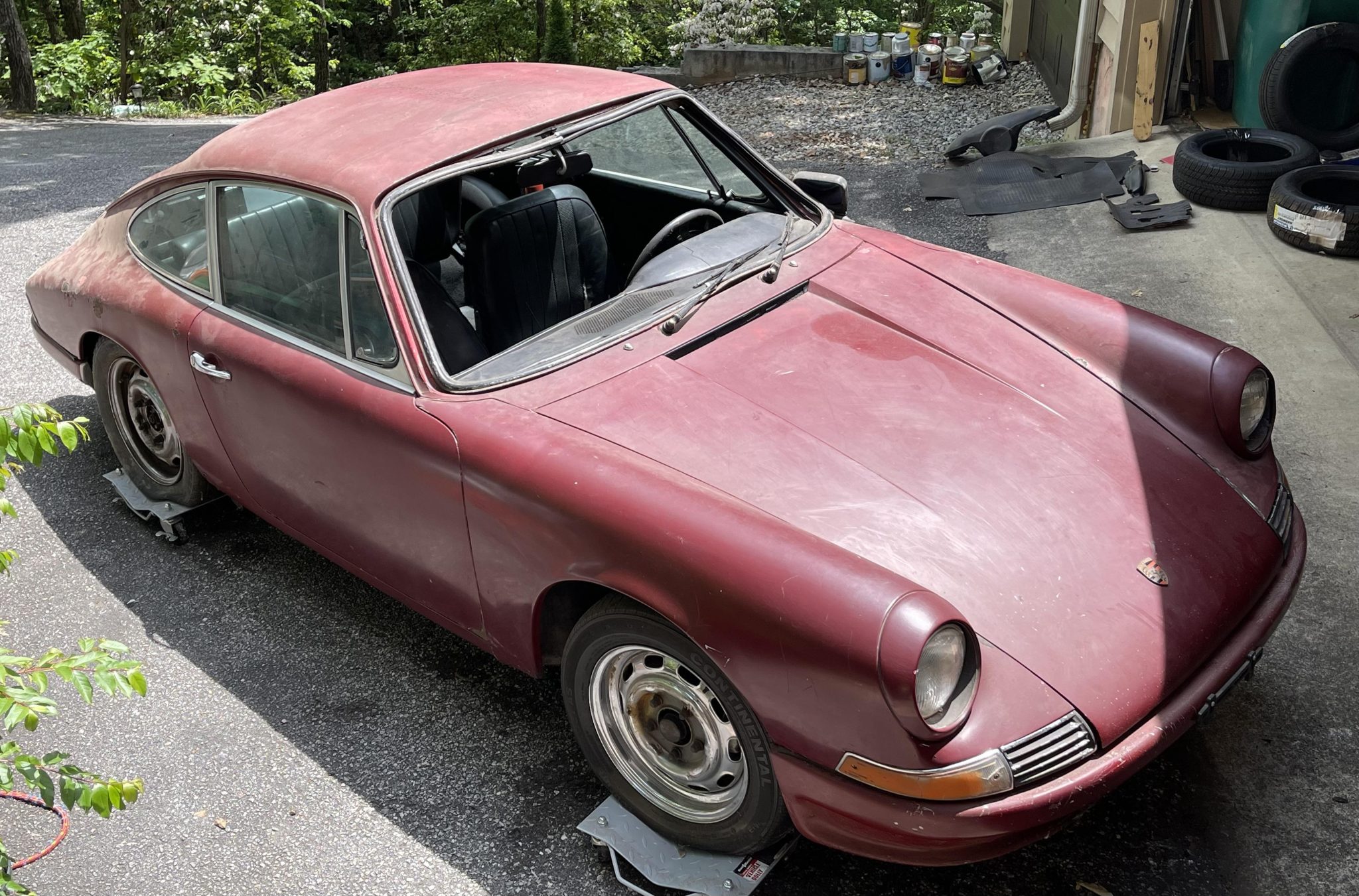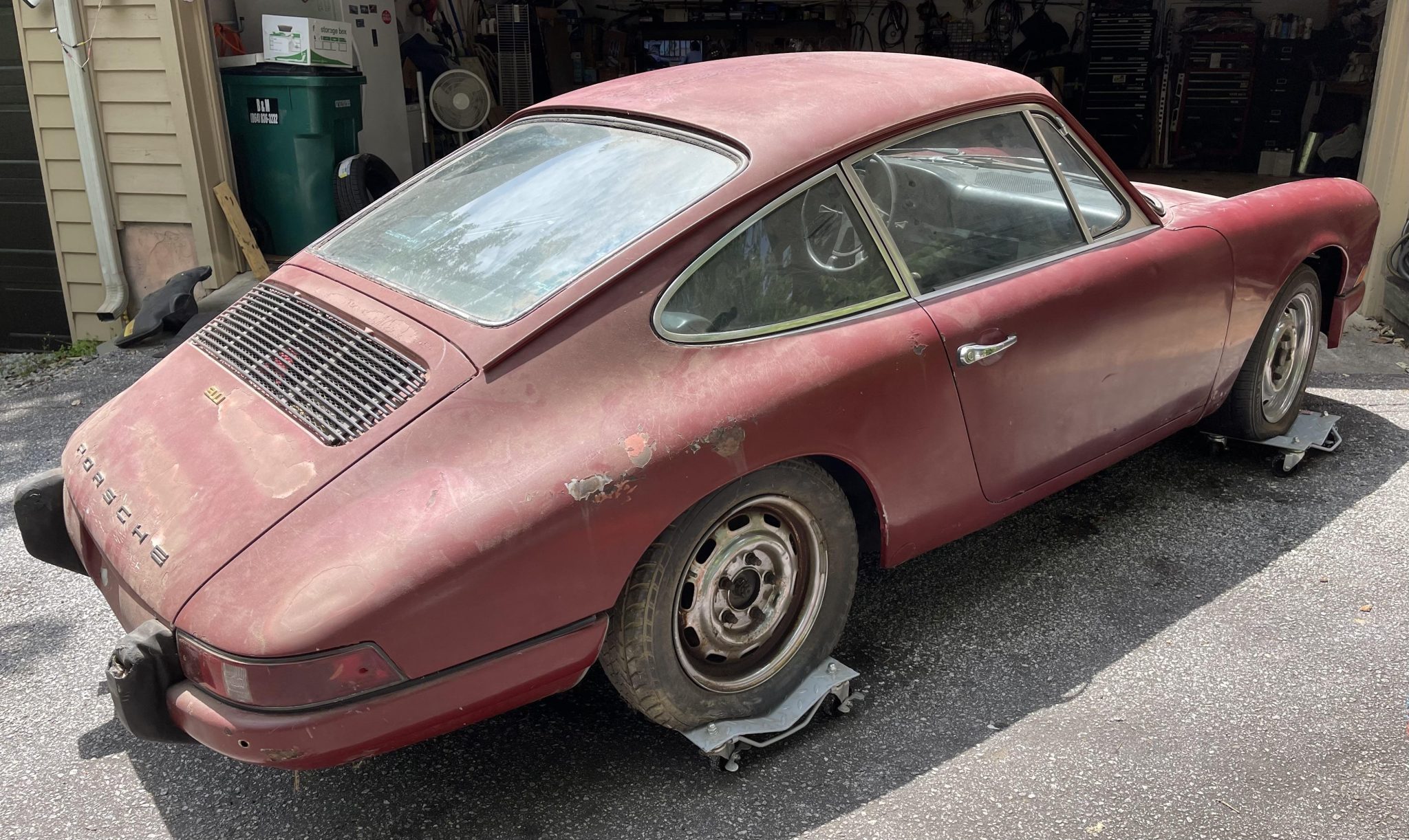 Chrome-finished 15″ steel wheels show wear and are mounted with a mixed set of Falken, Continental, and Goodyear tires. A crack is visible in the sidewall of the right-rear tire. The car is equipped with four-wheel disc brakes.