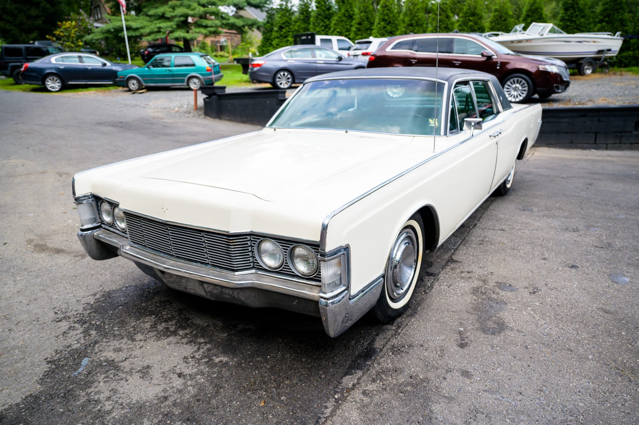 Steel 15″ wheels wear stainless-steel Lincoln-logo covers and are mounted with 235/75 Dunlop Generation IV thin-whitewall tires. The car is equipped with power steering, and braking is handled by power-assisted front discs and rear drums.