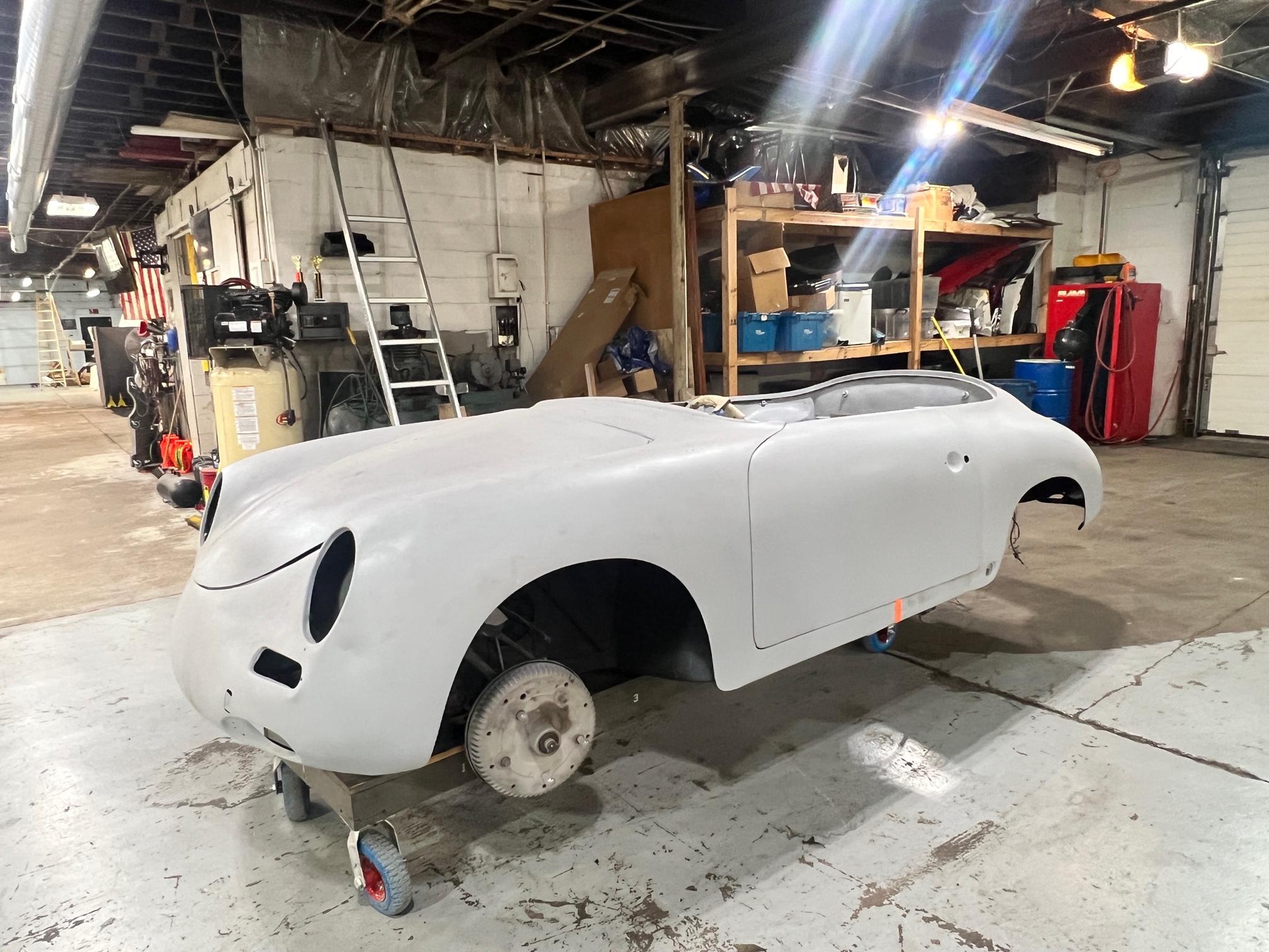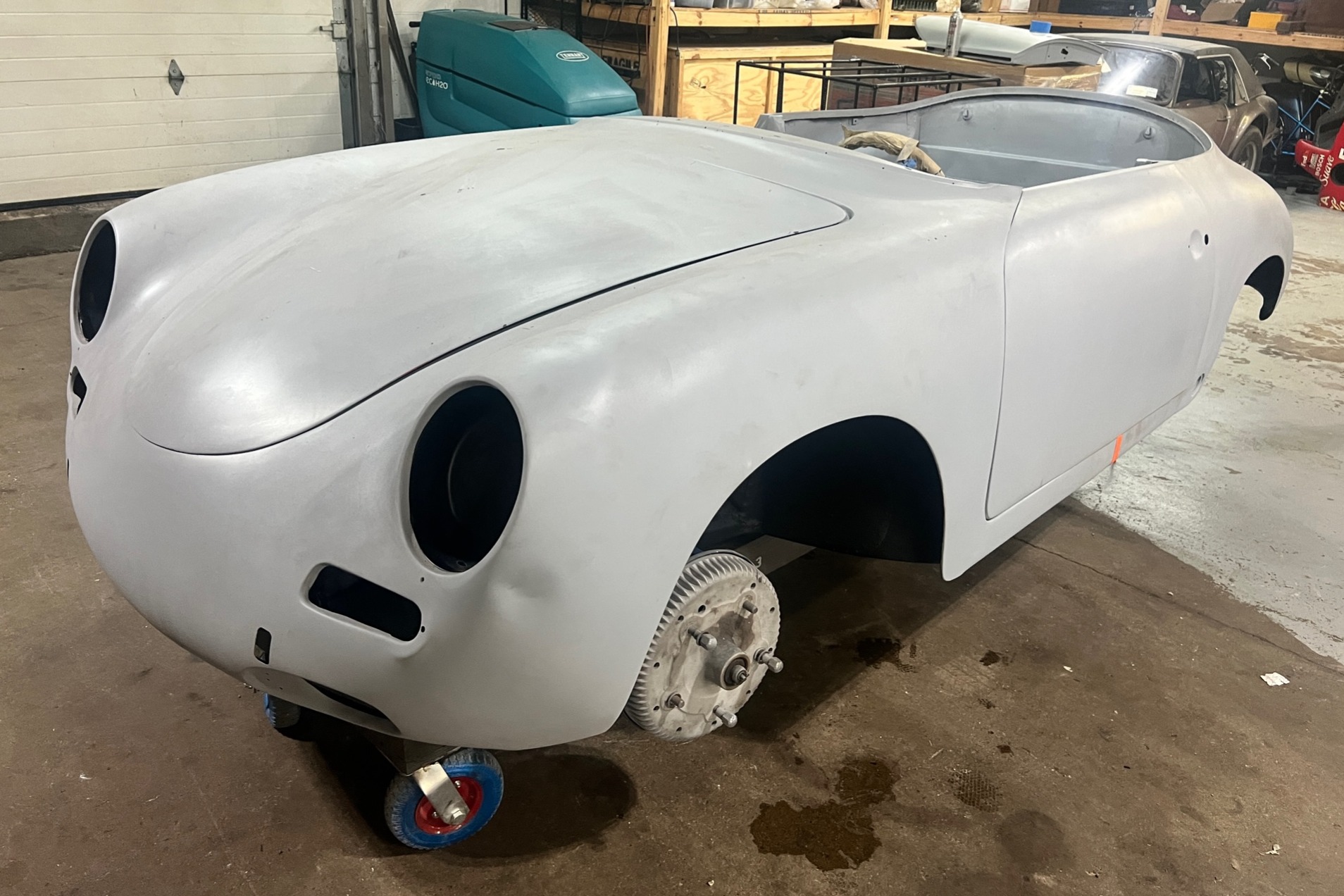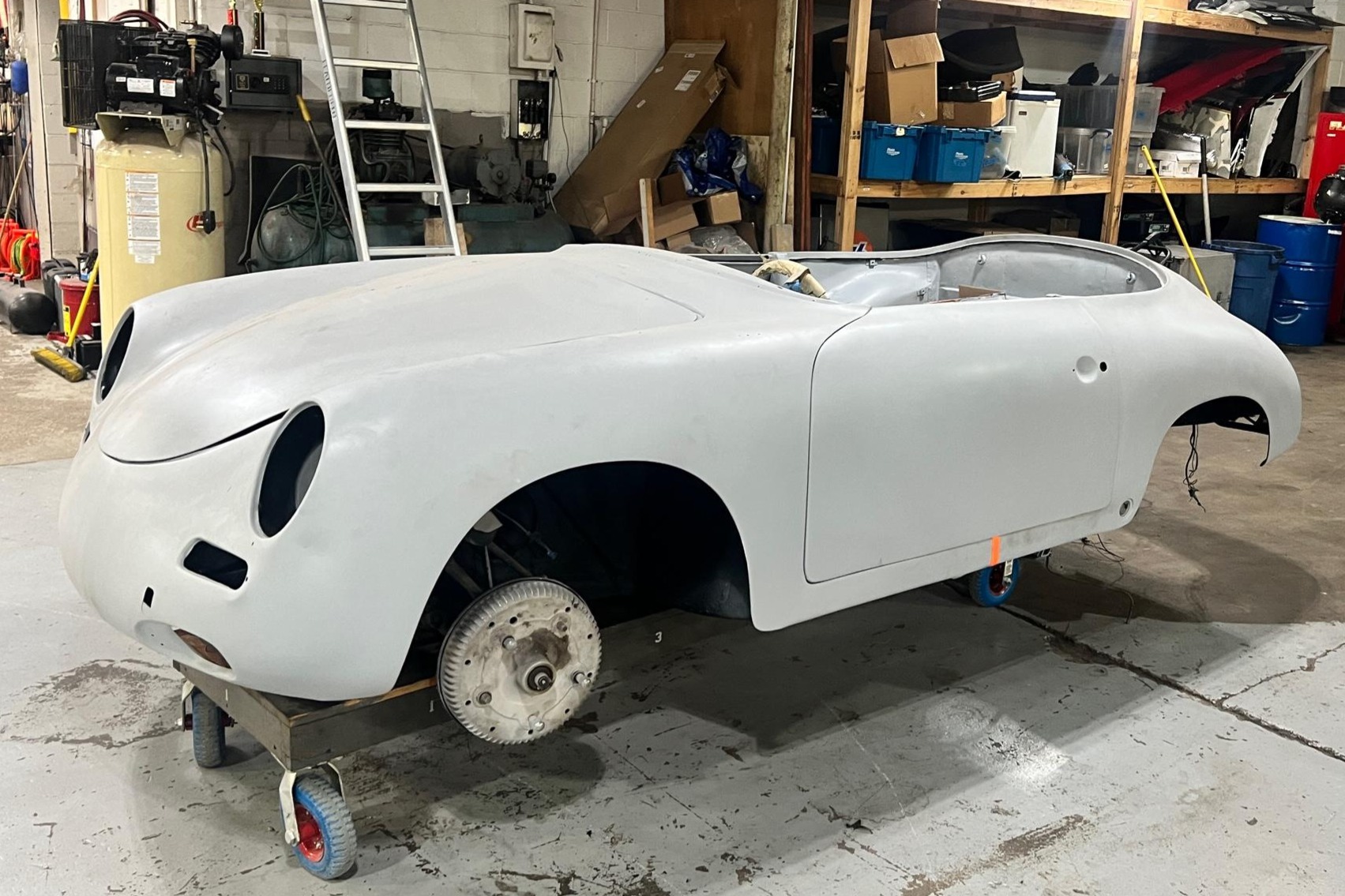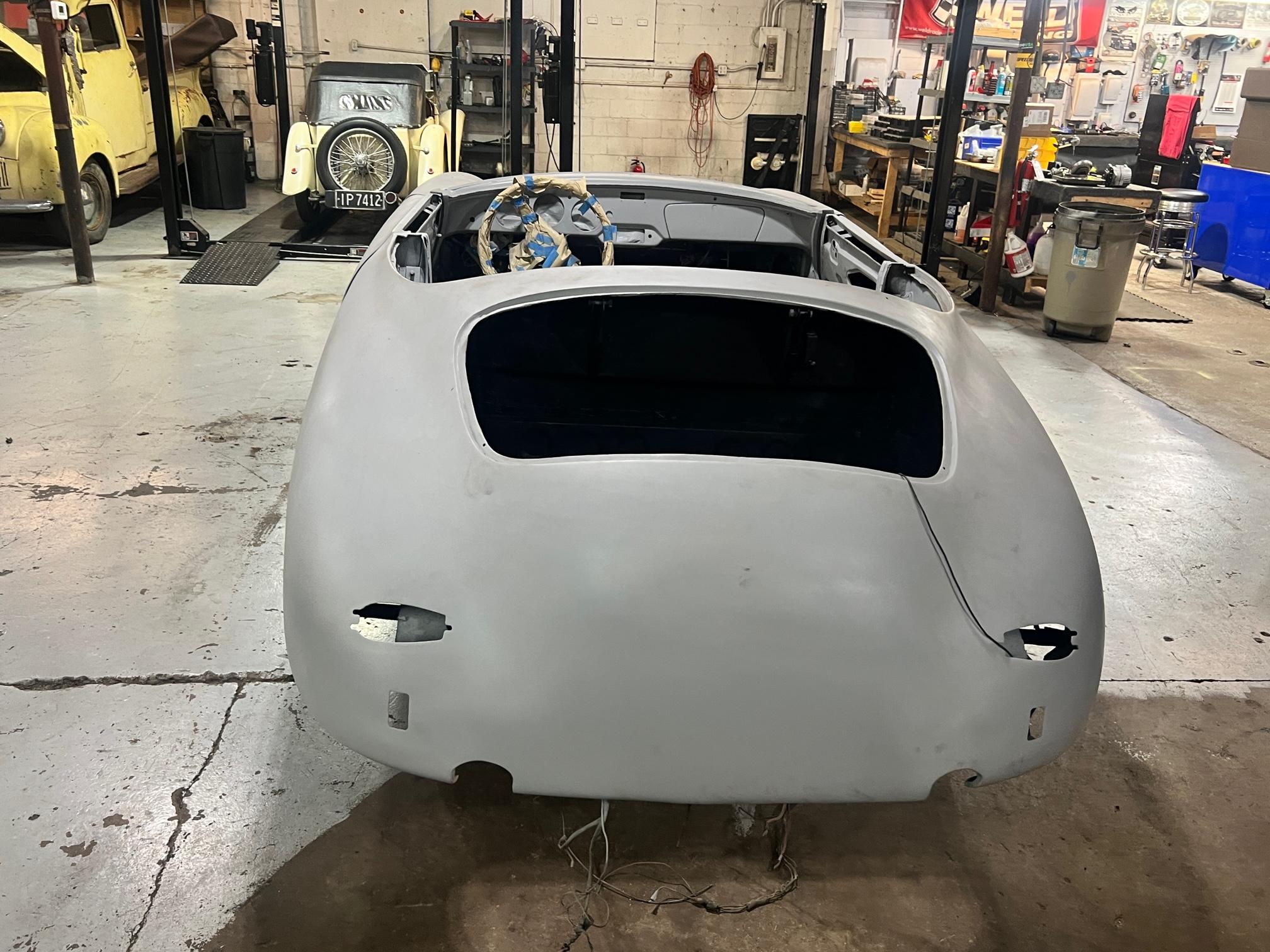 Drum brake assemblies remain fitted up front, while the rear axles, brakes, suspension components, and wheels have been removed and are included in the sale.