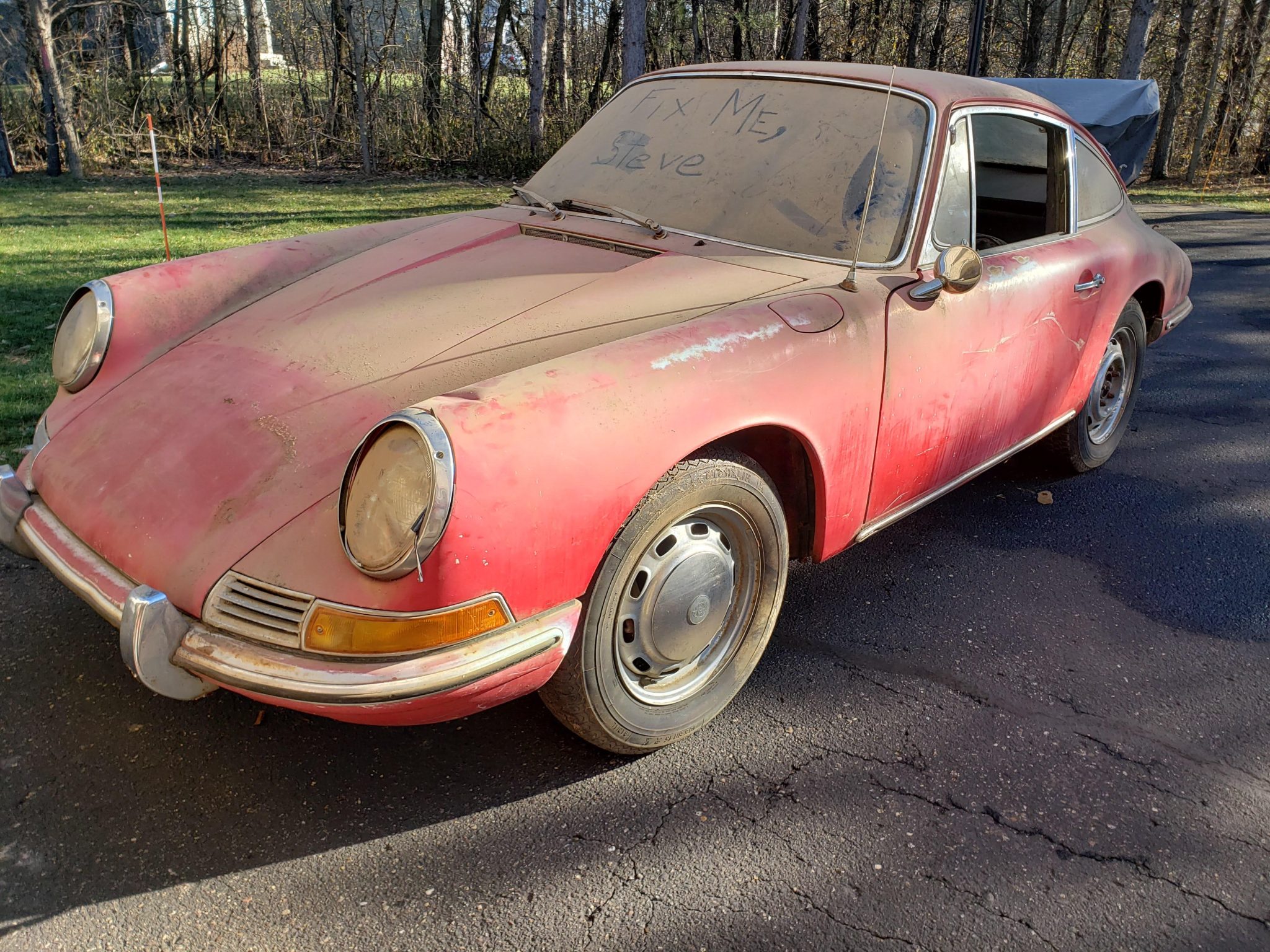 The 15″ vented steel wheels wear polished hubcaps with Porsche crests and older Michelin ZX tires. The car features an independent suspension with torsion bars as well as four-wheel disc brakes.