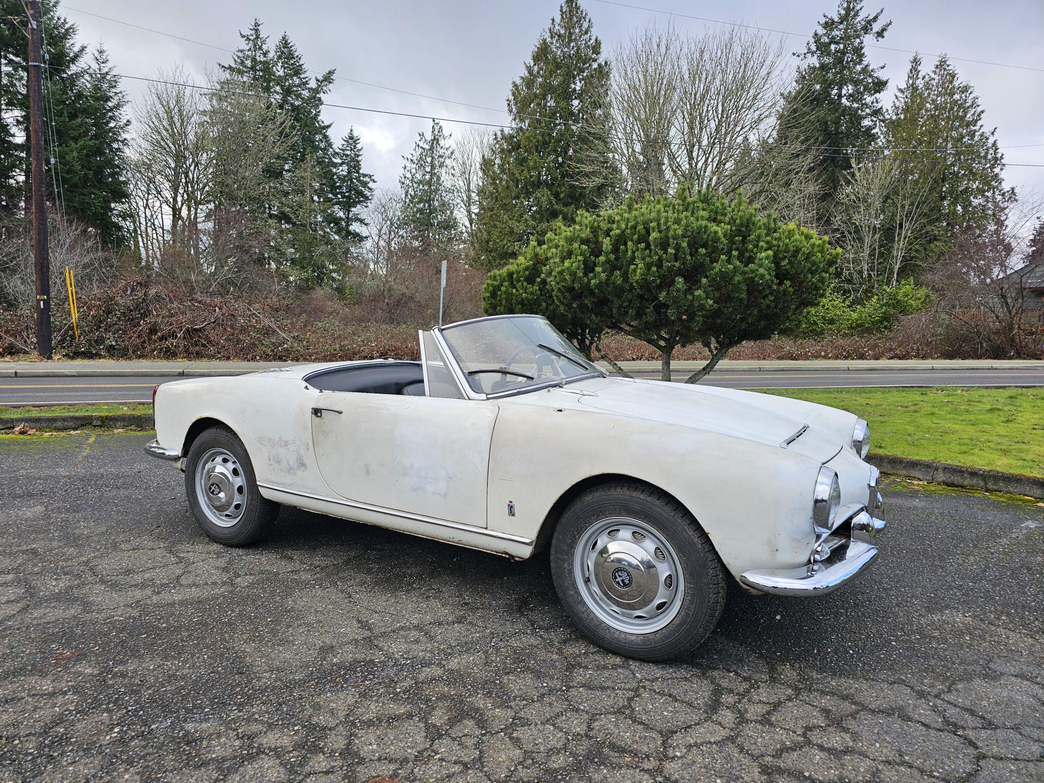 Silver-painted 15″ steel wheels wear polished hubcaps and are wrapped in older tires. The selling dealer notes that the front disc and rear drums brakes require service.