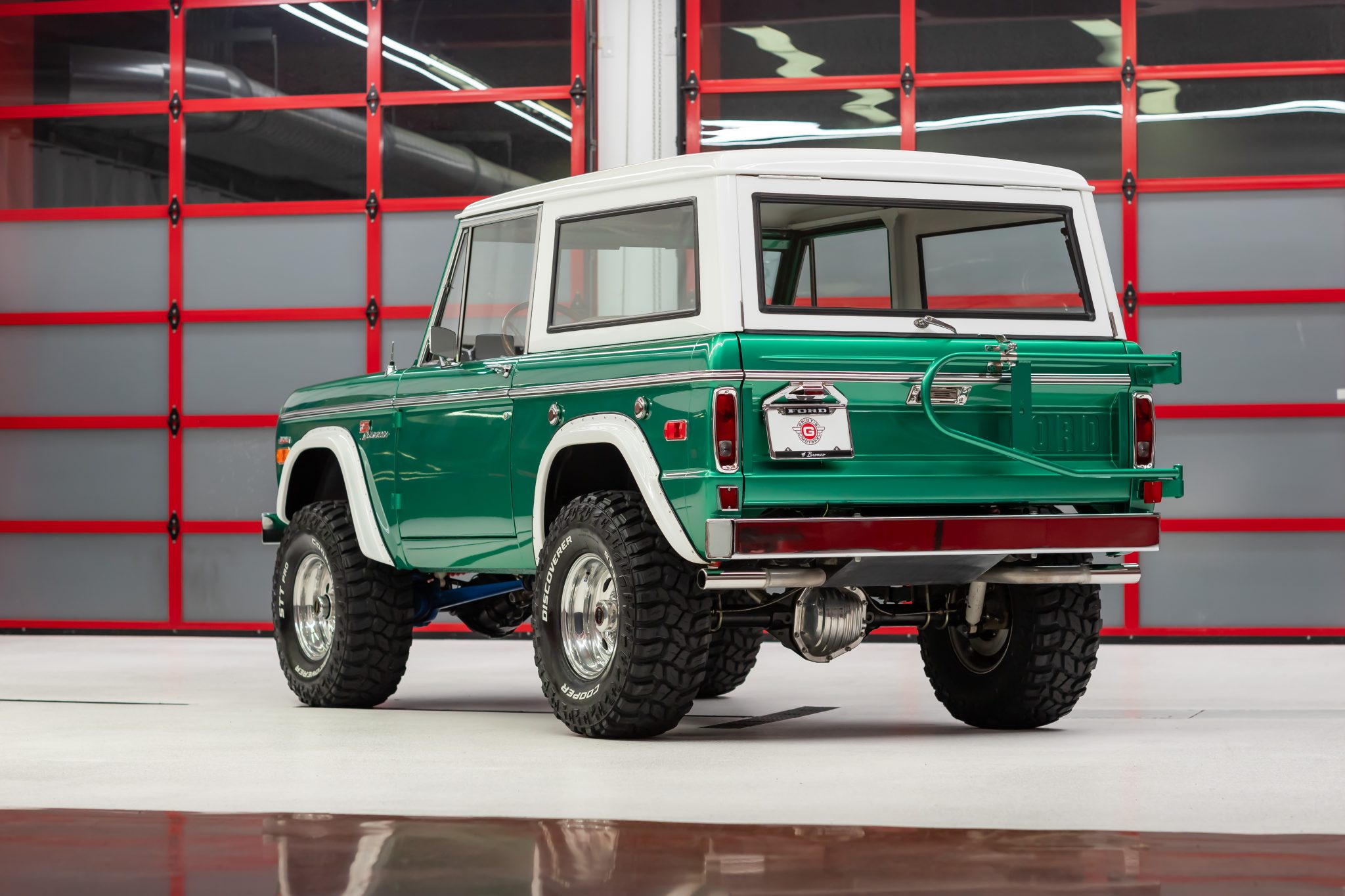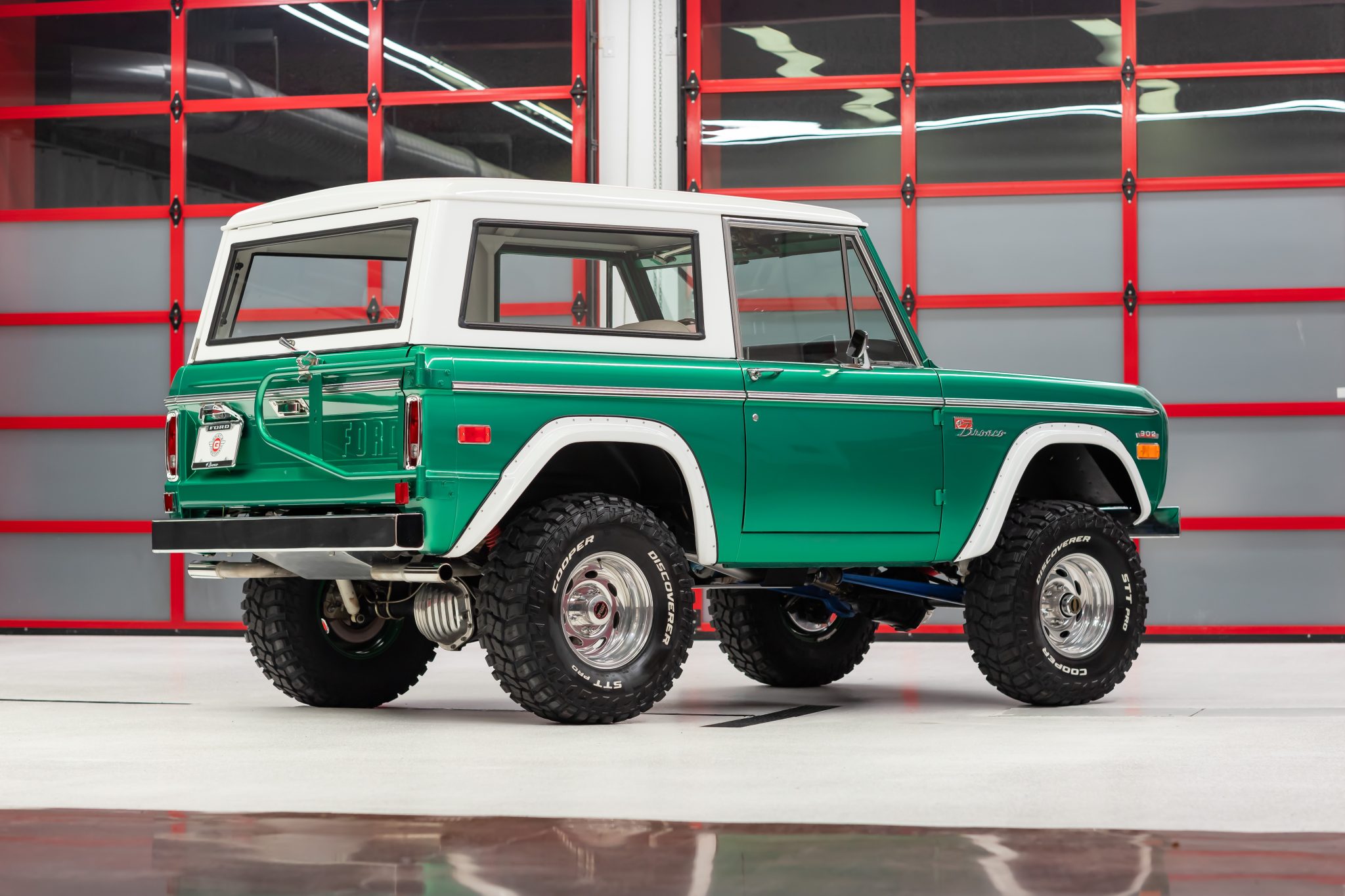 Weld Racing 15″ wheels are wrapped in 33X12.5″ Cooper Discoverer STT Pro tires that were installed in 2021. The suspension has been lifted, and disc brakes and manually locking front hubs are equipped. Service in 2019 involved replacing the brake master cylinder, booster, and proportioning valve kit, while the radius arm bushings were replaced in preparation for the sale. The selling dealer reports that the brakes stick and that there is a chirp from the power steering on hard lock. A service record shown in the gallery below indicates that the steering shaft needs to be rotated at the steering box.