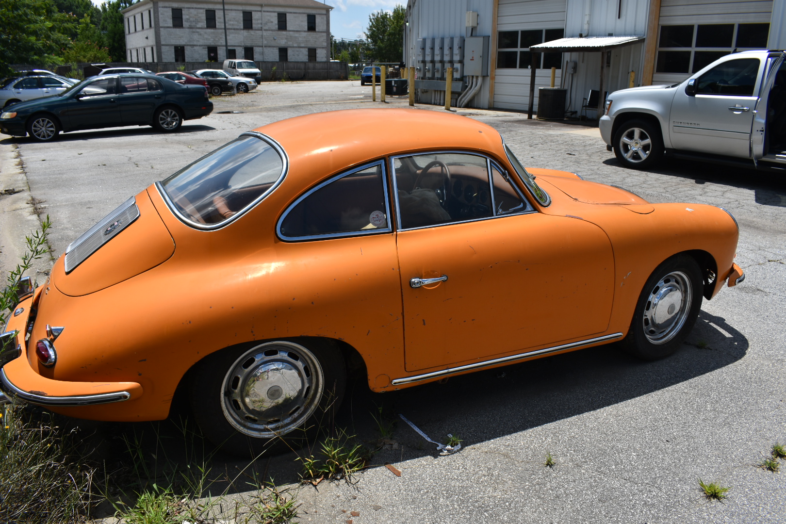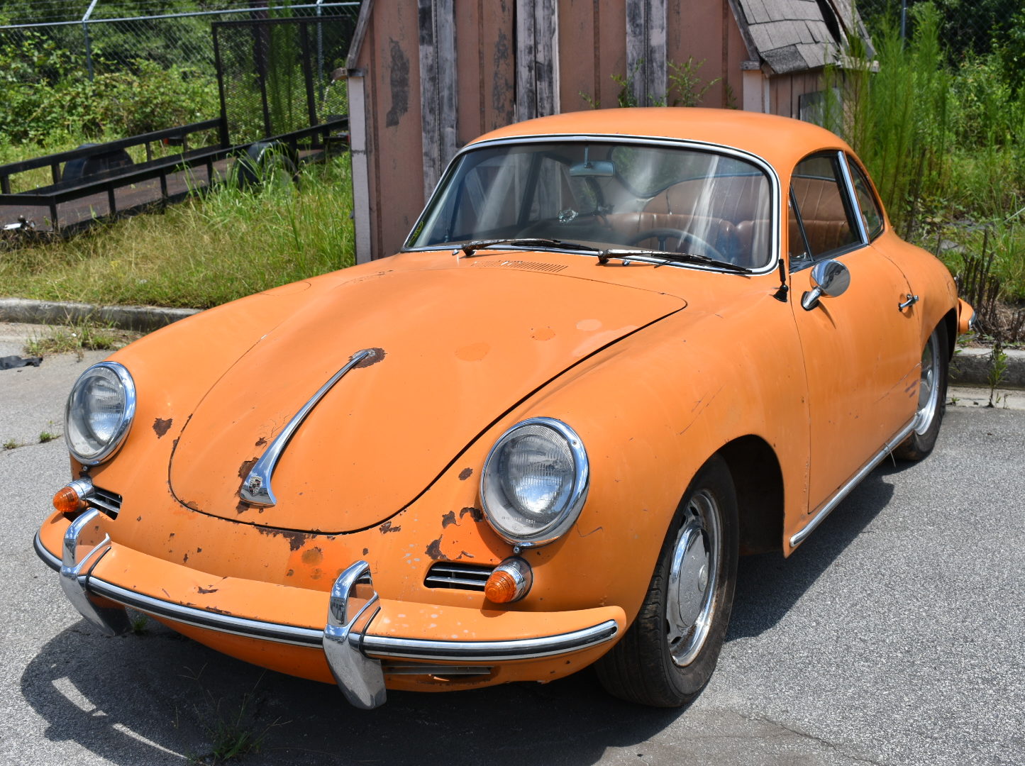 15” ventilated steel wheels are finished in chrome with matching wheel covers and each corner is shown in the gallery below. Older Yokohama Avid Touring tires are mounted. Disc brakes are equipped all-around and the braking system was refurbished by the seller and his father when the car was recommissioned in 2004. All glass is said to be present, though an area of damage is shown on the front windshield in the gallery below.