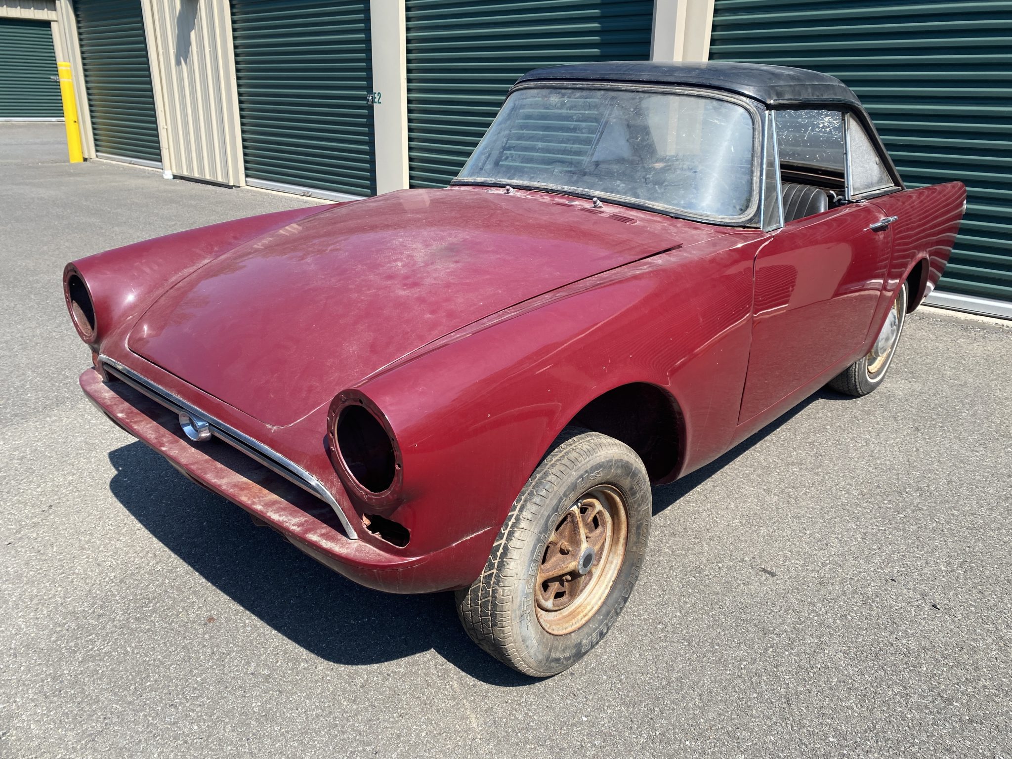 The car wears a mismatched set of 13″ steel wheels mounted with older tires. Aftermarket shocks have been added, and the front disc and rear drum brakes are retained.