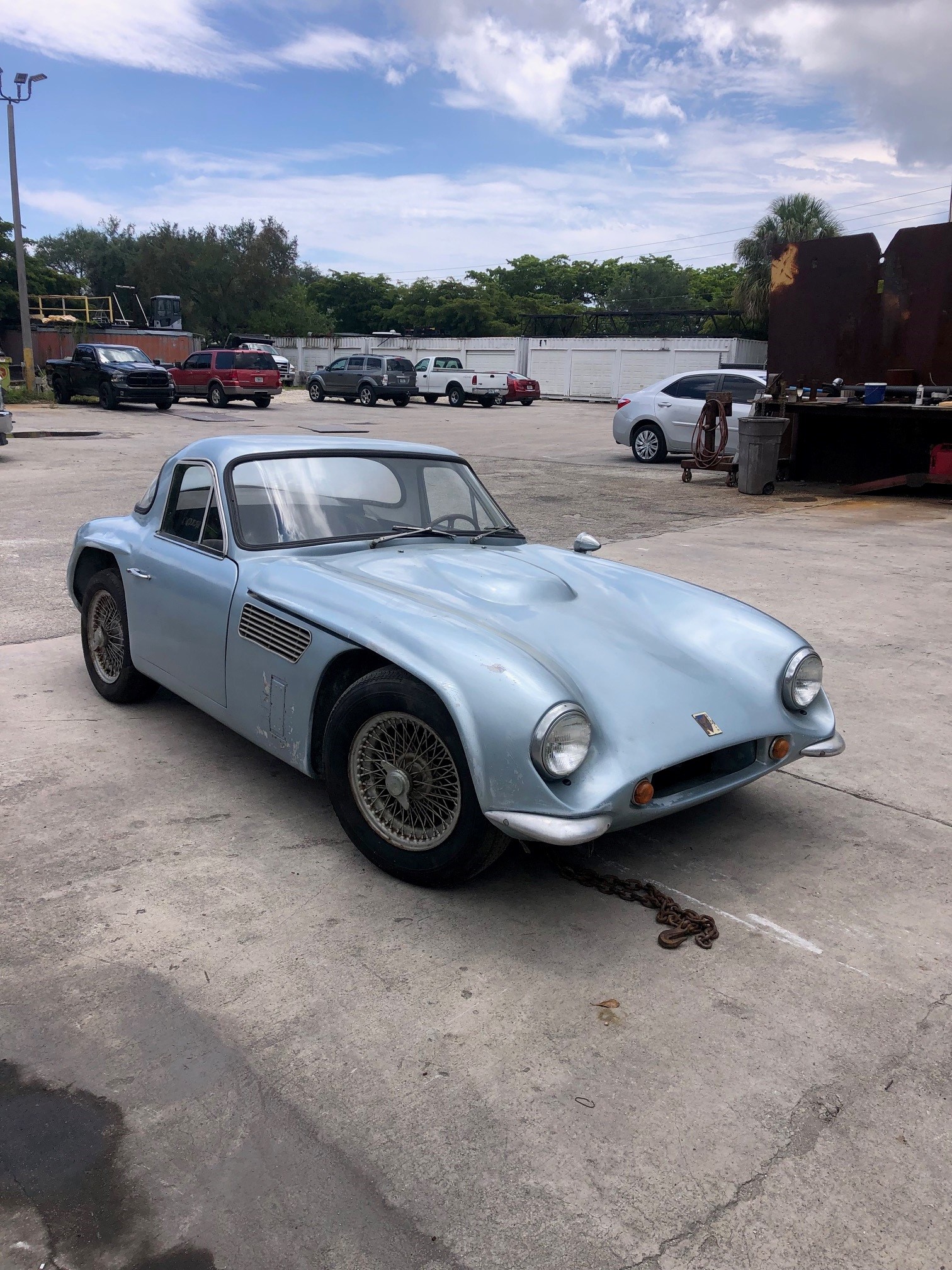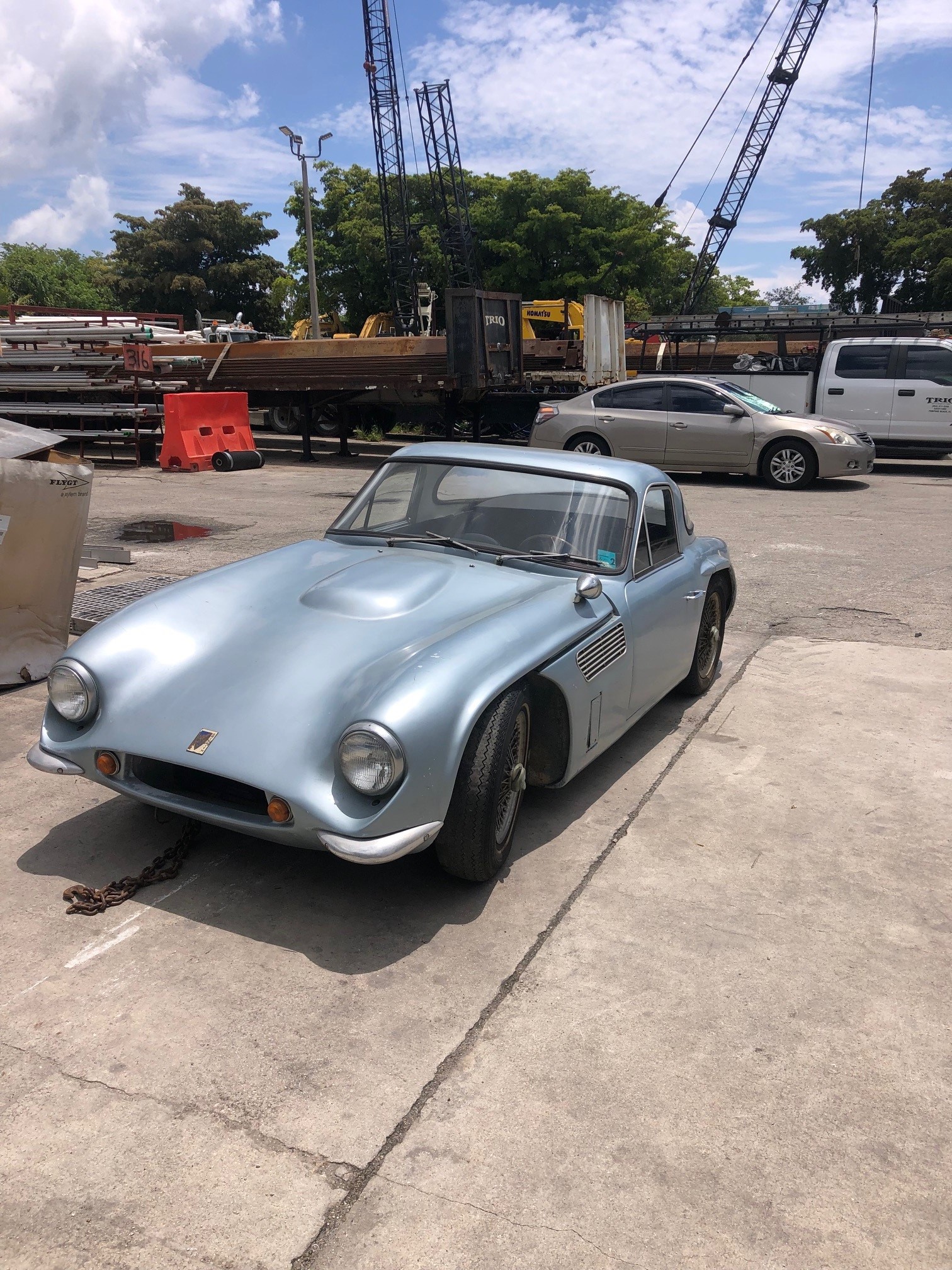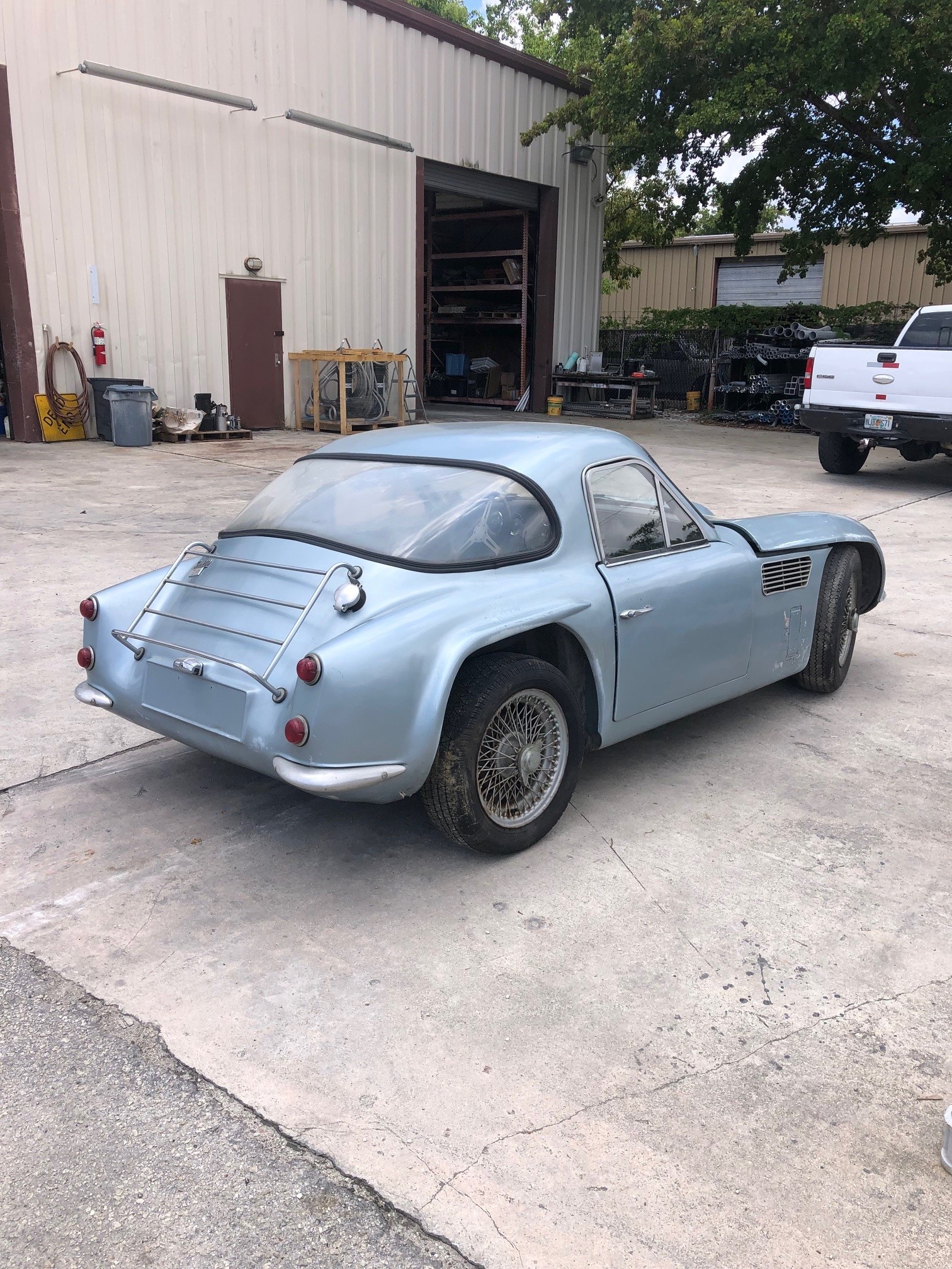 The 15″ painted wire wheels are secured with two-eared knock-off hubs, and they are mounted with Hercules radial tires that were reportedly installed in the 1970s. A spare wheel is stowed under a cover in the rear cargo area. The front brake calipers were overhauled during the seller’s ownership along with rebuilds of the master cylinders and rear wheel cylinders. The emergency brake cables are frozen, and corrosion is present on the wheels.