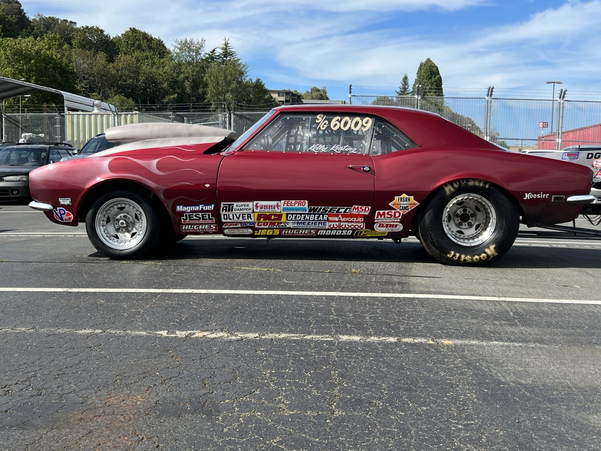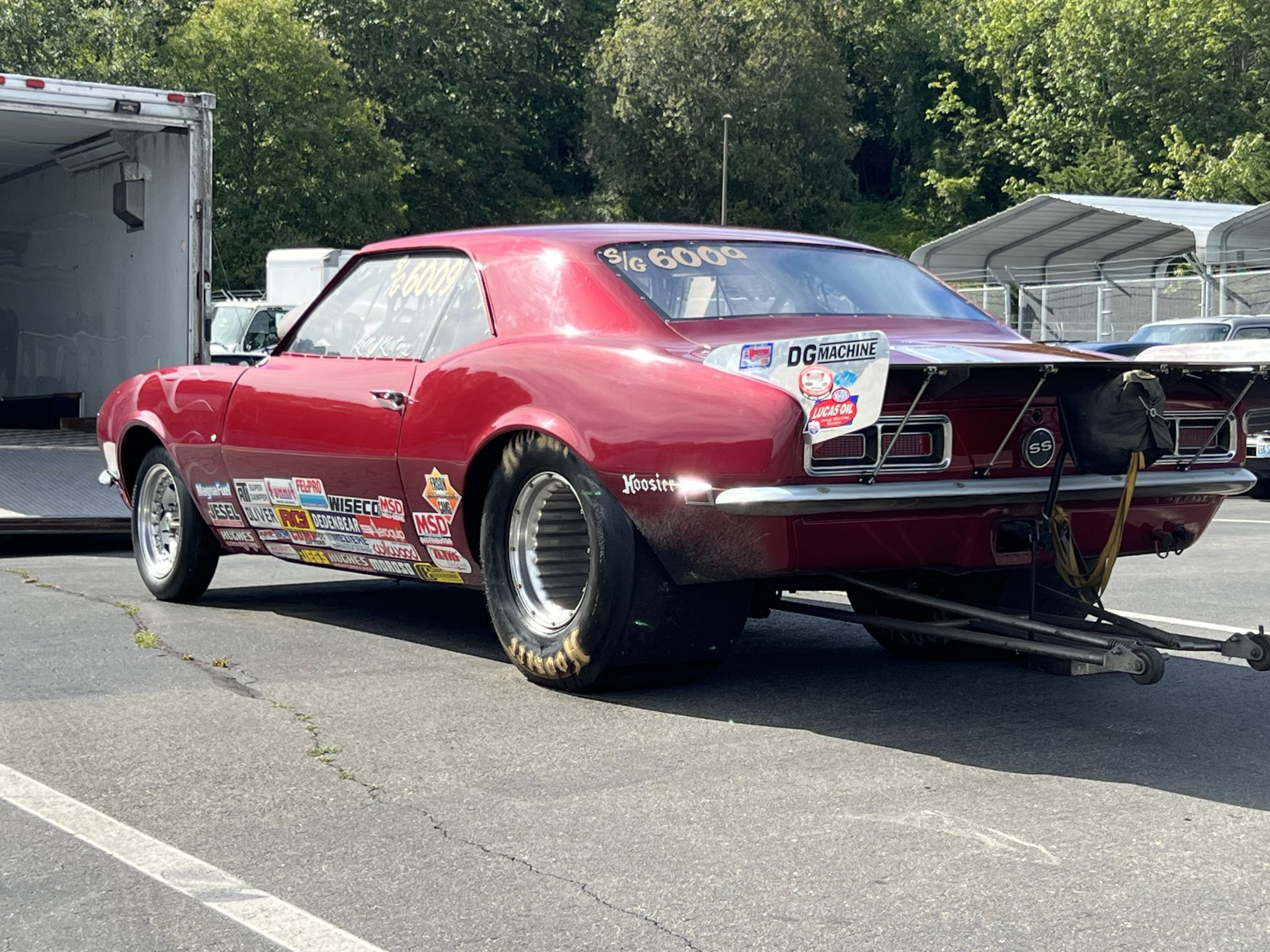 The car was used in competition for approximately a decade and a half before it was disassembled in 2018 for a rebuild. It retains S/G (Super Gas) markings on the windows.