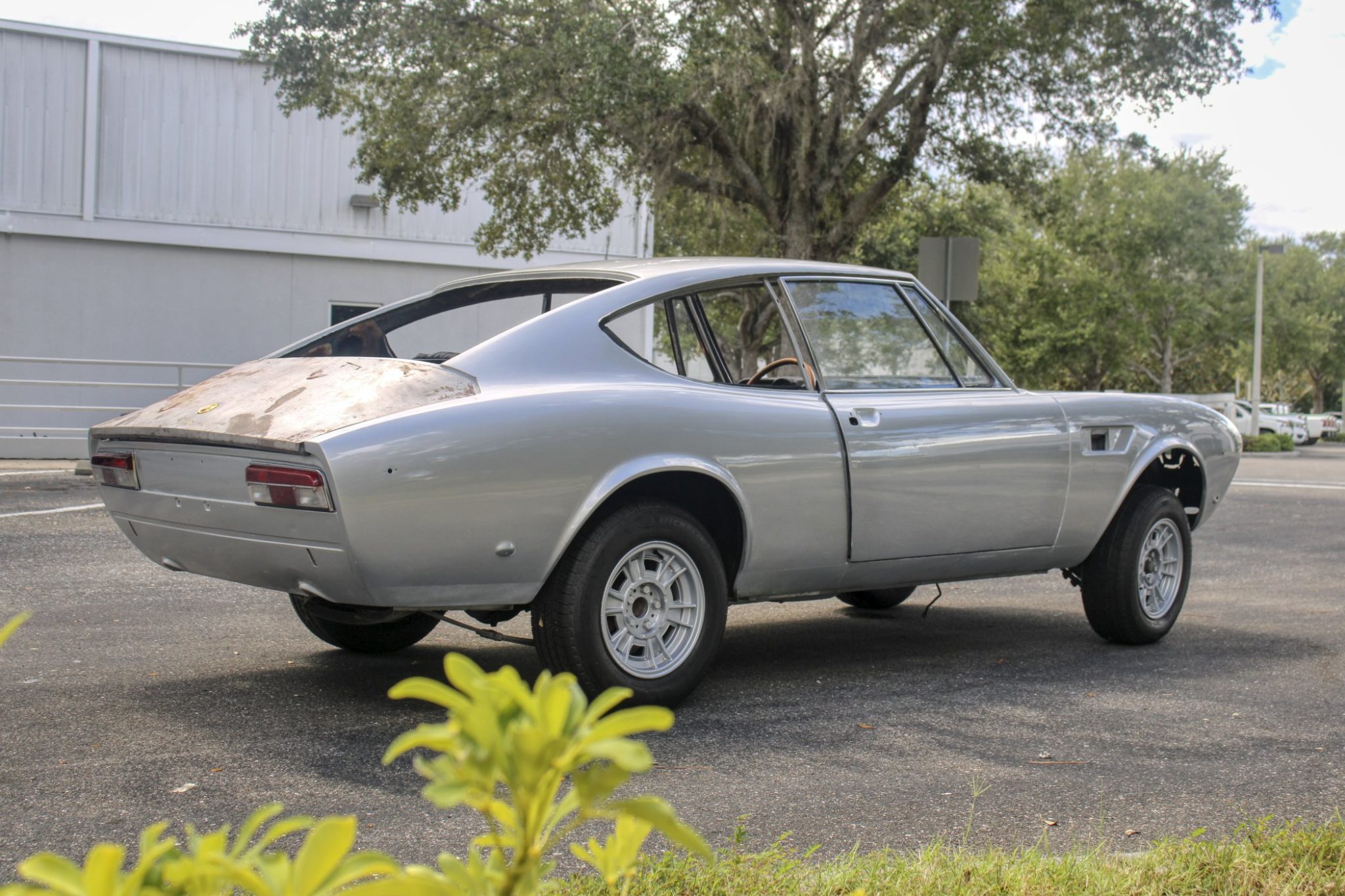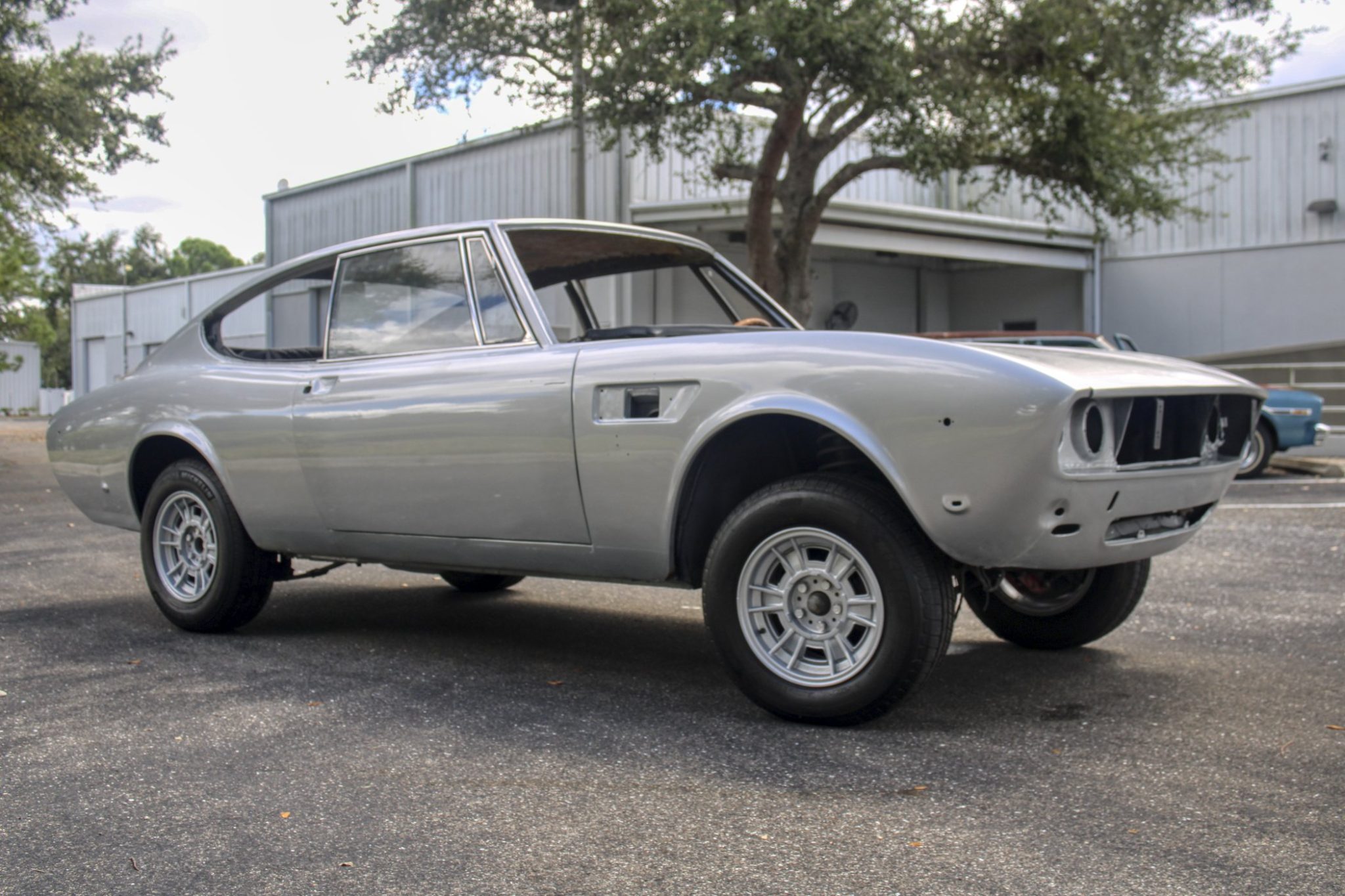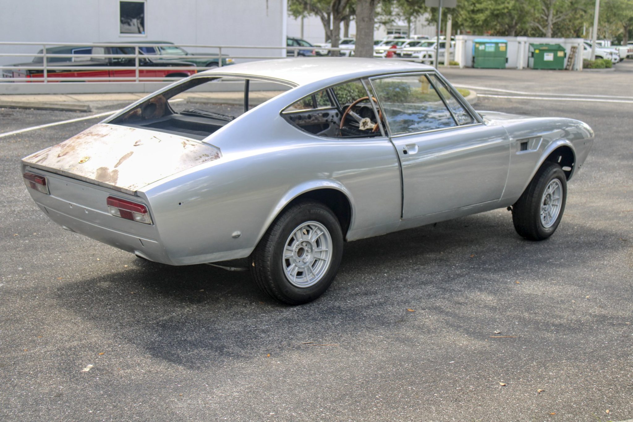 The 14″ Cromodora light alloy wheels are mounted with 195/70 Michelin tires showing 2017 date codes. The Dino coupe featured a 100.4″ wheelbase, nearly 11″ longer than that of its Pininfarina-designed convertible counterpart.