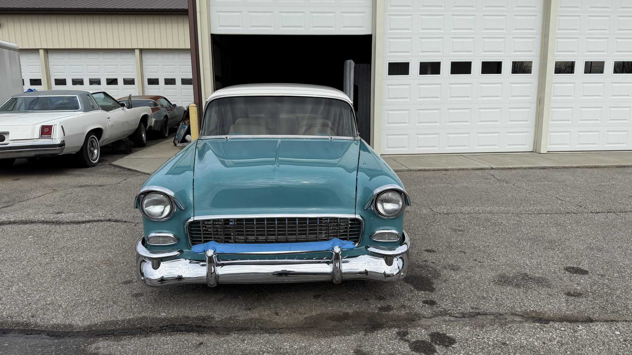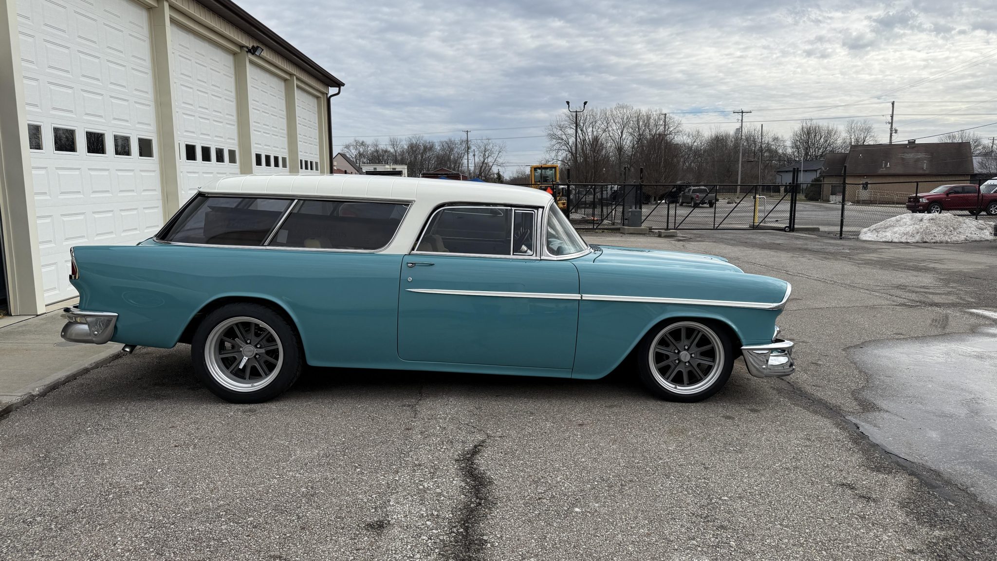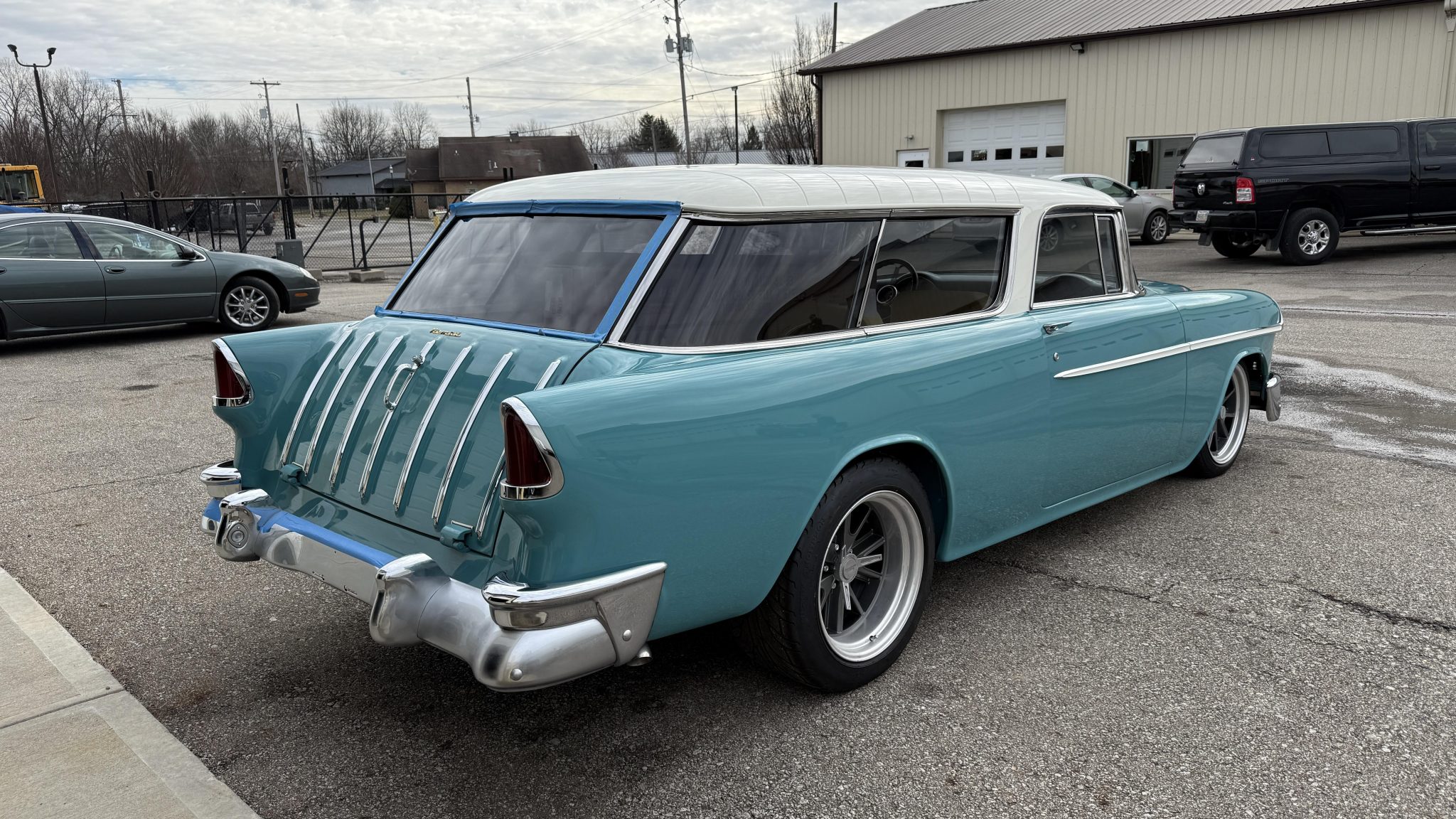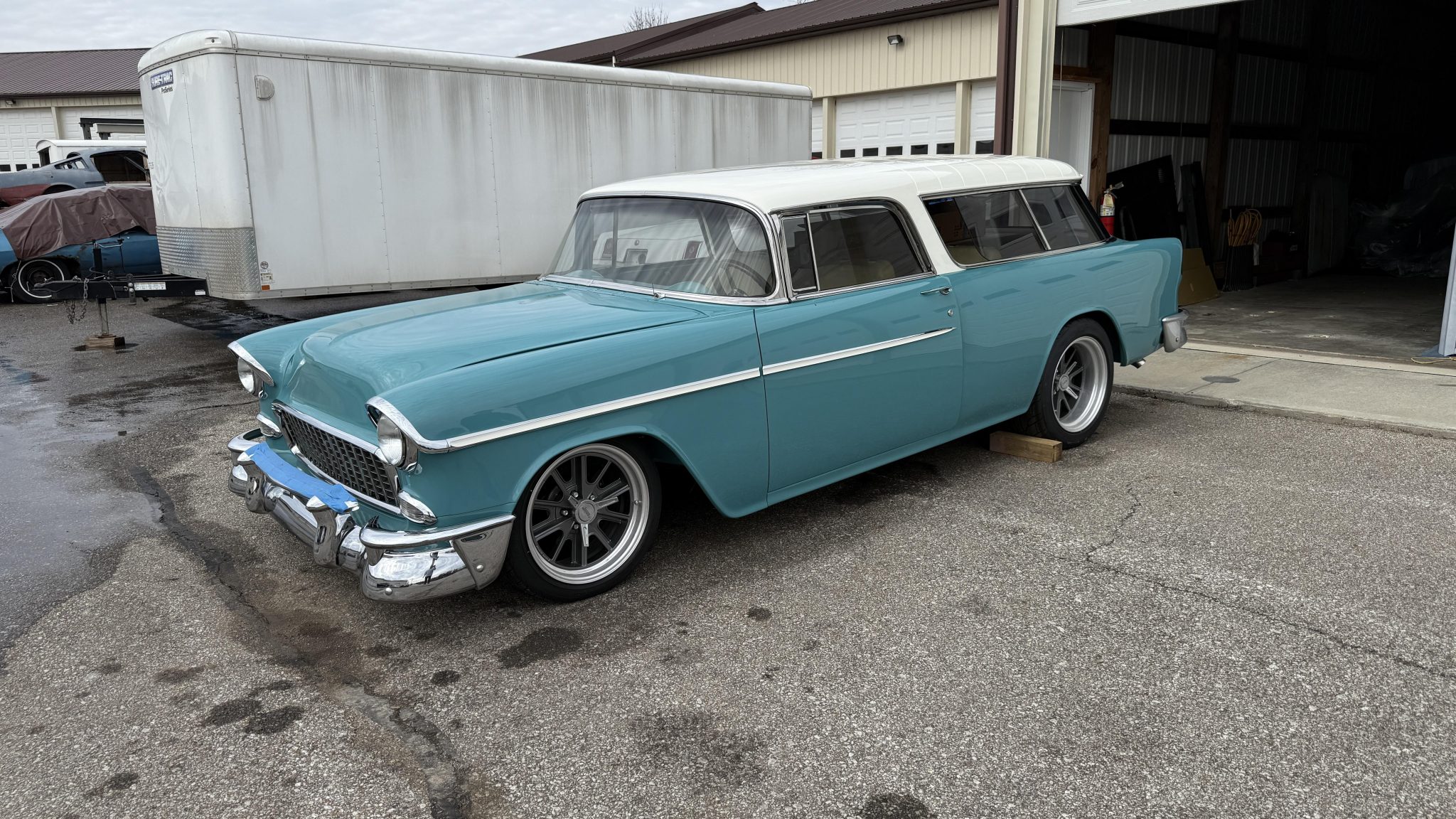 American Racing 18″ Shelby Cobra wheels are mounted with Mickey Thompson tires. Suspension includes coilovers, tubular control arms, and a four-link rear setup. Wilwood calipers are fitted at all four corners, and the car is equipped with rack-and-pinion steering.