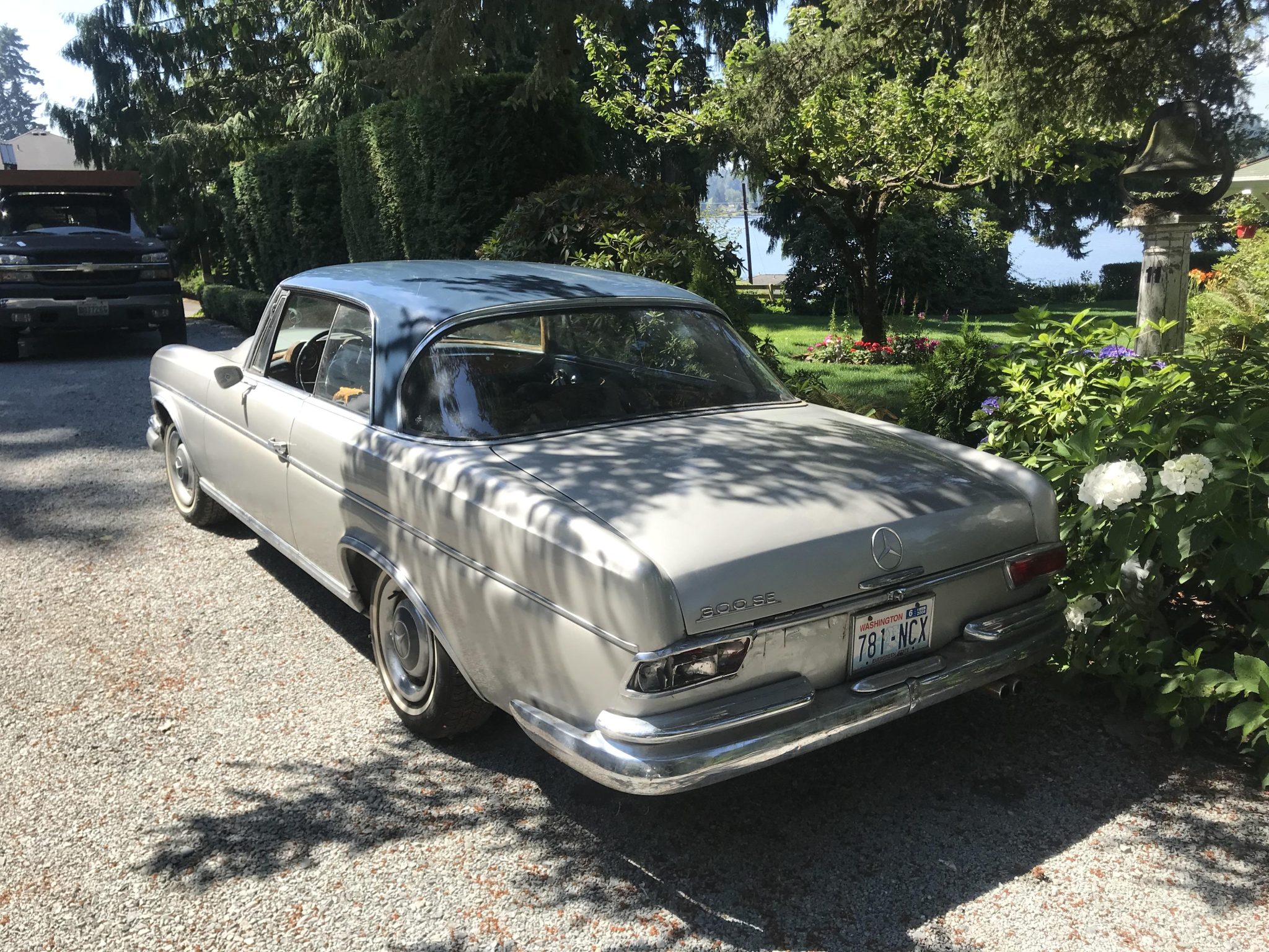 Steel 14″ wheels wear painted hubcaps accented with chrome trim rings, and they are mounted with thin whitewall tires. Braking is handled by vacuum-boosted hydraulic discs at each corner, and the calipers, rotors, and pads were replaced in February 2022 along with the shocks.