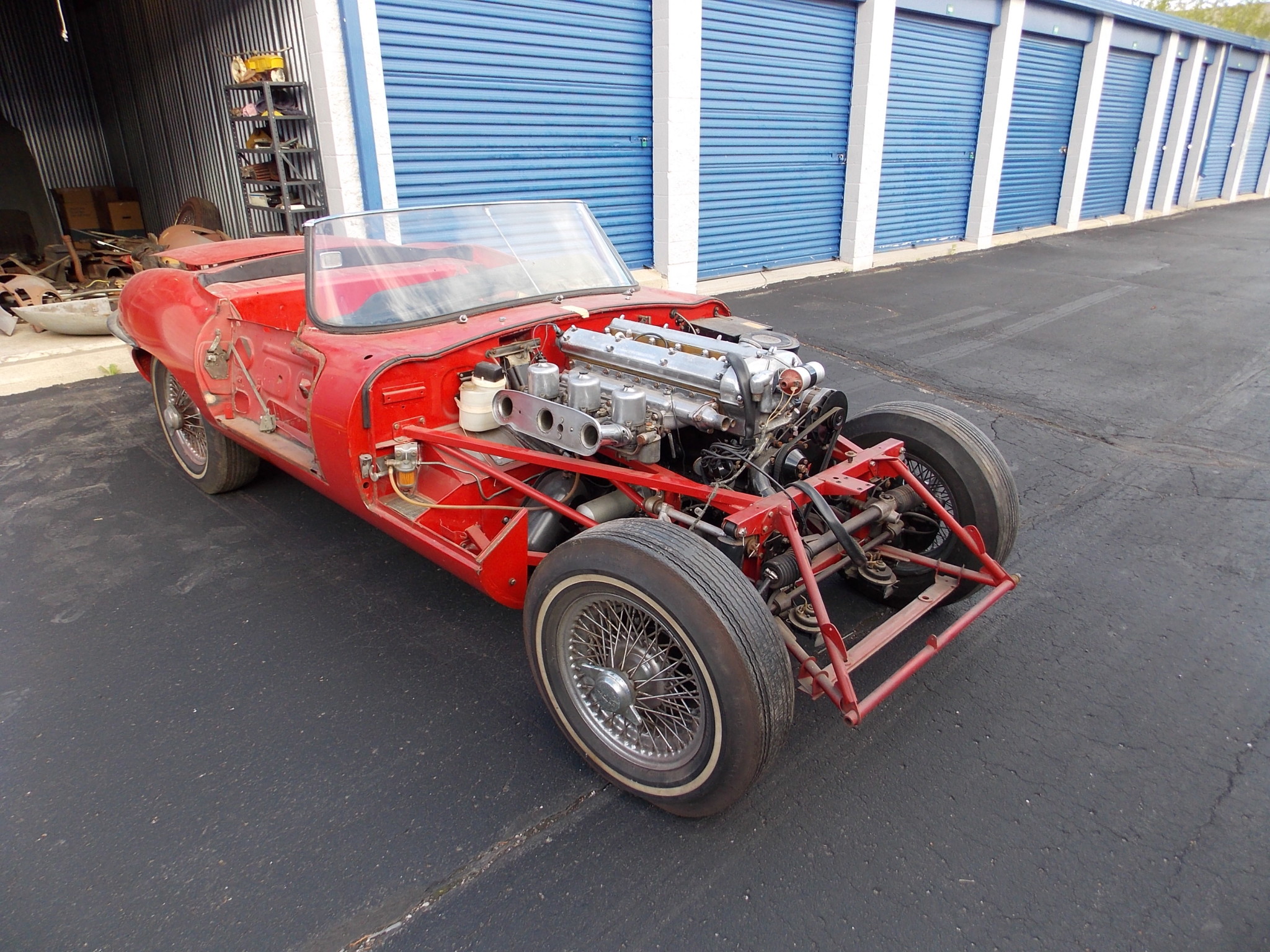 Knock-off wire wheels are shod in older whitewall tires. Pitting on the chrome can be viewed in the gallery, and no top is currently fitted, although the assembly, frame, and canvas are included.