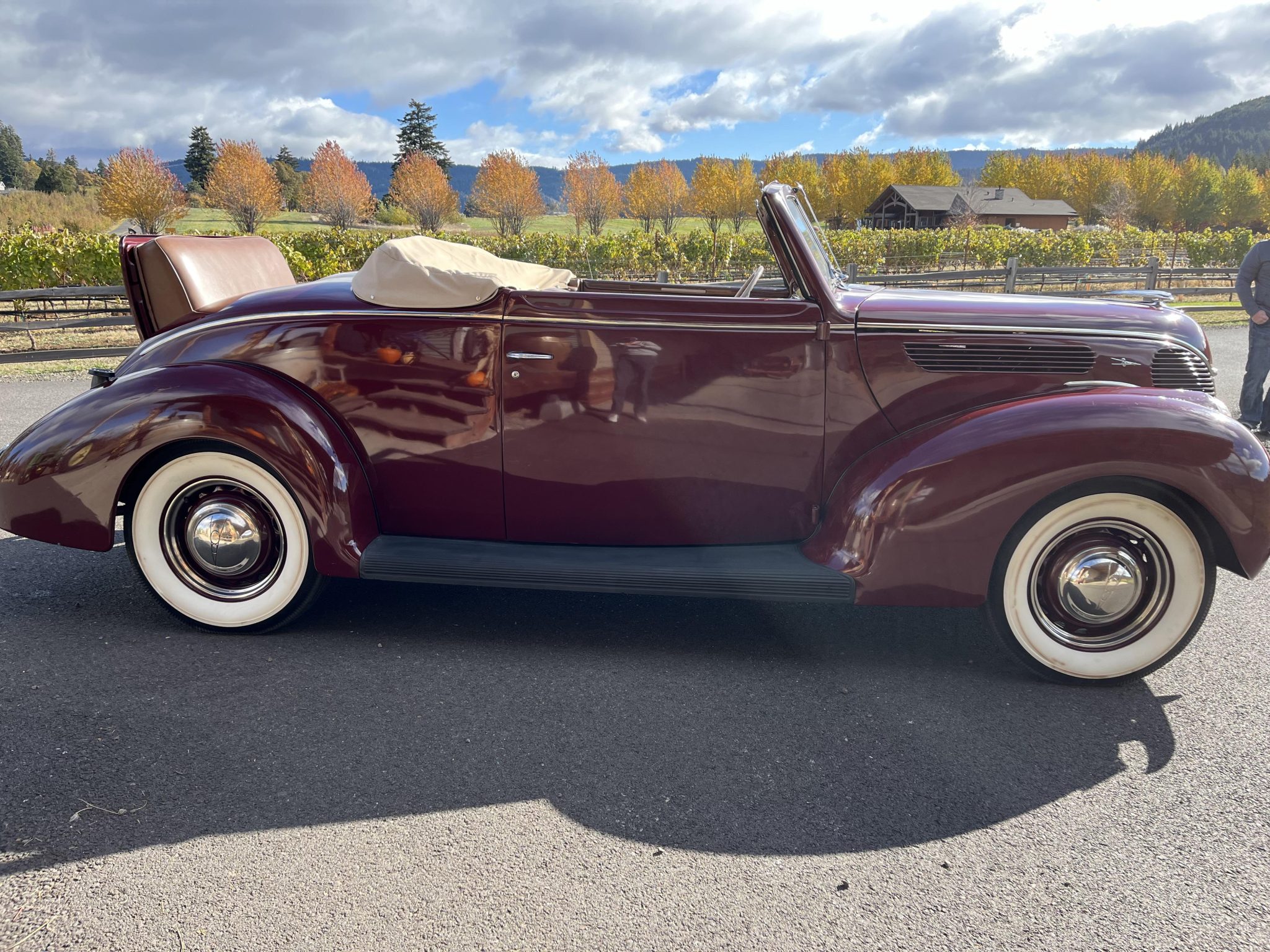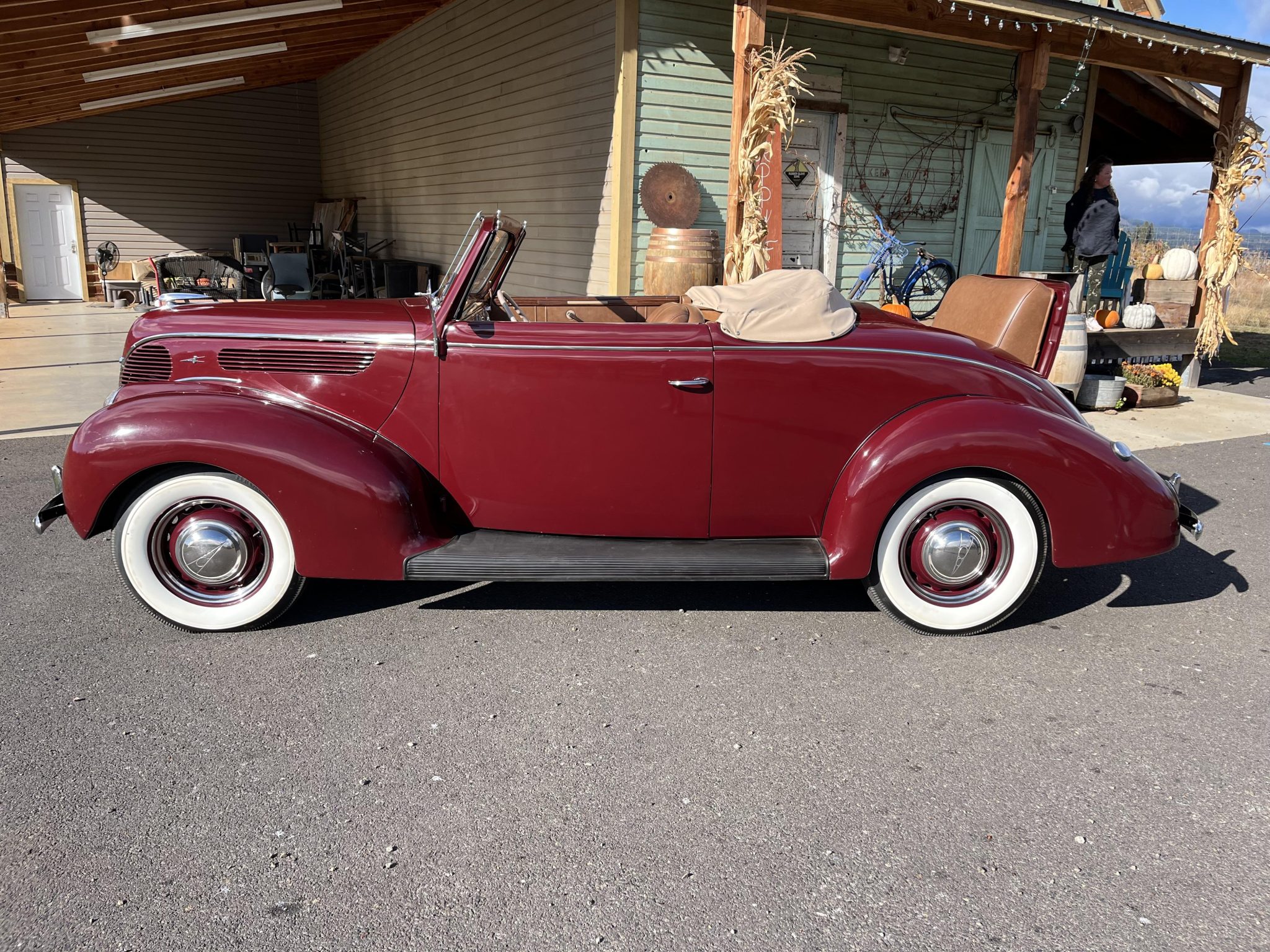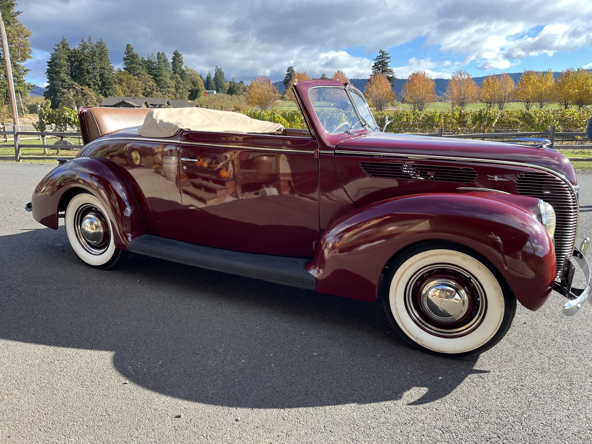 The body-color artillery-style wheels are mounted with 6.00–16 BFGoodrich Silvertown wide-whitewall tires are said to have been installed in preparation for the sale. The Model 81A rode on a 112″ wheelbase and featured front and transverse leaf springs. Stopping power was originally provided by four-wheel mechanical drum brakes, this Model 81A has been retrofitted with ‘39 style hydraulic brakes