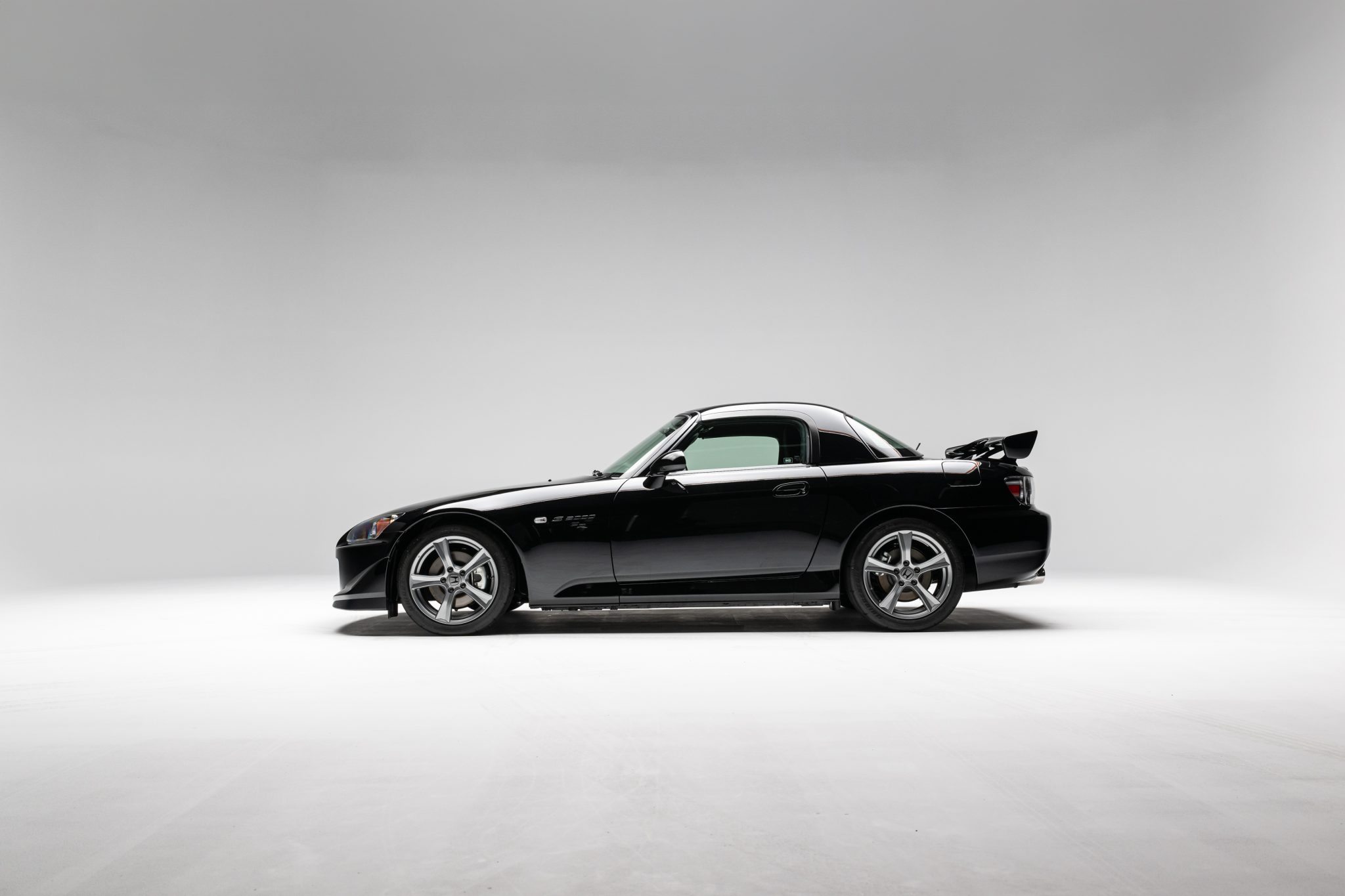 Factory 17″ five-spoke alloy wheels are mounted with 215/45 front and 255/40 rear Bridgestone Potenza RE-070R tires. The CR model features higher-rate springs, stiffer sway bars, and a quicker steering ratio compared to the standard AP2 S2000. Braking is handled by four-wheel discs with ABS, and the brake fluid was flushed in preparation for the sale.