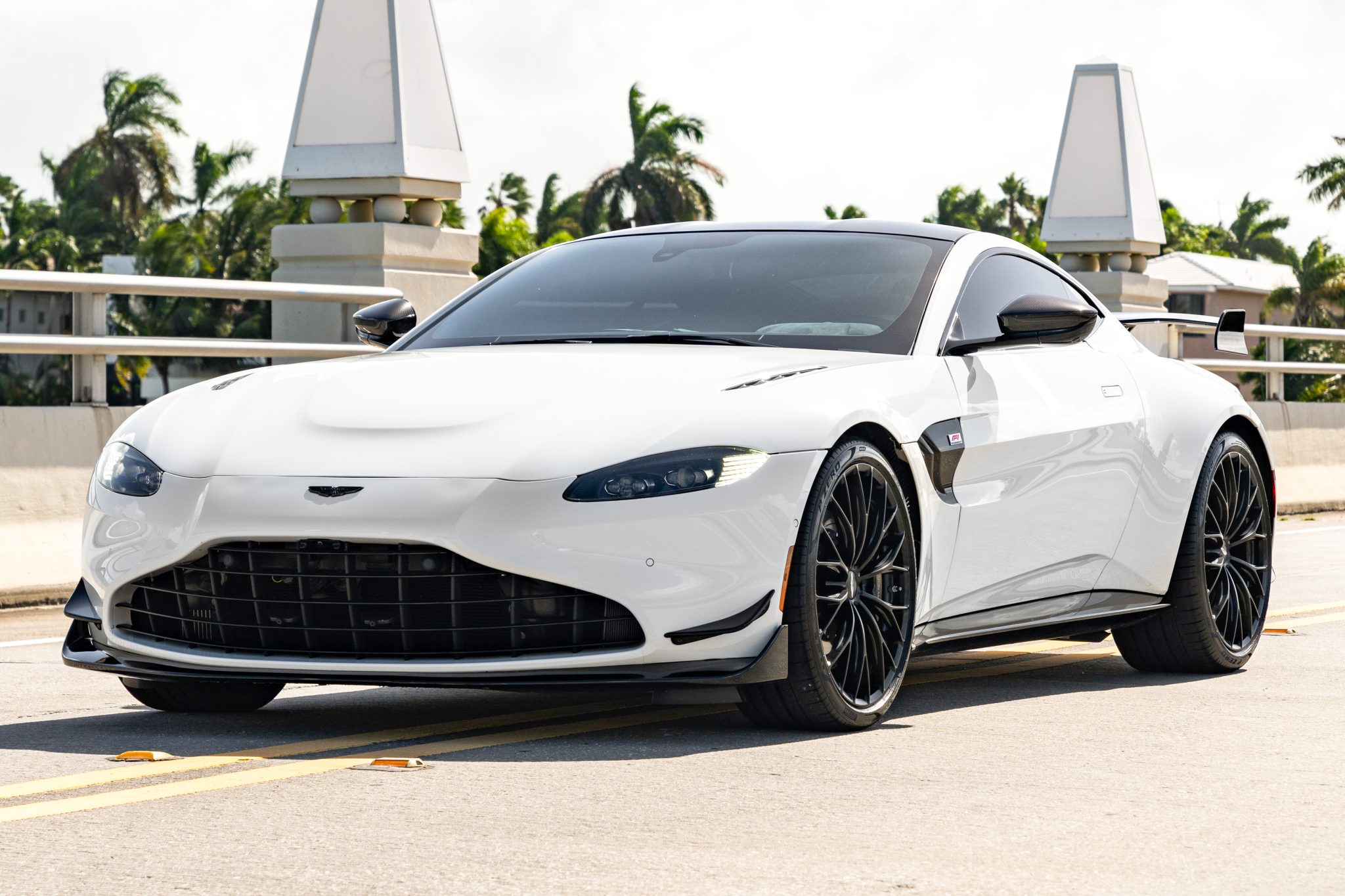 Pirelli P Zero tires sized 255/35 up front and 295/30 out back are wrapped around 21″ wheels that were unique to the F1 Edition, which also specified retuned dampers and an increased rear spring rate for the car’s Skyhook Adaptive Damping System. Stopping power is provided by black Aston Martin-branded six- and four-piston calipers mounted over slotted rotors at all four corners.