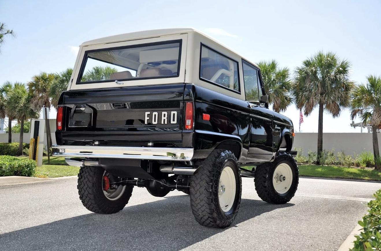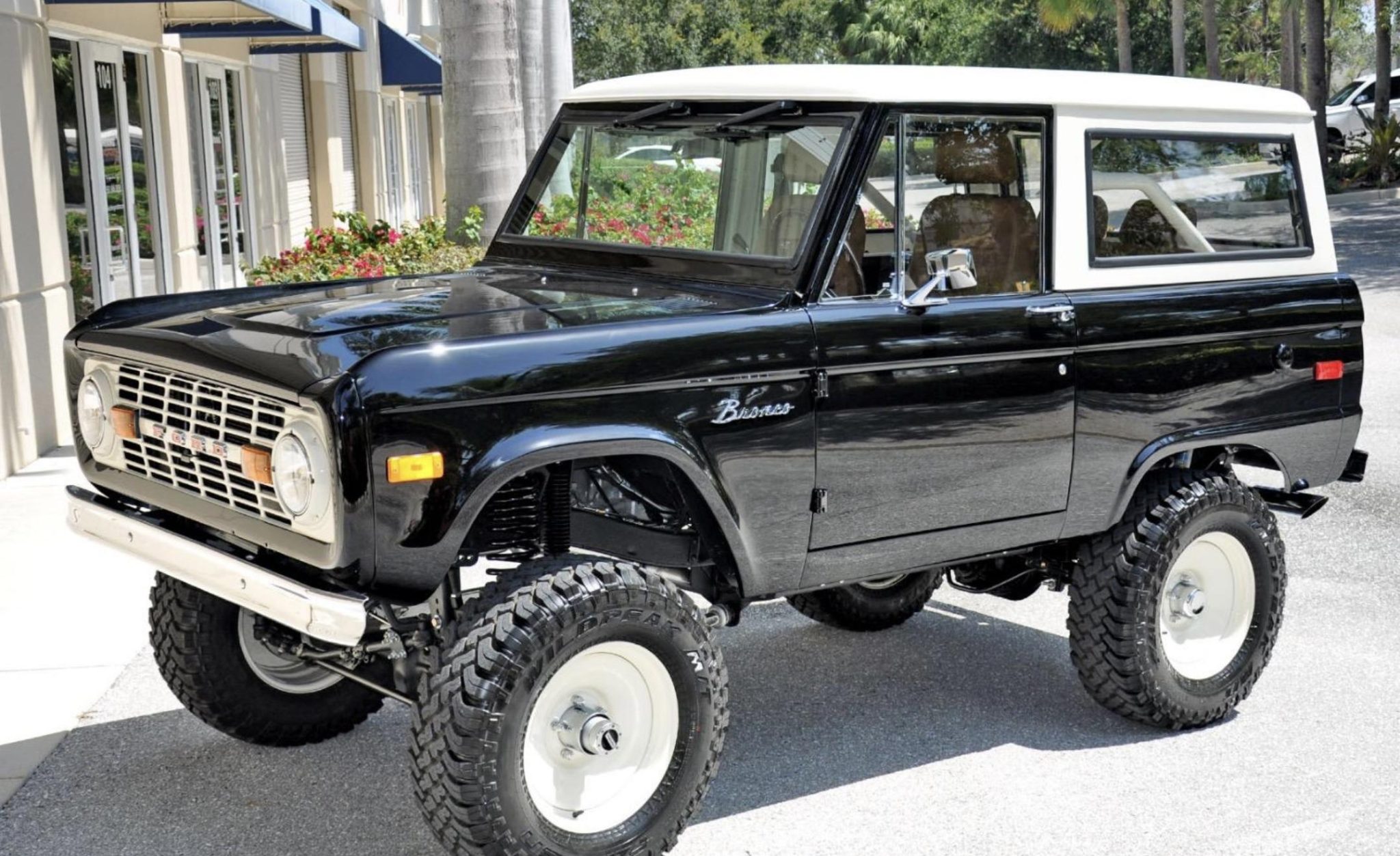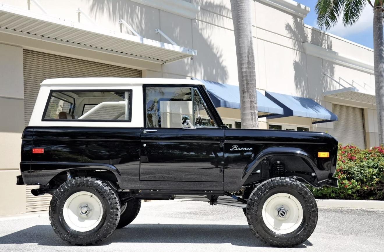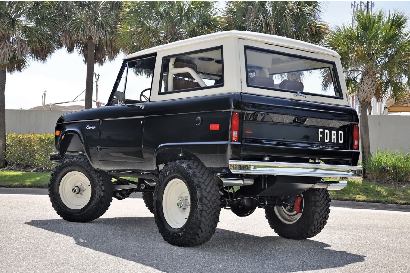 White-finished 17″ steel wheels are wrapped in 285/70 Falken Wildpeak M/T tires. The truck is equipped with manually locking front hubs and power steering, and stopping power is provided by Wilwood four-wheel disc brakes with Hydroboost. The suspension and body have been lifted, and Bilstein shocks and Hellwig sway bars have been installed.