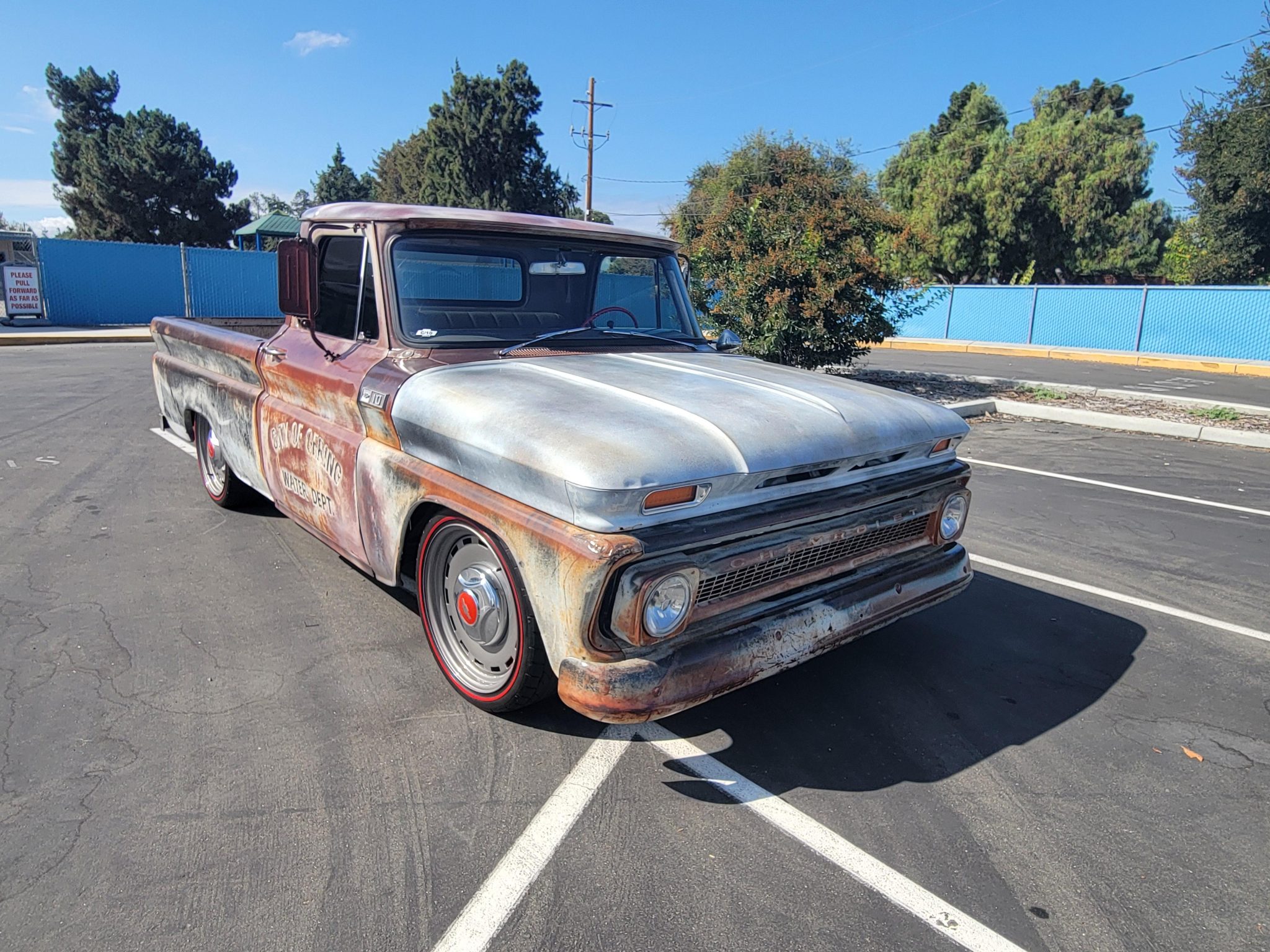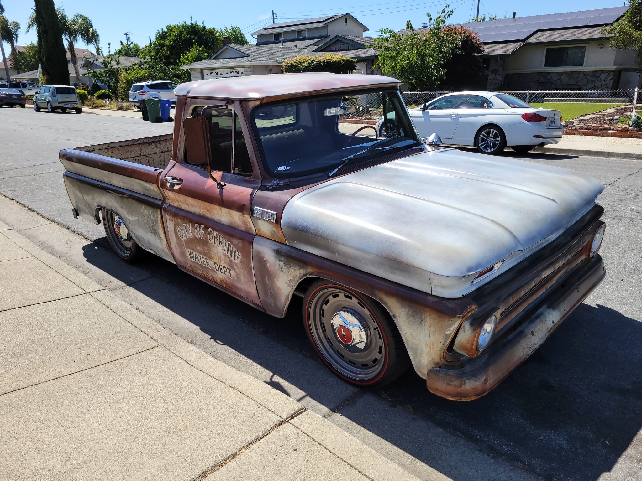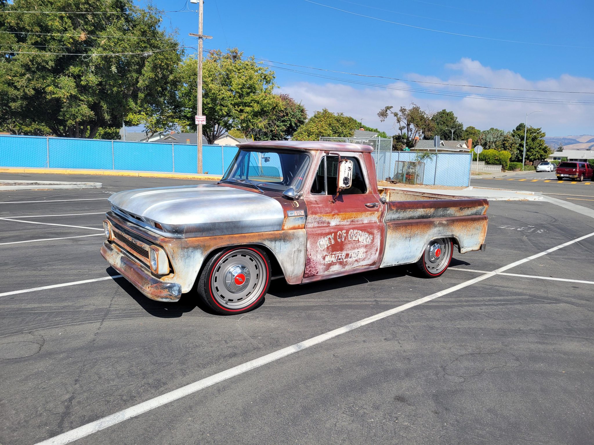 The 20″ Detroit Steel Delray wheels wear baby moon hubcaps and are mounted with Diamond Black Nitto G2 RedLine tires measuring 245/40. The front end was reportedly sourced from a 1971 C10 and incorporates disc brakes, power steering, and Ridetech coilovers, control arms, tie rod ends, and pittman arms. The rear end features a KP Components four-link setup with a Watts link along with Ridetech coilovers and drum brakes.