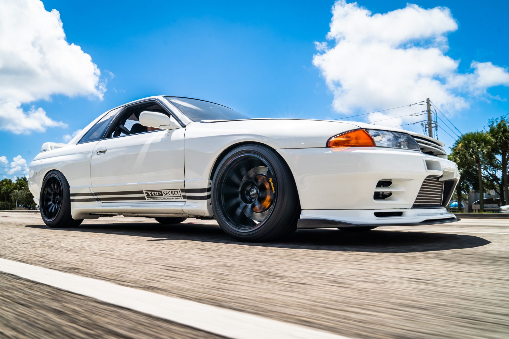 The 18″ OZ Racing wheels are mounted with Bridgestone Potenza tires. The car was factory equipped with a four-wheel independent multilink suspension as well as Super HICAS four-wheel steering. An AP Racing big brake kit has been installed along with HKS suspension components and sway bars.