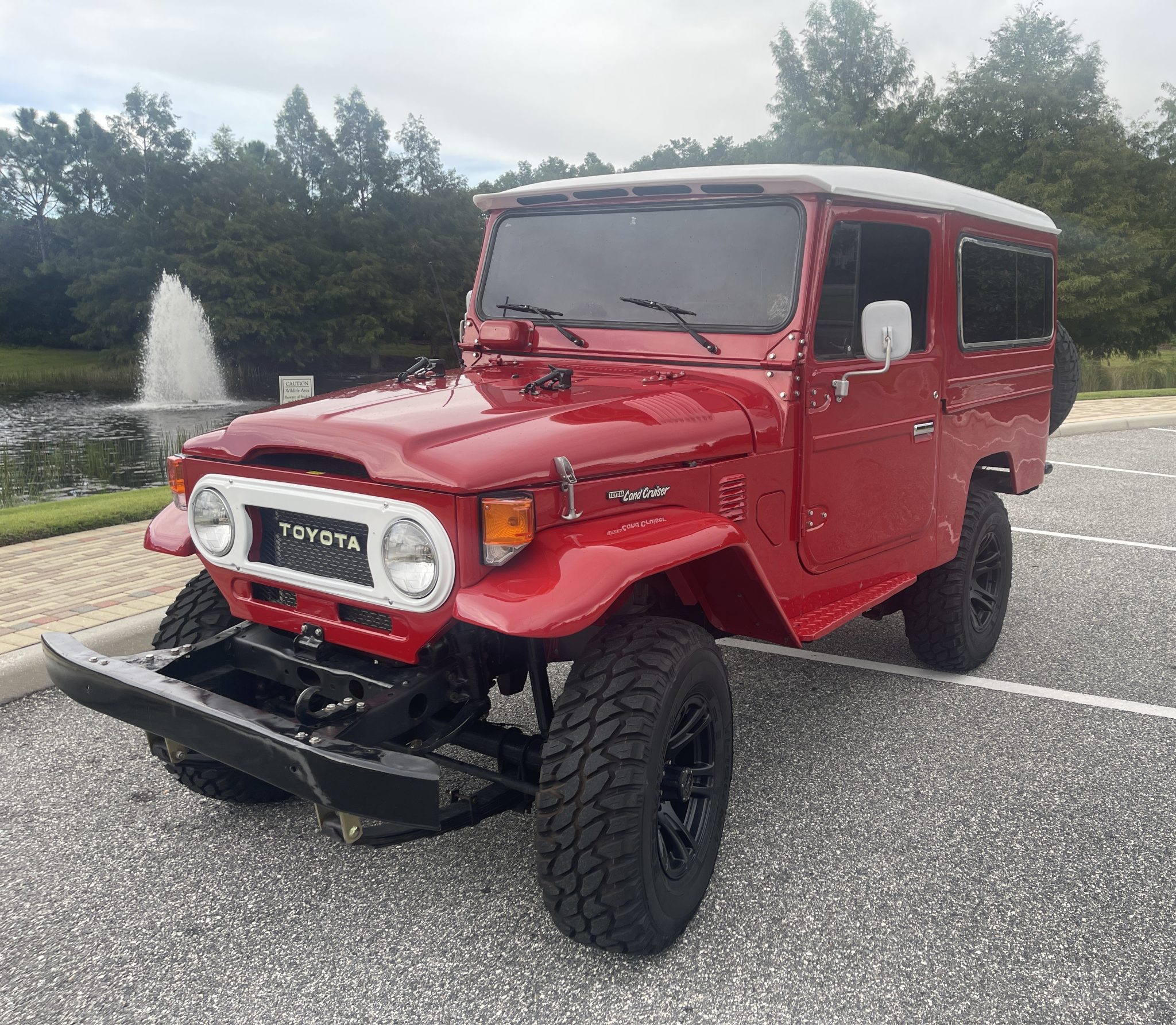 Black-finished 16″ aftermarket wheels are mounted with Ecovision VI-186 MT tires. The truck is equipped with locking front hubs and power-assisted four-wheel drum brakes. The seller states that the truck has been fitted with a power-steering system sourced from an 80-series Land Cruiser.