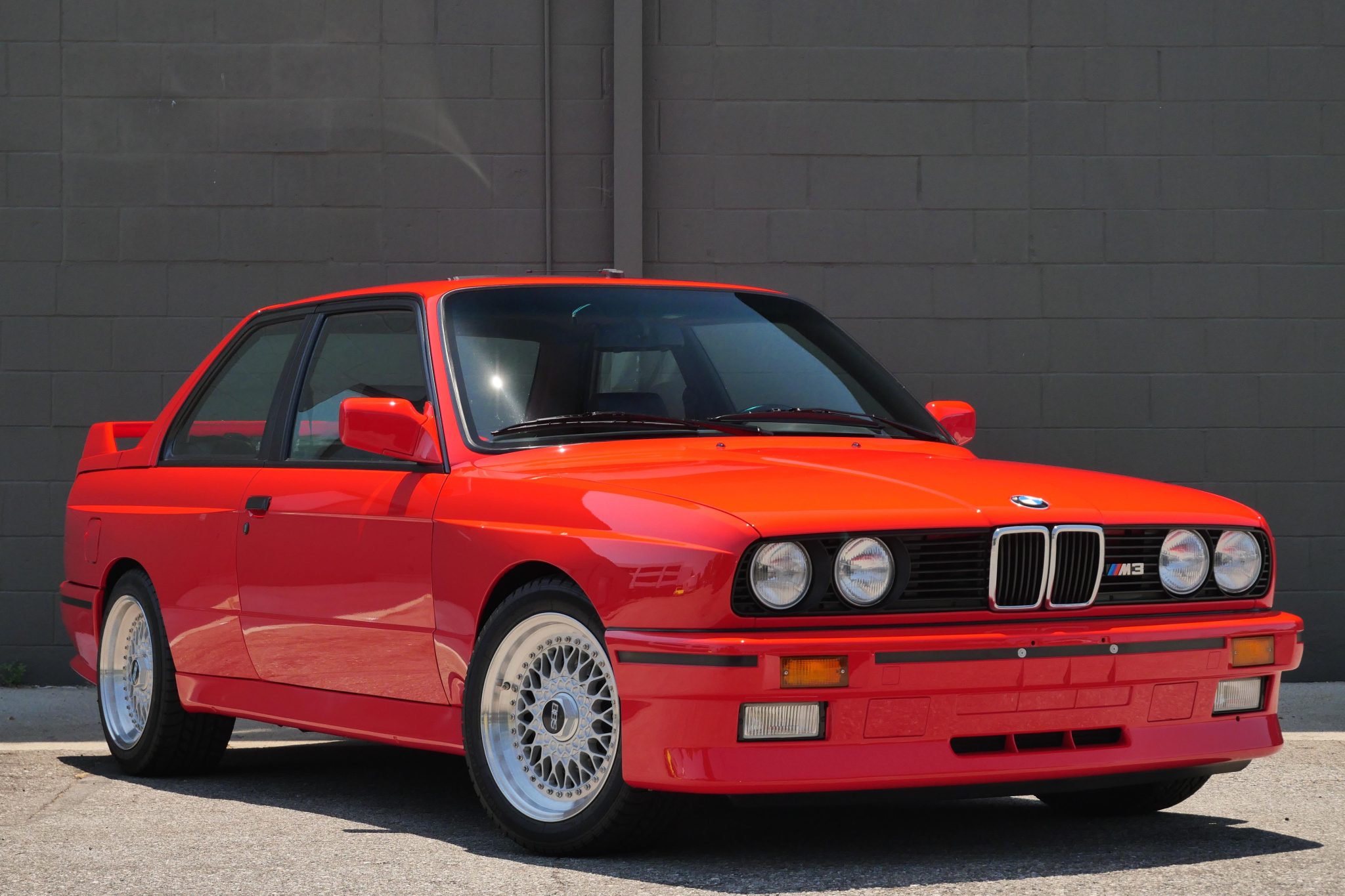 The 16″ multi-piece BBS wheels are mounted with Pirelli tires. The MacPherson strut/semi-trailing arm suspension was revised for the M3 with a thicker rear anti-roll bar as well as shorter and stiffer springs.