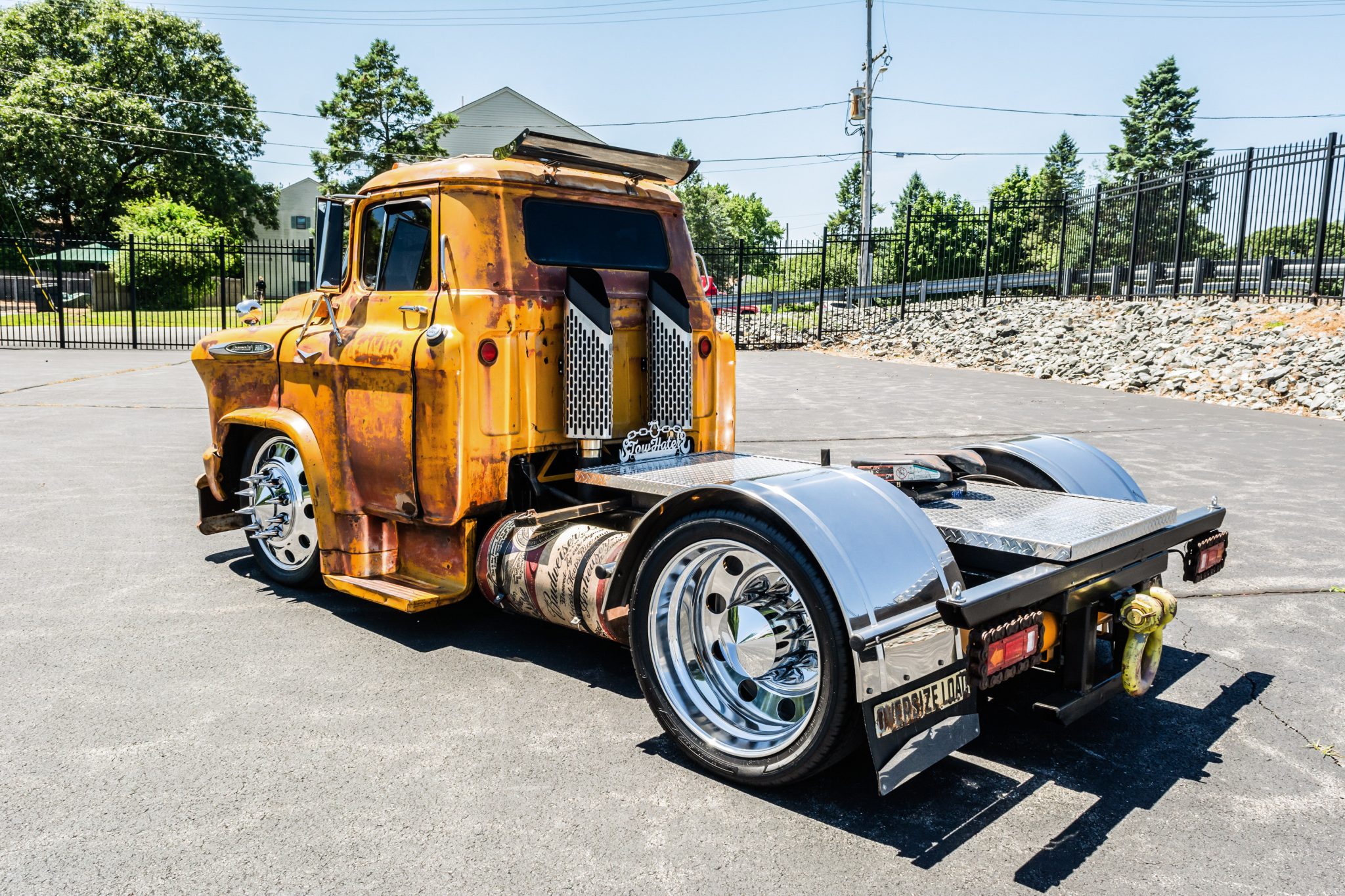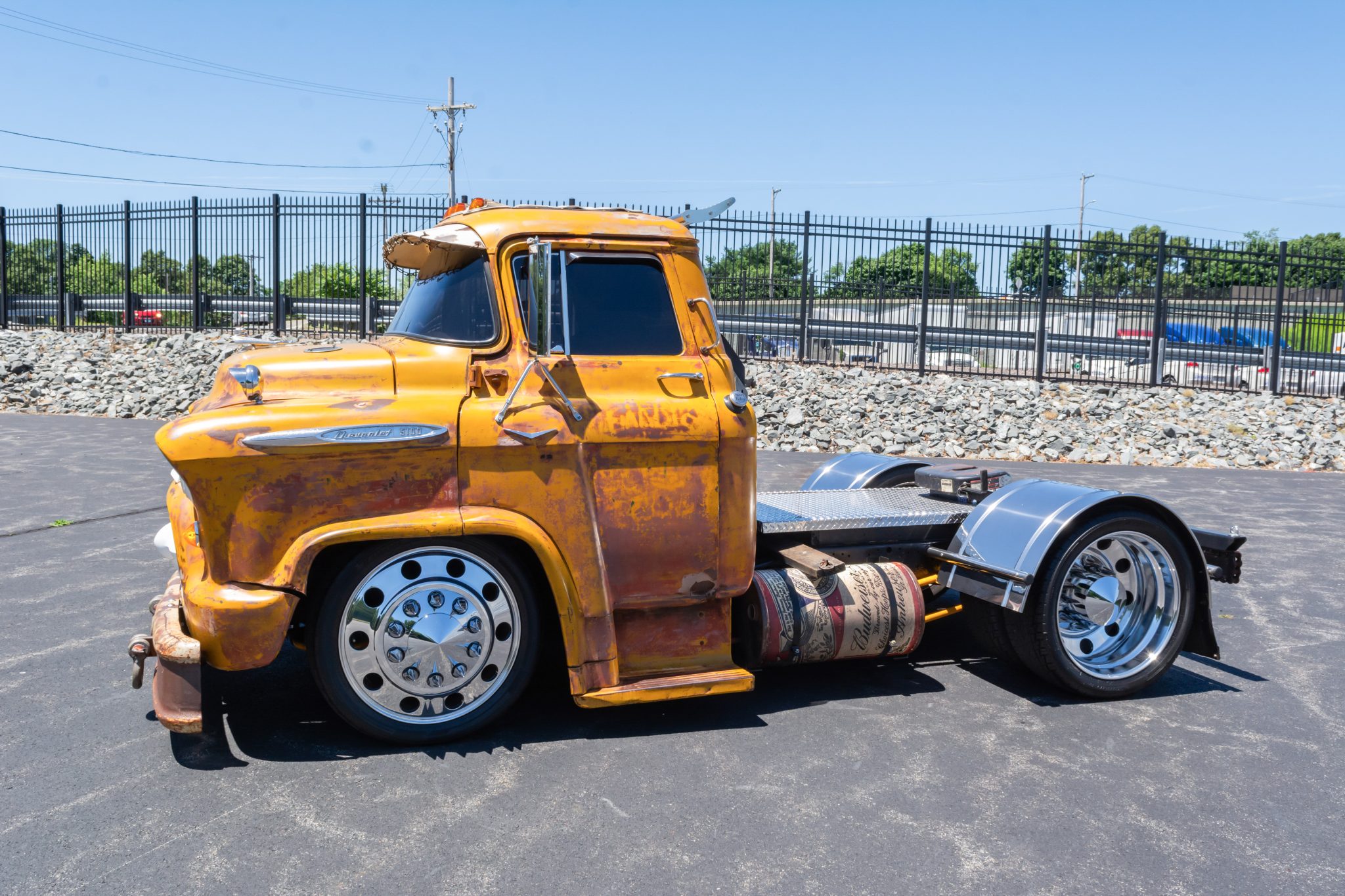 Polished 24″ wheels are wrapped in 295/40 Nankang SP-7 tires. The truck has been fitted with air suspension components and rides on an independent front suspension paired with a four-link rear setup with a Watt’s linkage. It is further equipped with front and rear anti-sway bars along with power-assisted steering and disc brakes.
