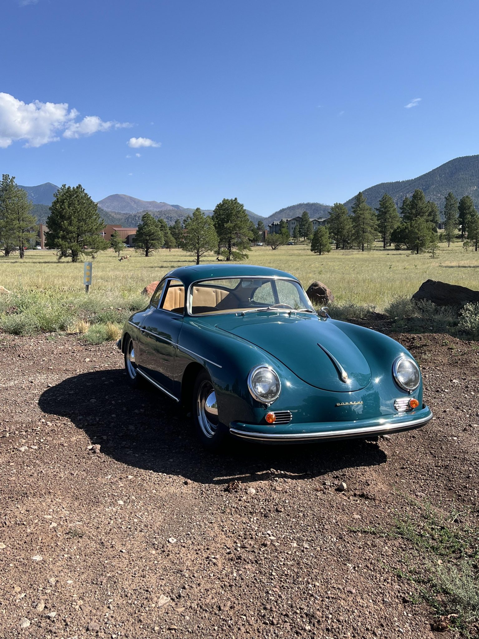 Chrome-finished 15″ steel wheels wear bright baby moon hubcaps and are mounted with 185/70 BFGoodrich Silvertown radial tires. Bilstein shocks have been installed at the rear, and stopping power is provided by four-wheel drum brakes.