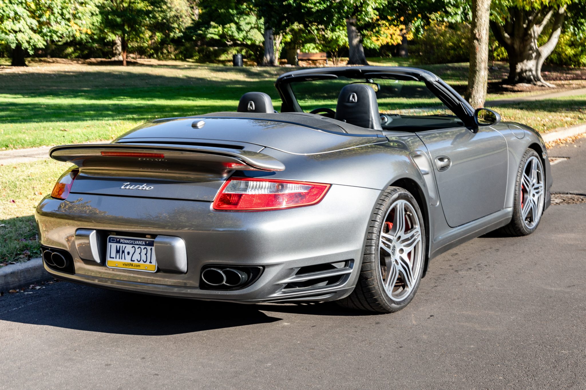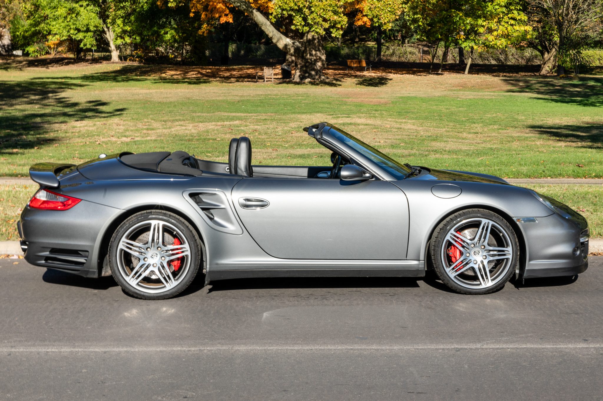 The 19” Turbo wheels are mounted with Pirelli Sottozero W240 tires. Braking is handled by Porsche-branded six- and four-piston front and rear calipers over 13.8″ rotors. The car is equipped with Porsche Active Suspension Management (PASM) as well as Porsche Stability Management (PSM) with an automatic brake differential (ABD). A spare set of 19” Turbo II wheels is included in the sale, and they are shod with Michelin Pilot Super Sport tires.