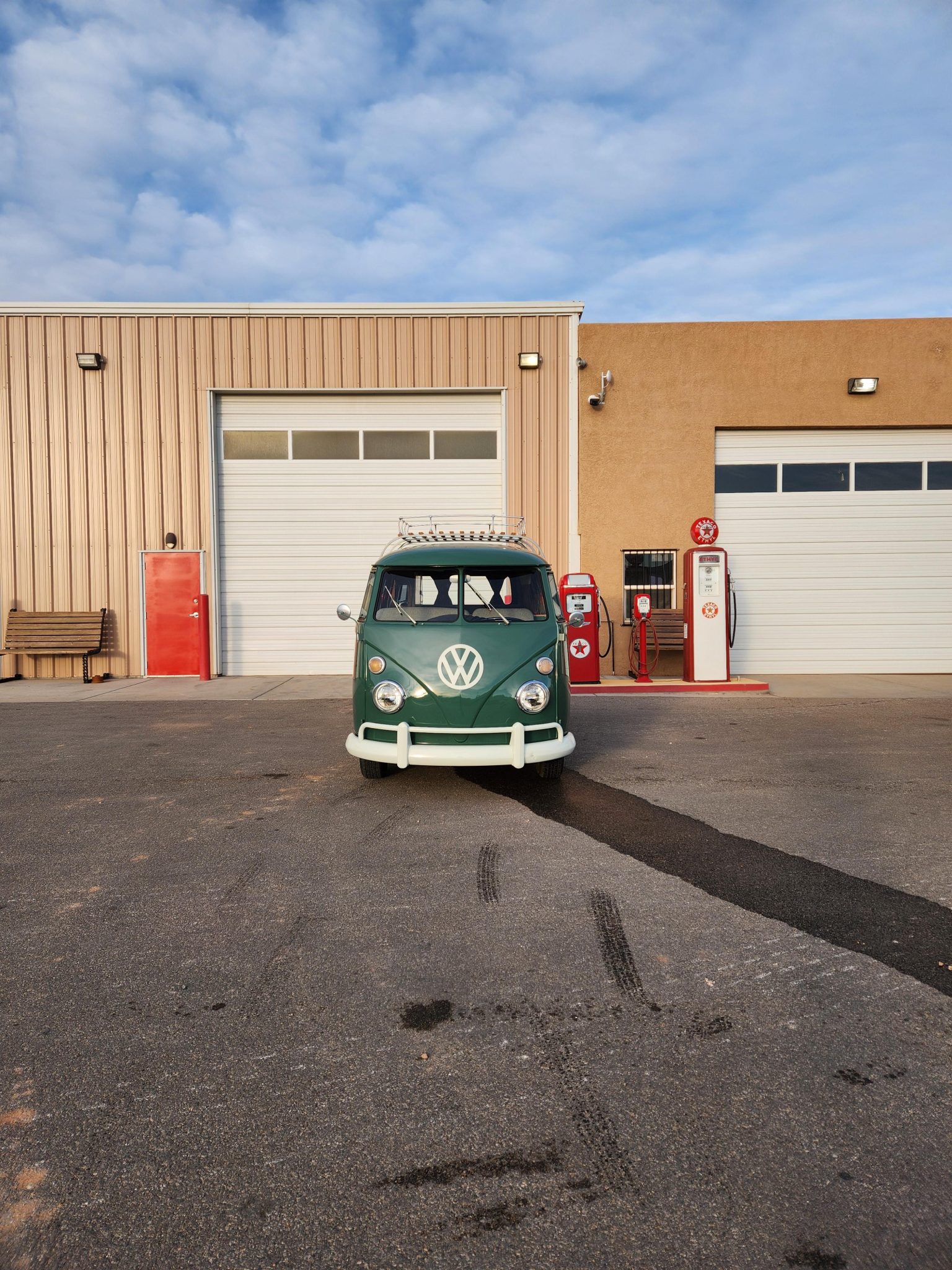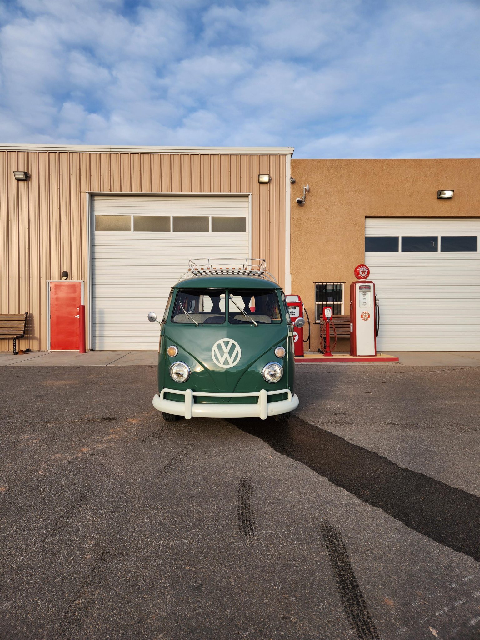 Steel 14″ wheels wear painted VW-stamped hubcaps and are mounted with 185/75 Yokohama Aegis LS4 thin-whitewall bias-ply tires. Stopping power is provided by four-wheel drum brakes.